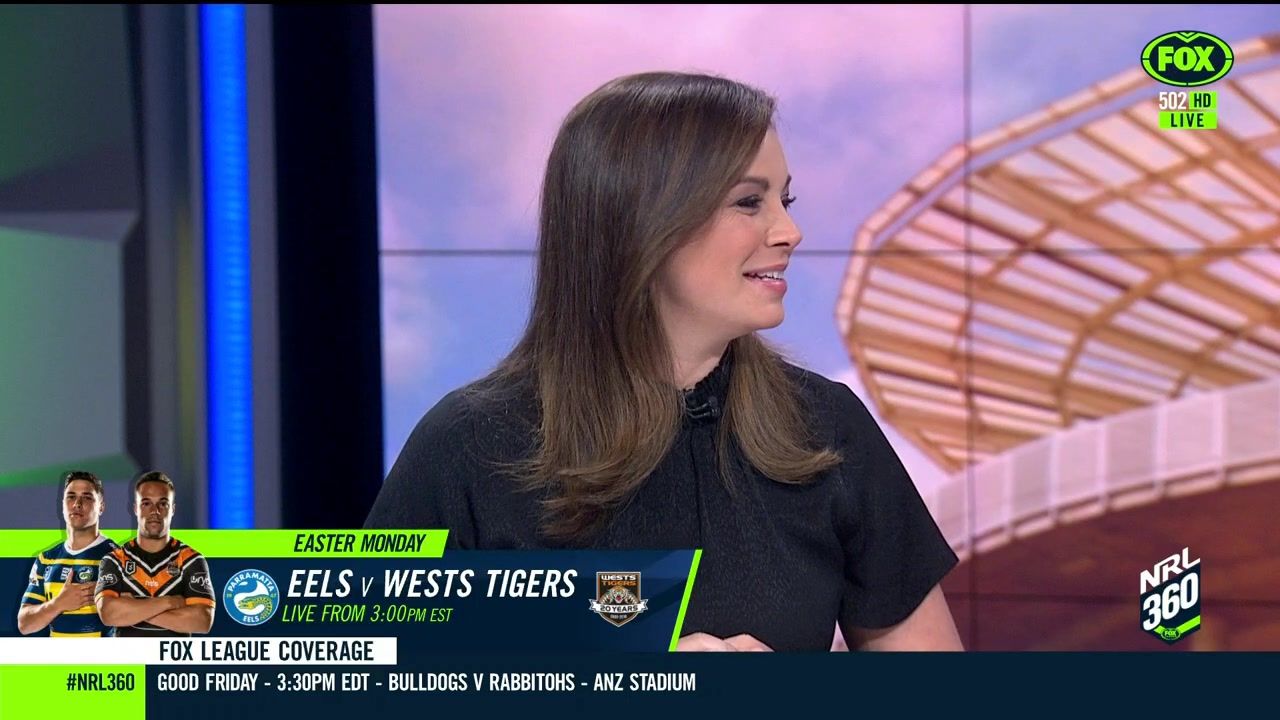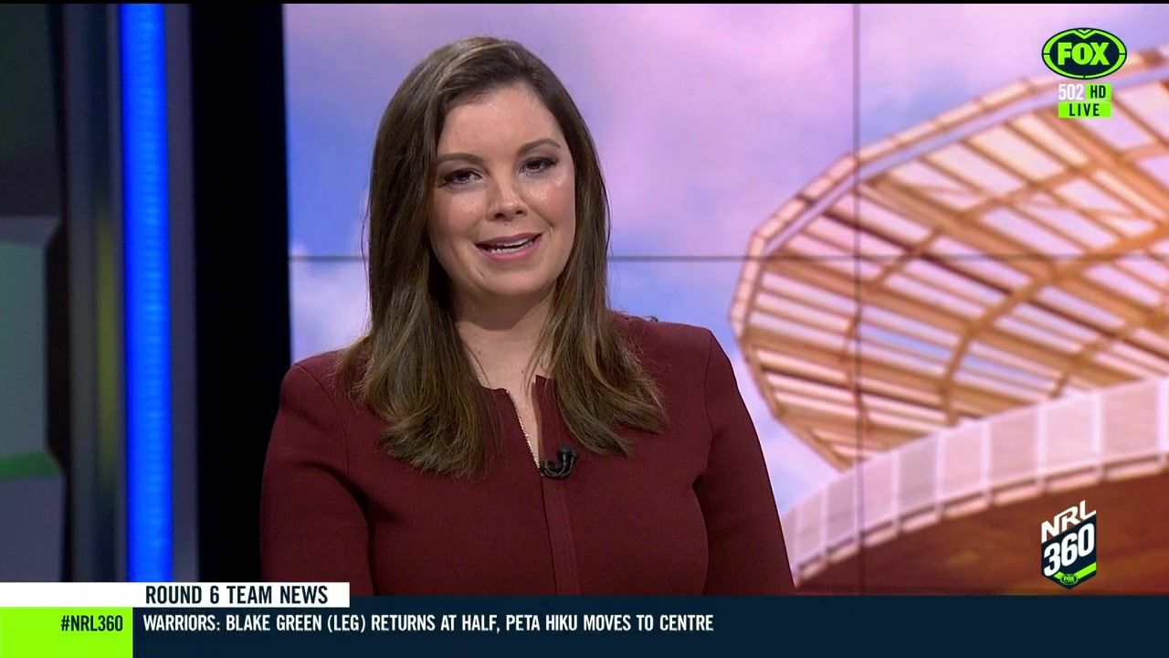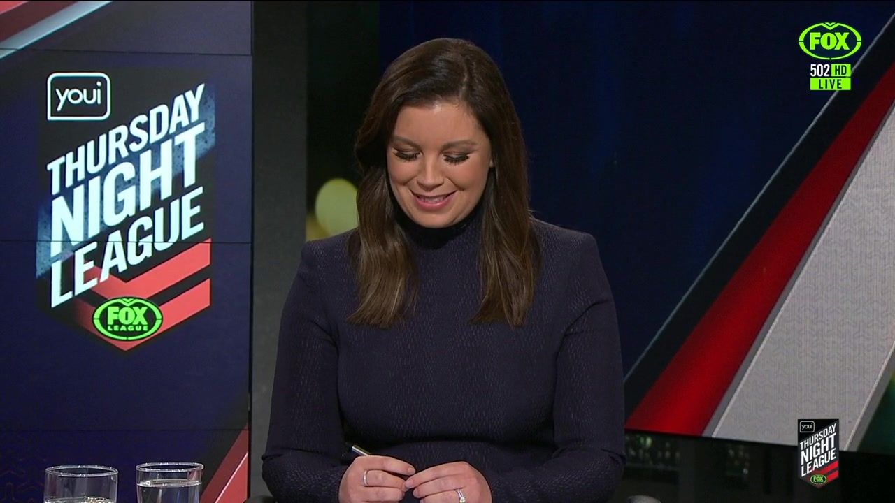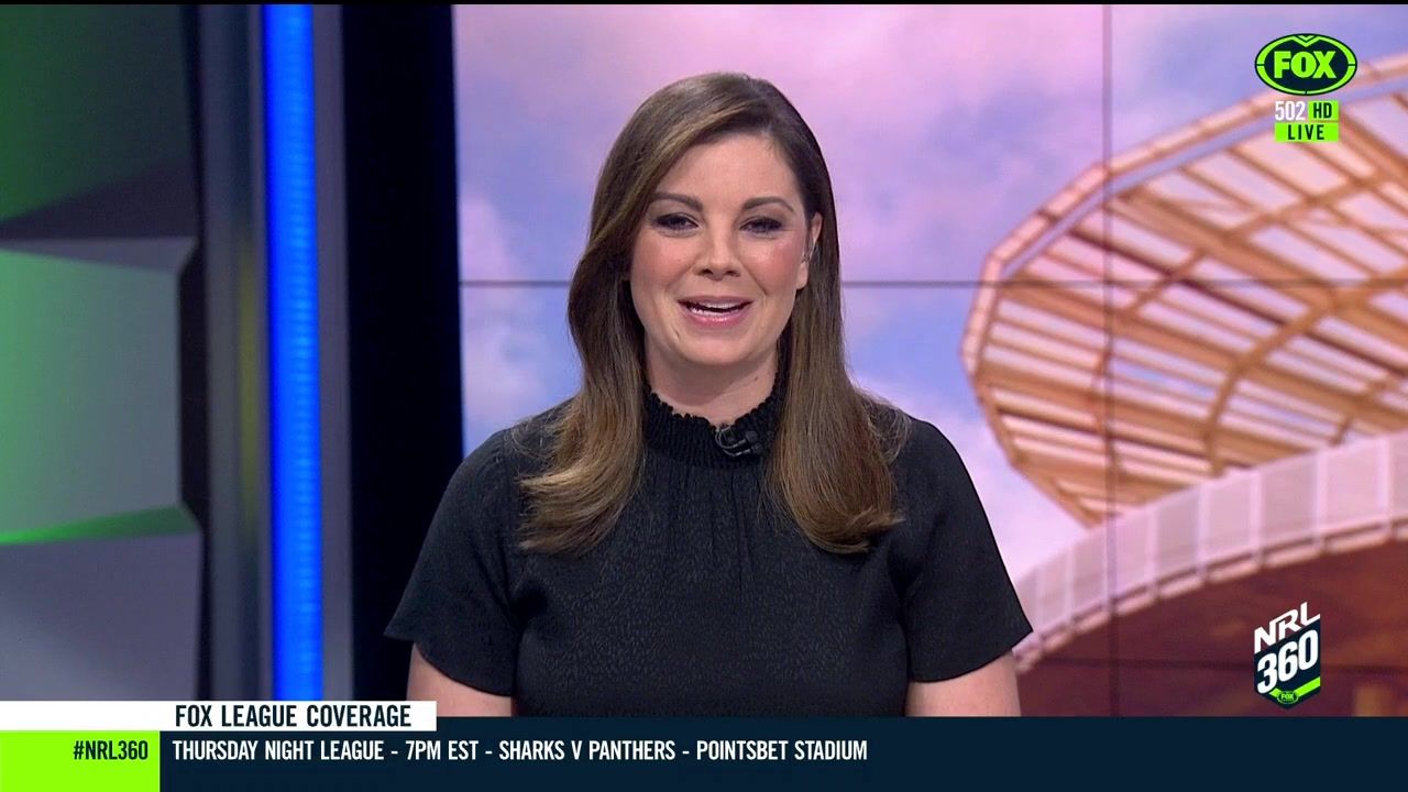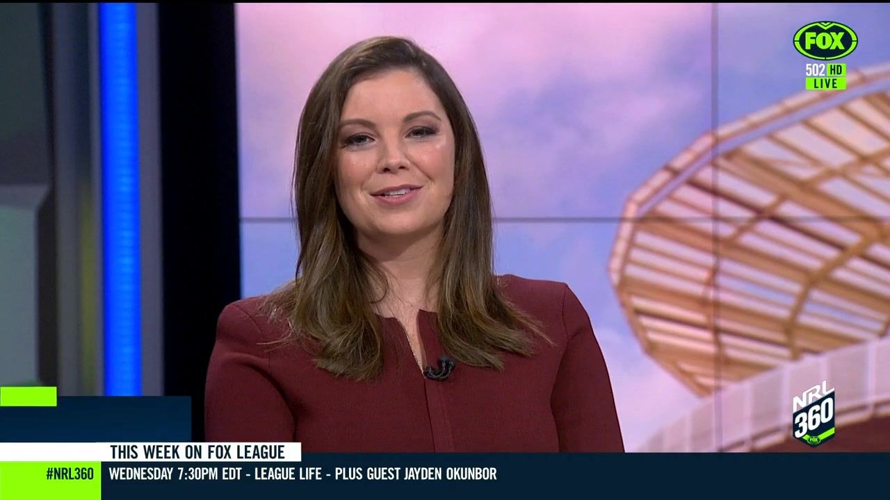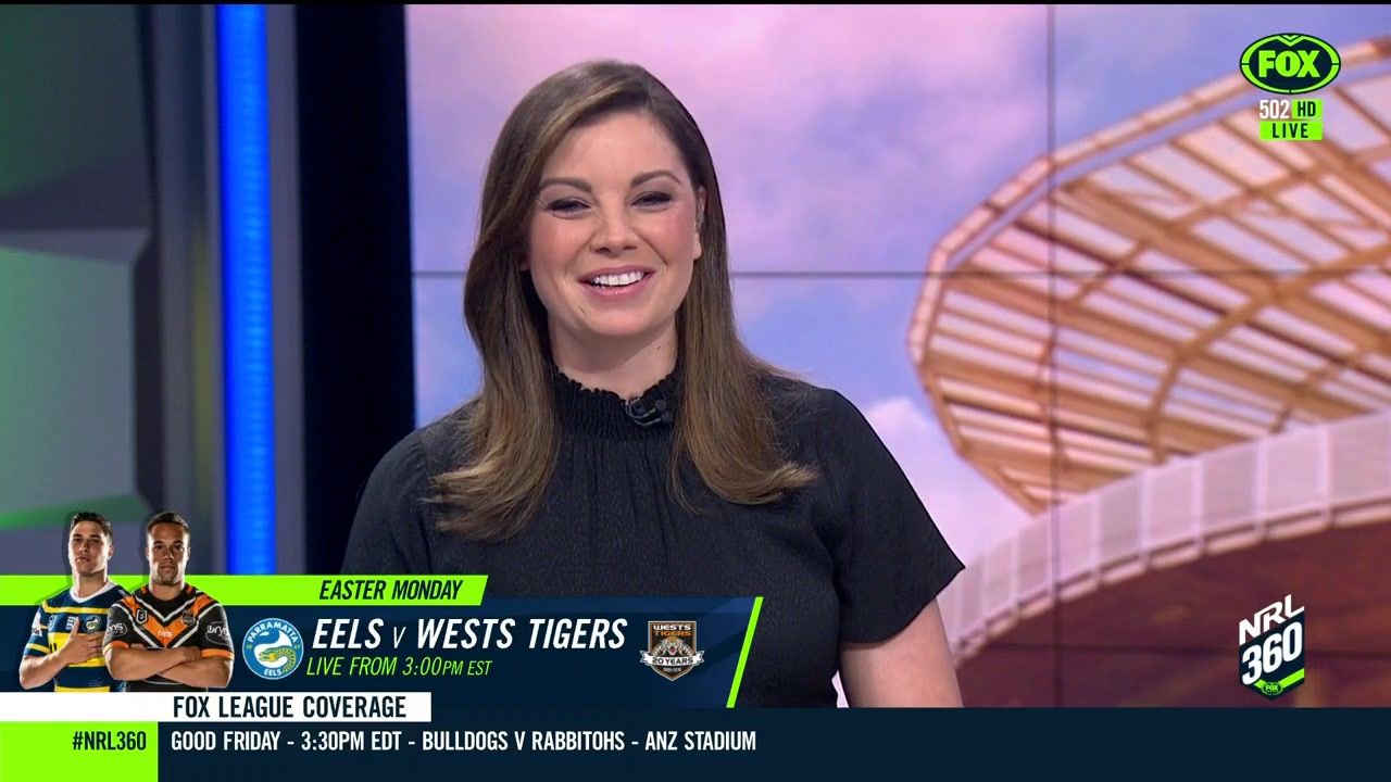 NRL 360 17.04.19 Manning the desk while Iken is on holiday. Atleast she's not wearing black for once.