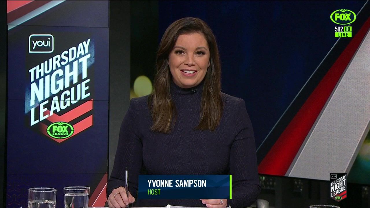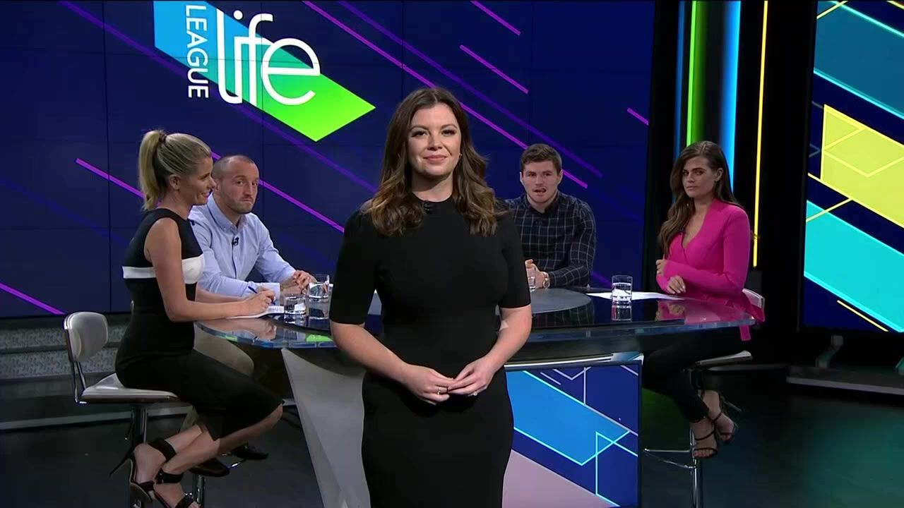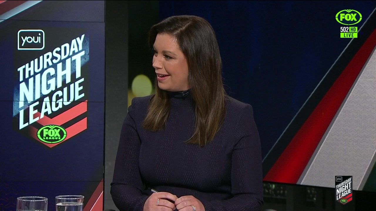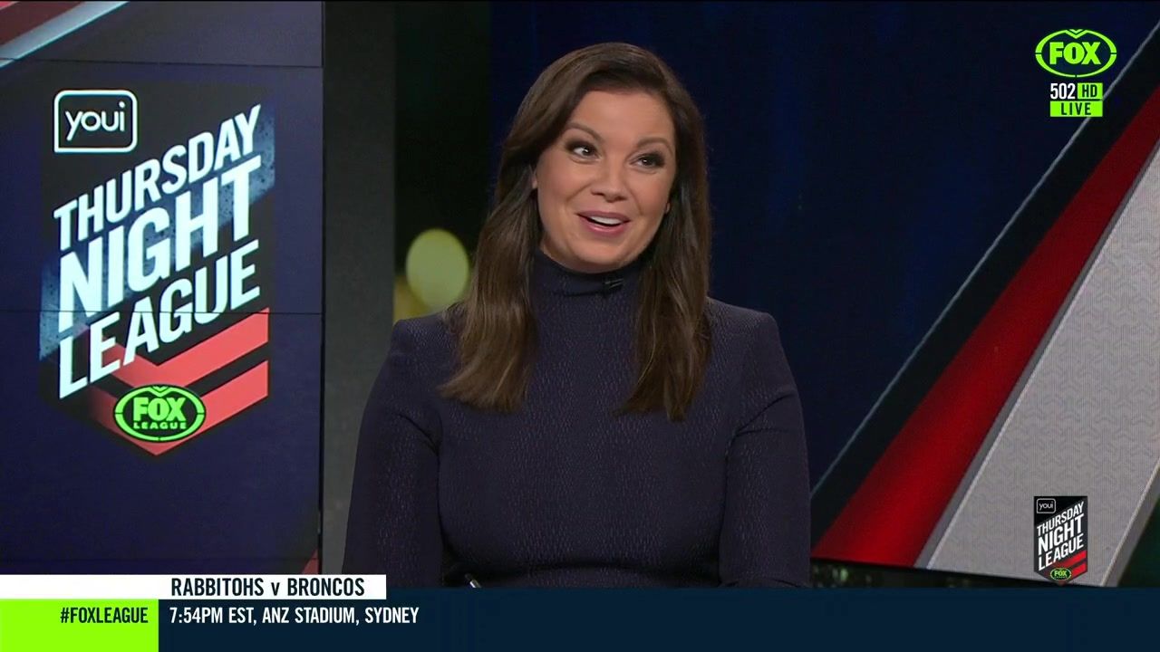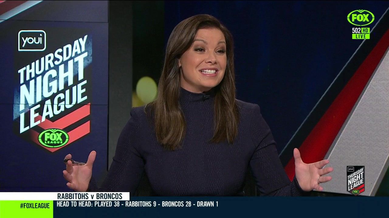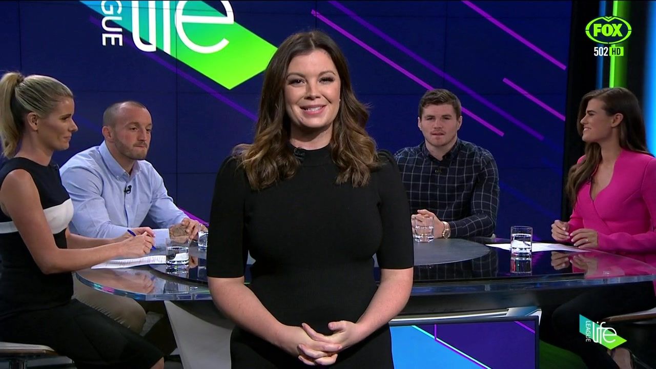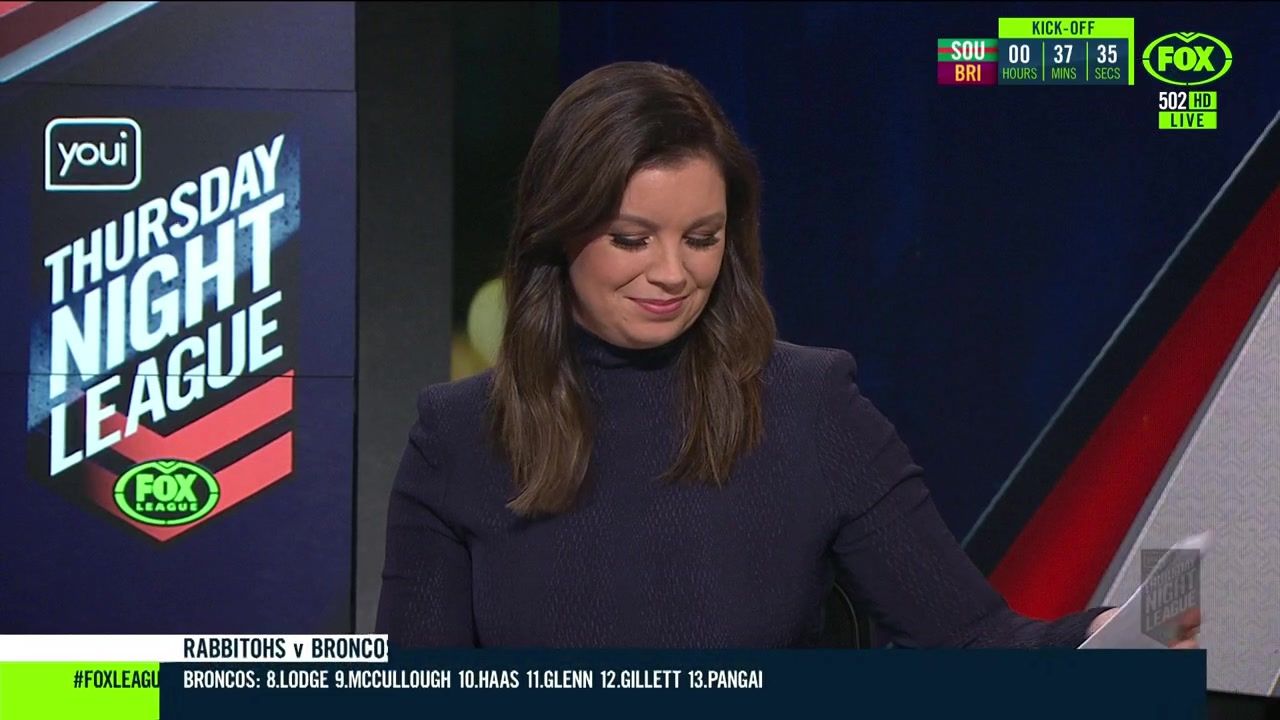 NRL 360 17.04.19 Manning the desk while Iken is on holiday. Atleast she's not wearing black for once.