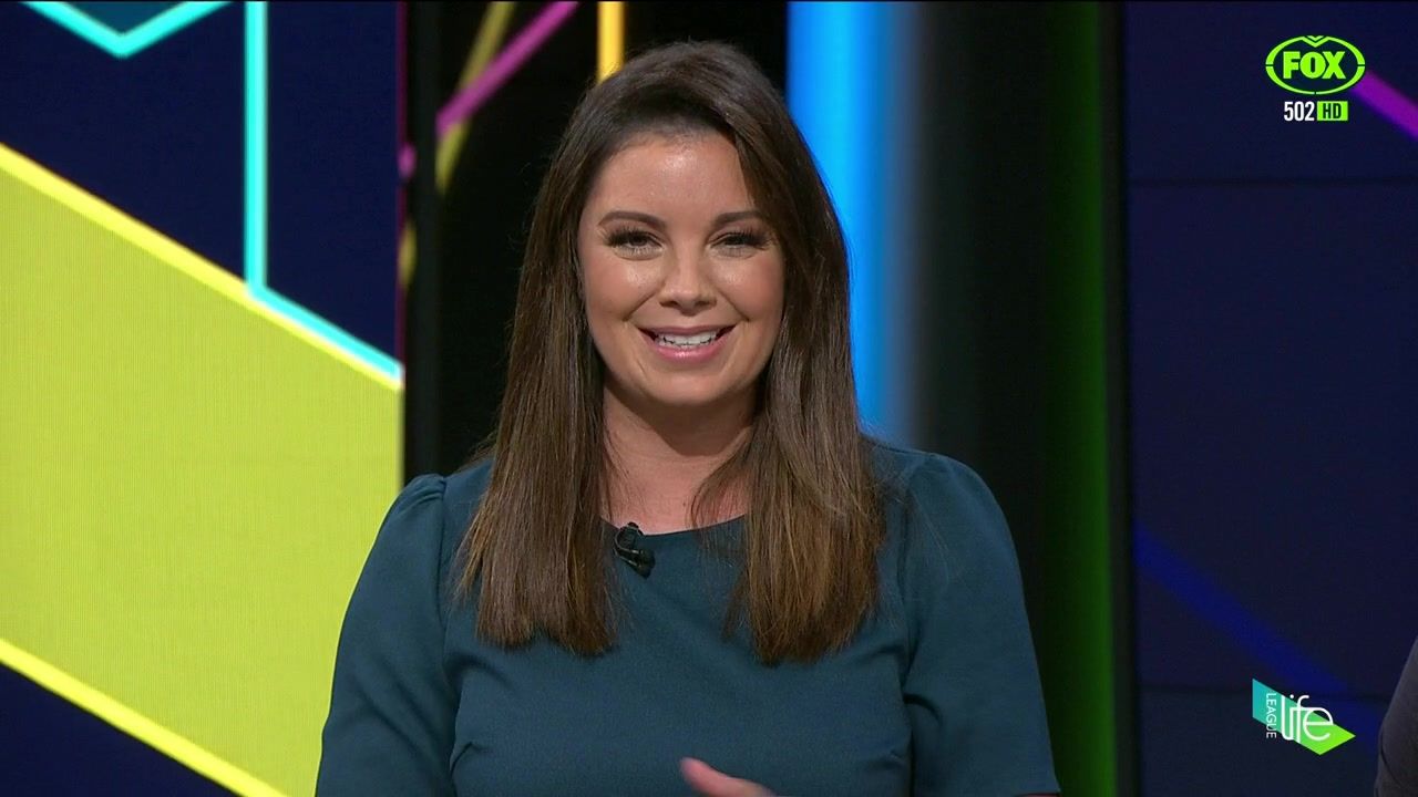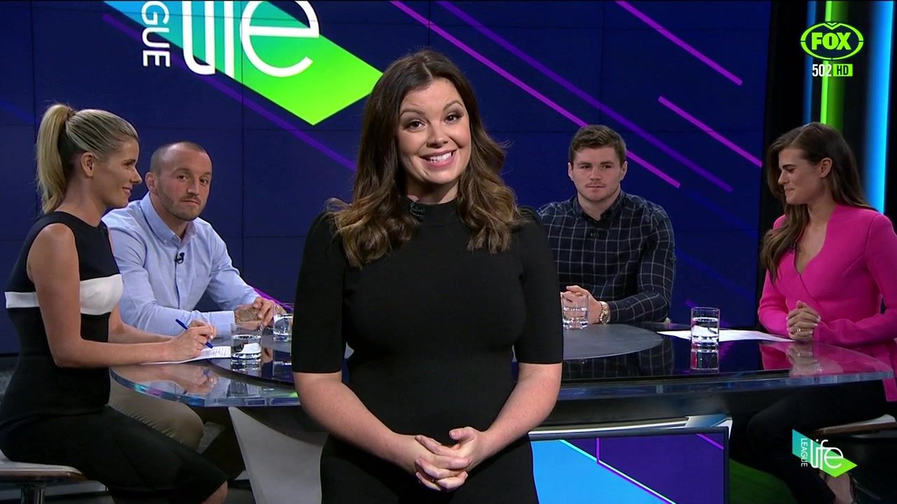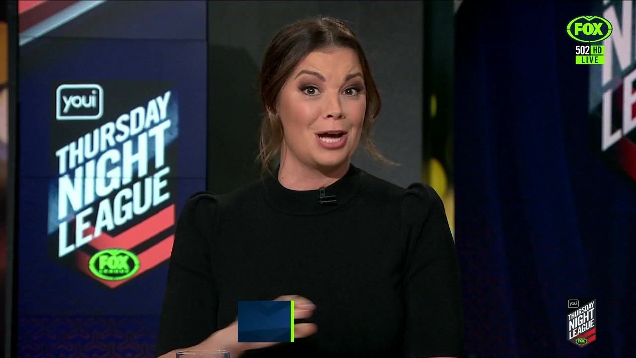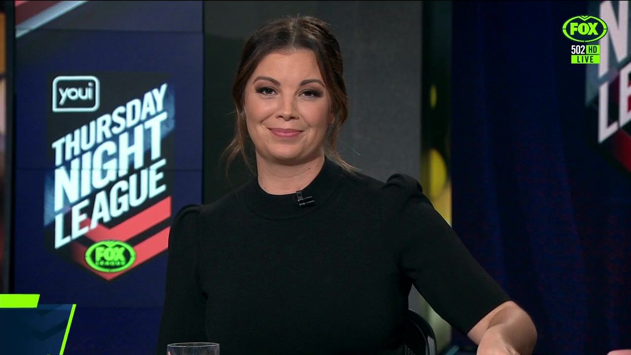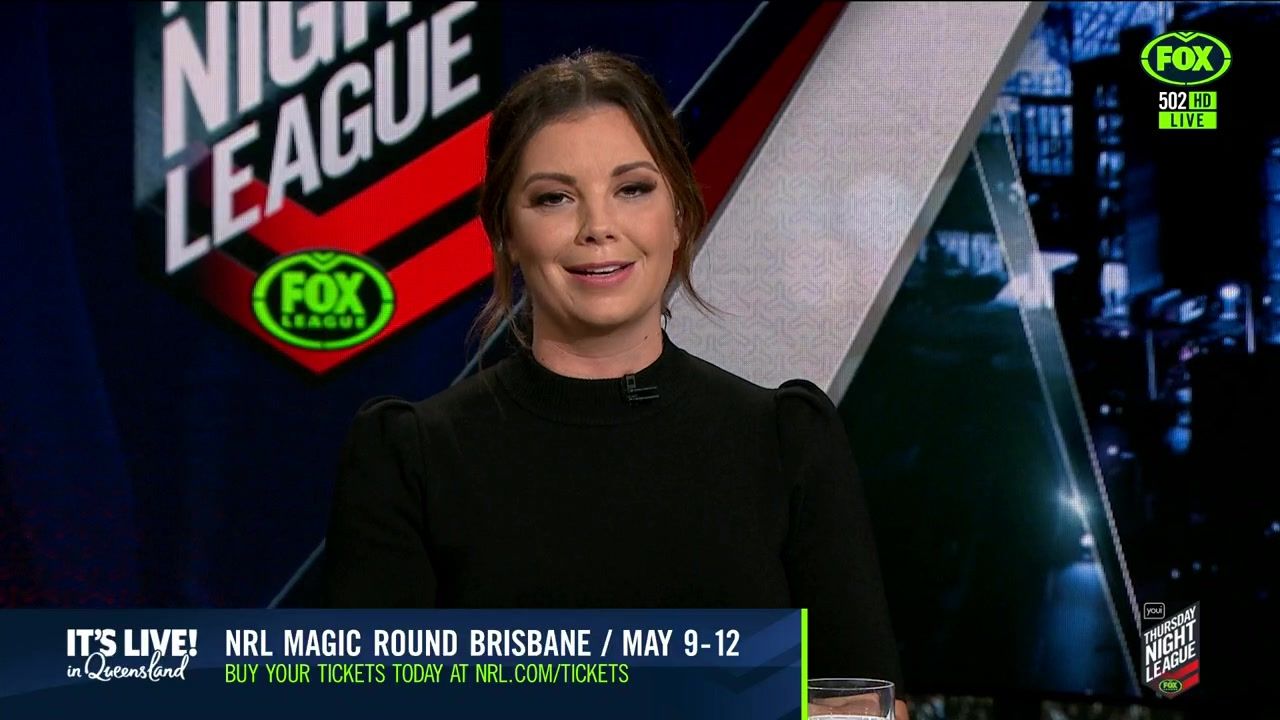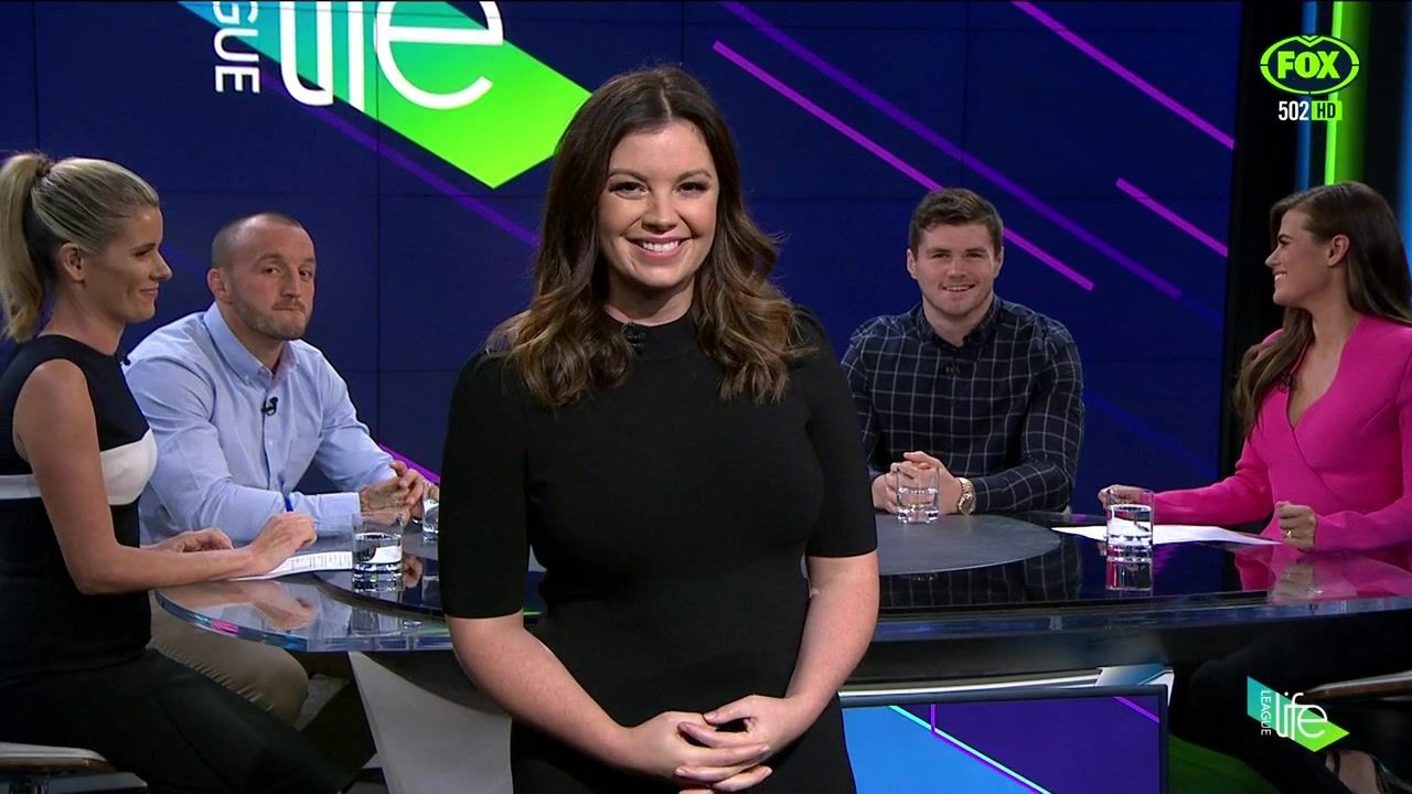 NRL 360 17.04.19 Manning the desk while Iken is on holiday. Atleast she's not wearing black for once.