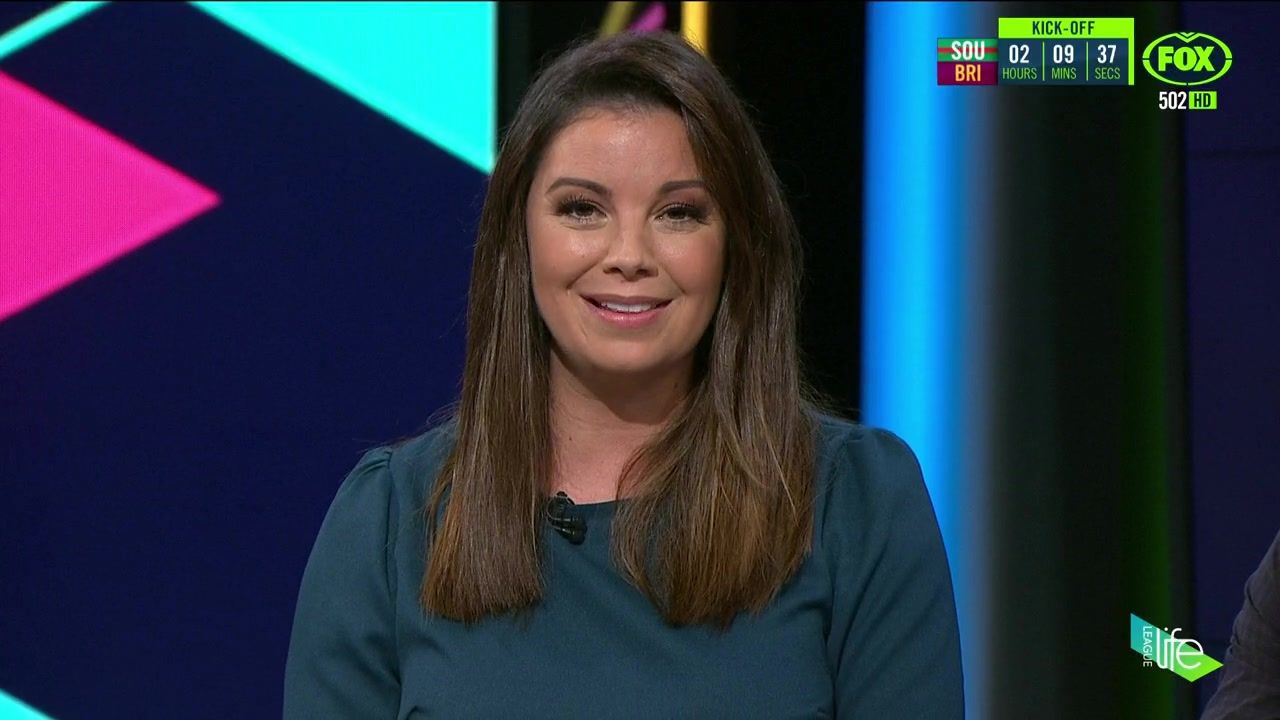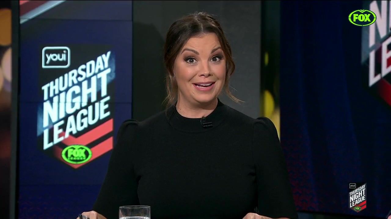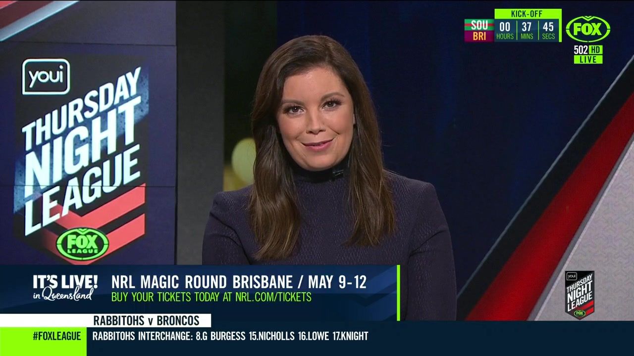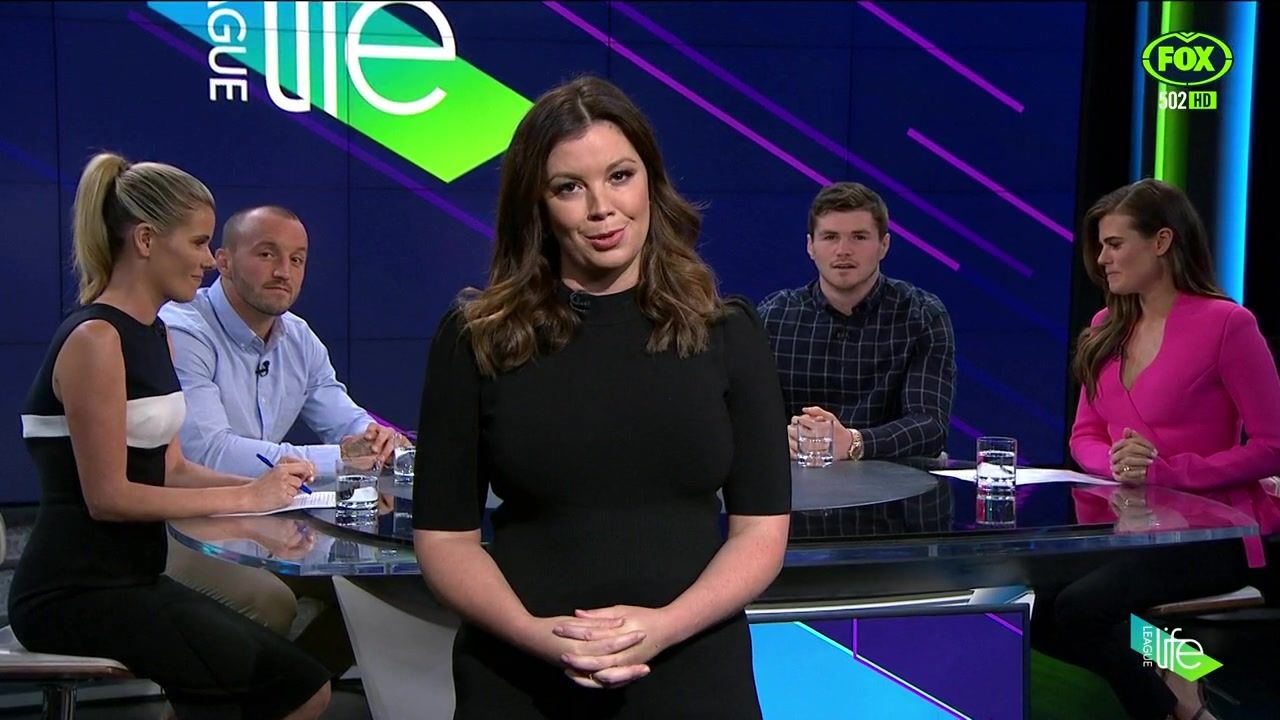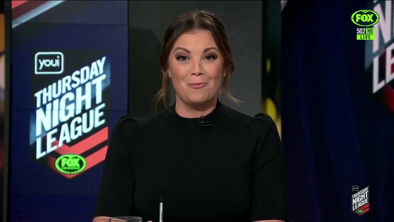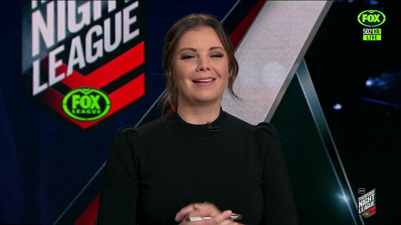 NRL 360 17.04.19 Manning the desk while Iken is on holiday. Atleast she's not wearing black for once.