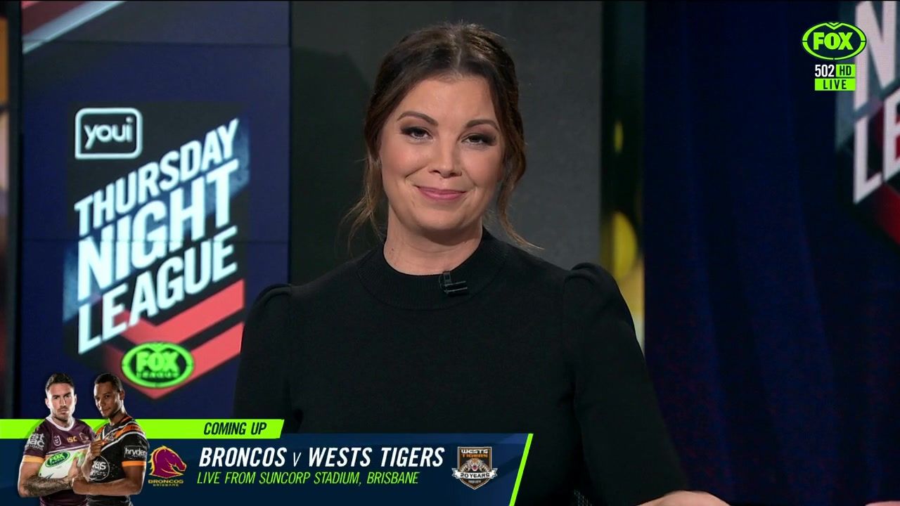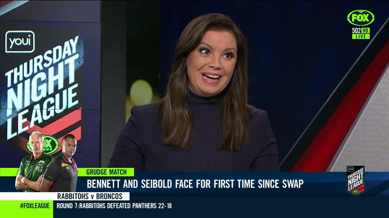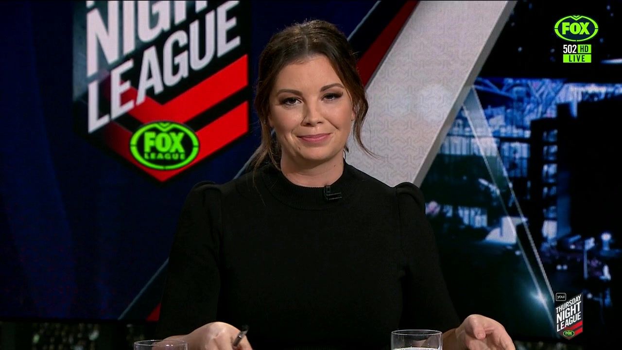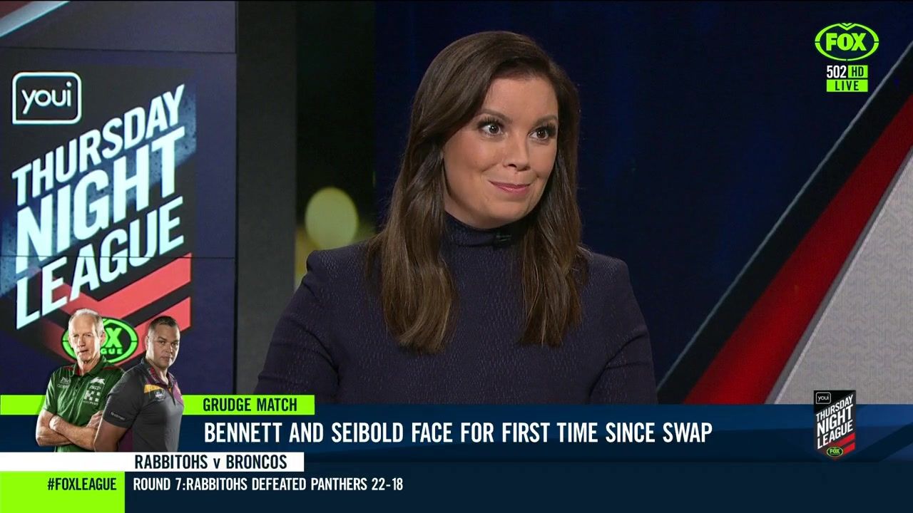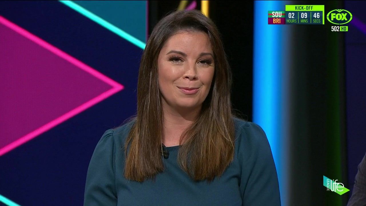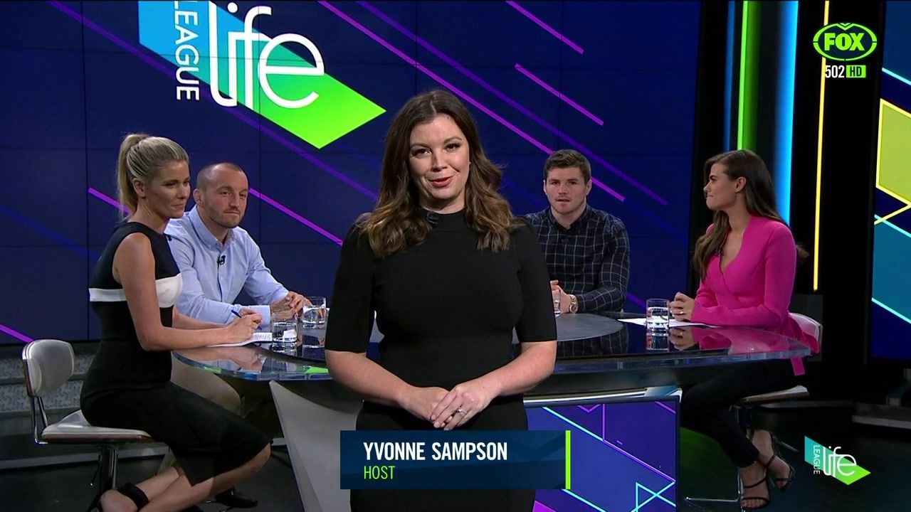 NRL 360 17.04.19 Manning the desk while Iken is on holiday. Atleast she's not wearing black for once.