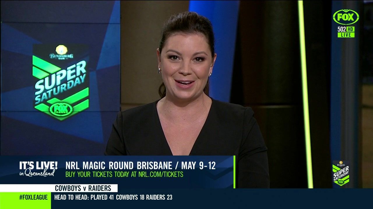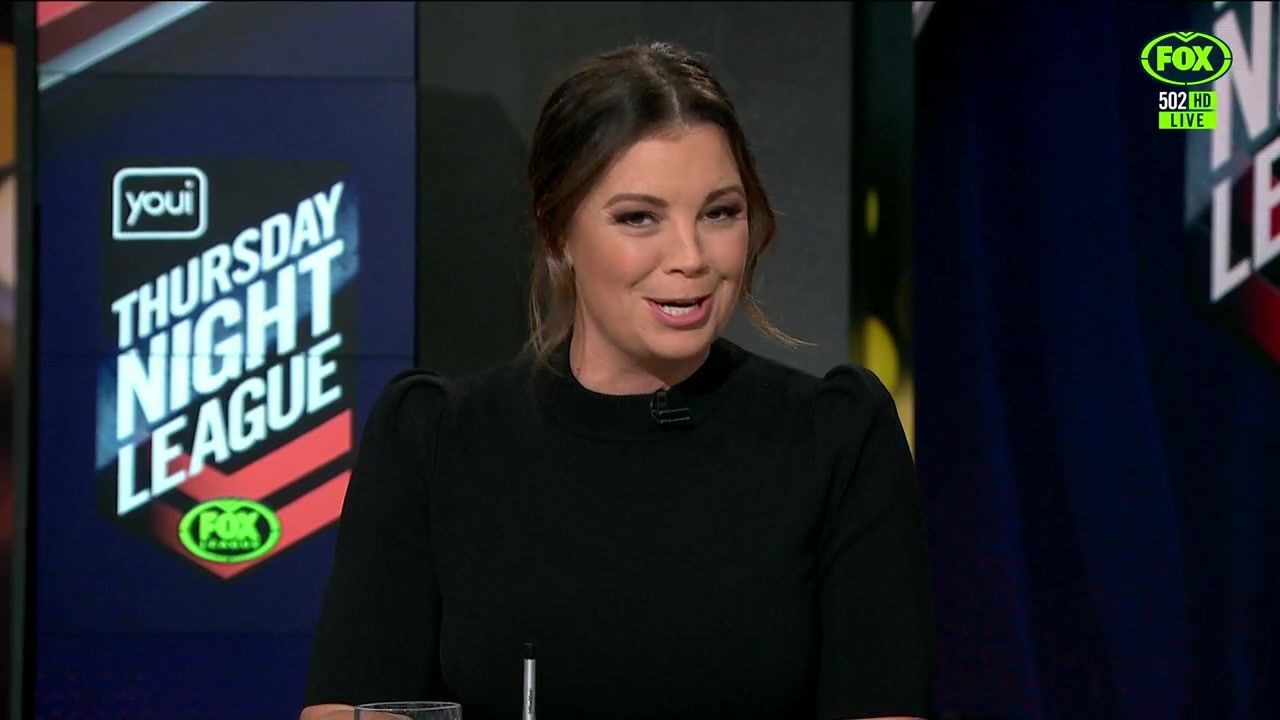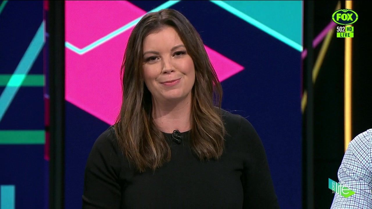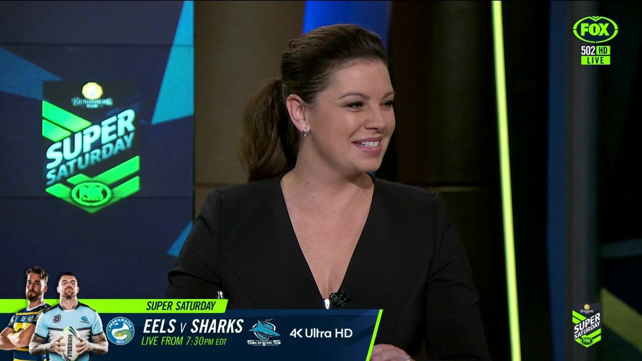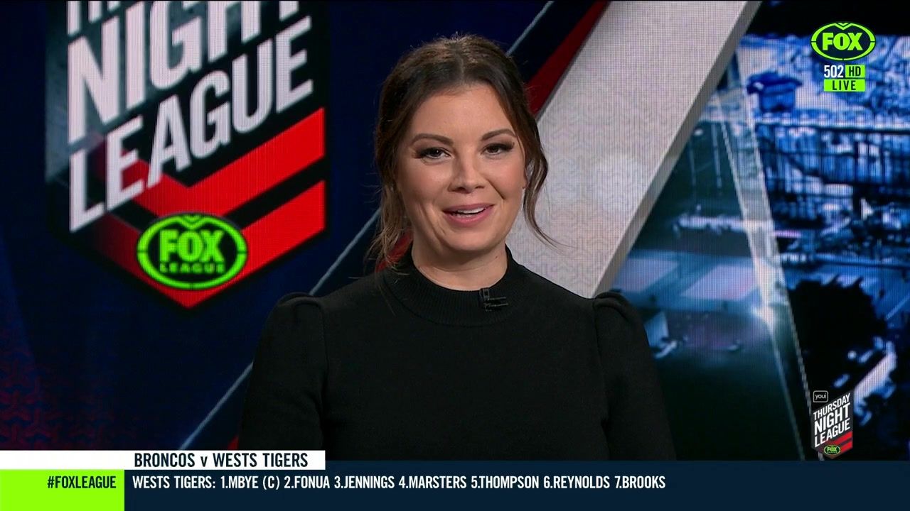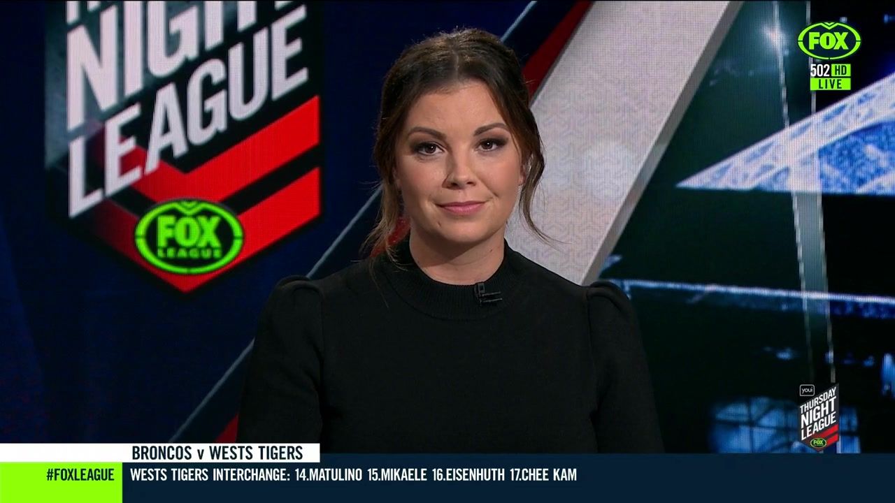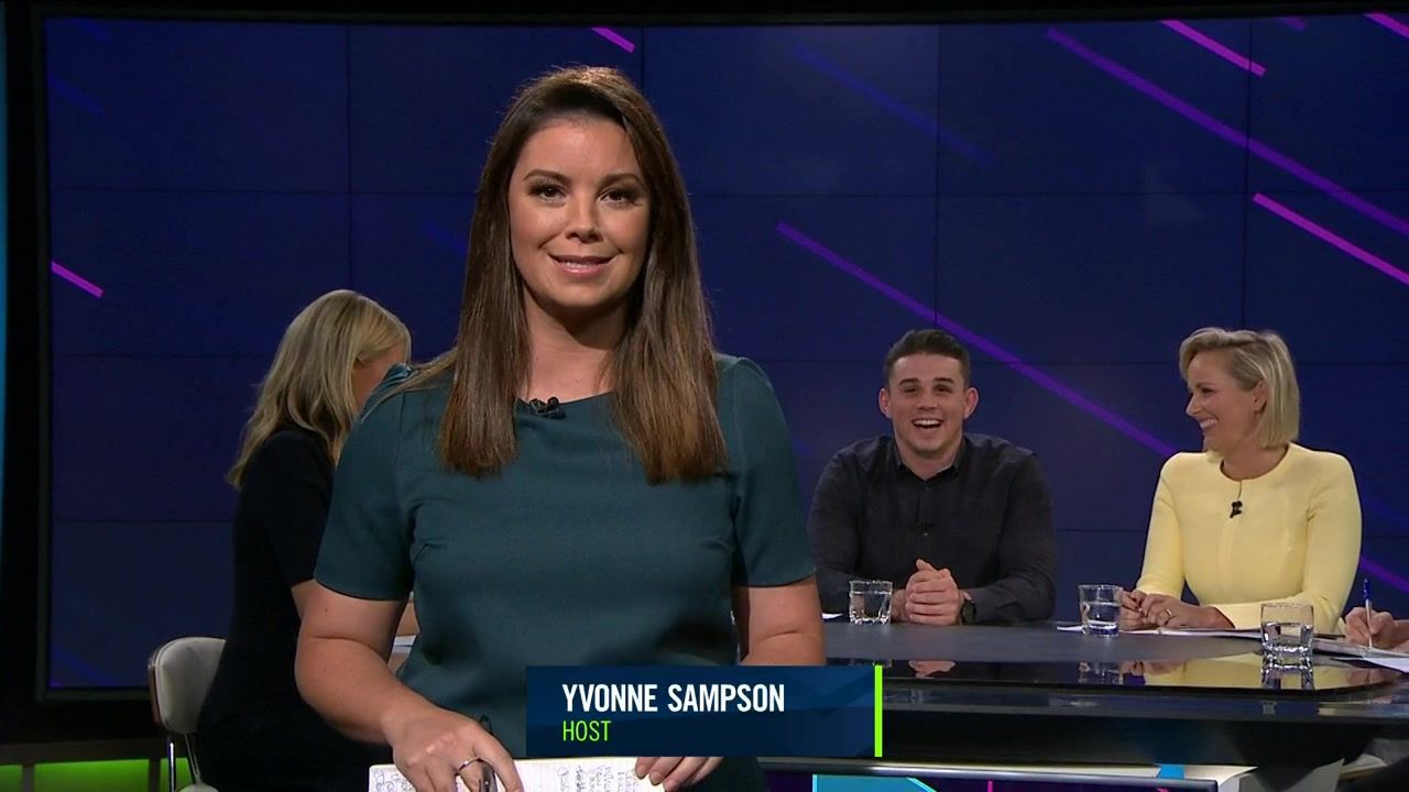 NRL 360 17.04.19 Manning the desk while Iken is on holiday. Atleast she's not wearing black for once.