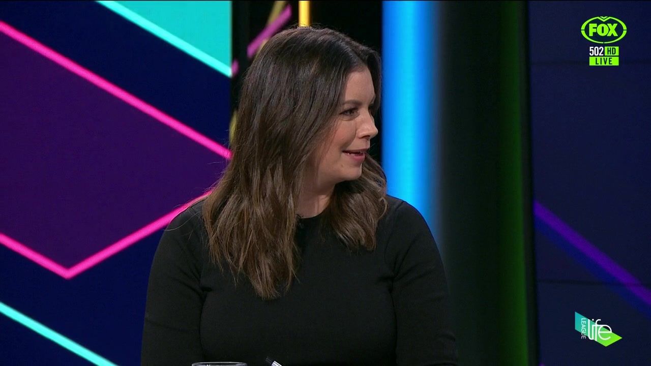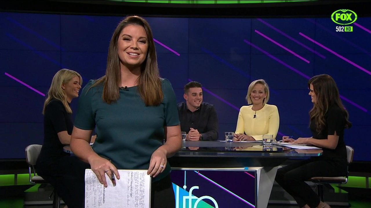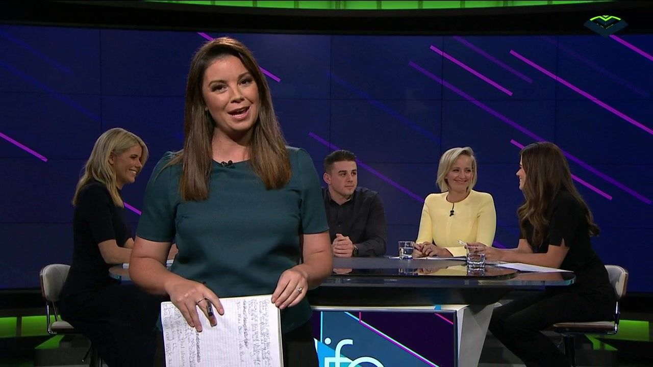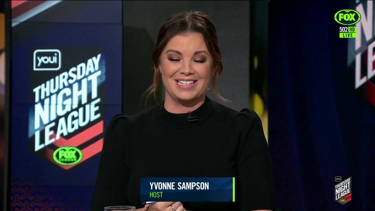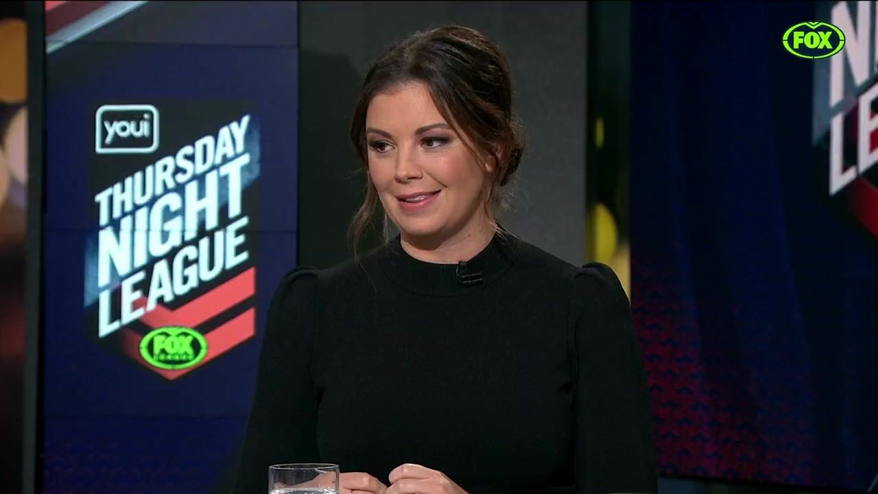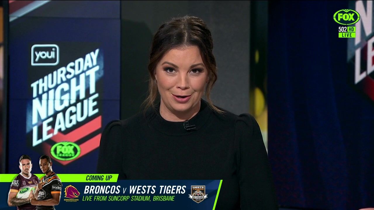NRL 360 17.04.19 Manning the desk while Iken is on holiday. Atleast she's not wearing black for once.