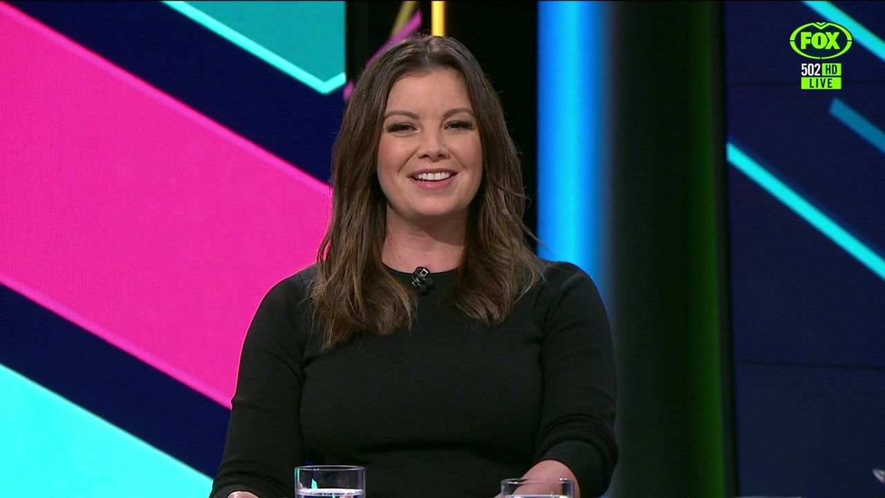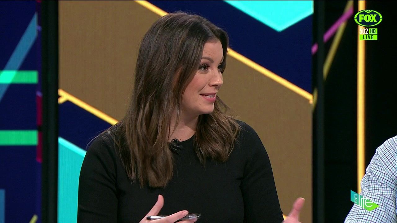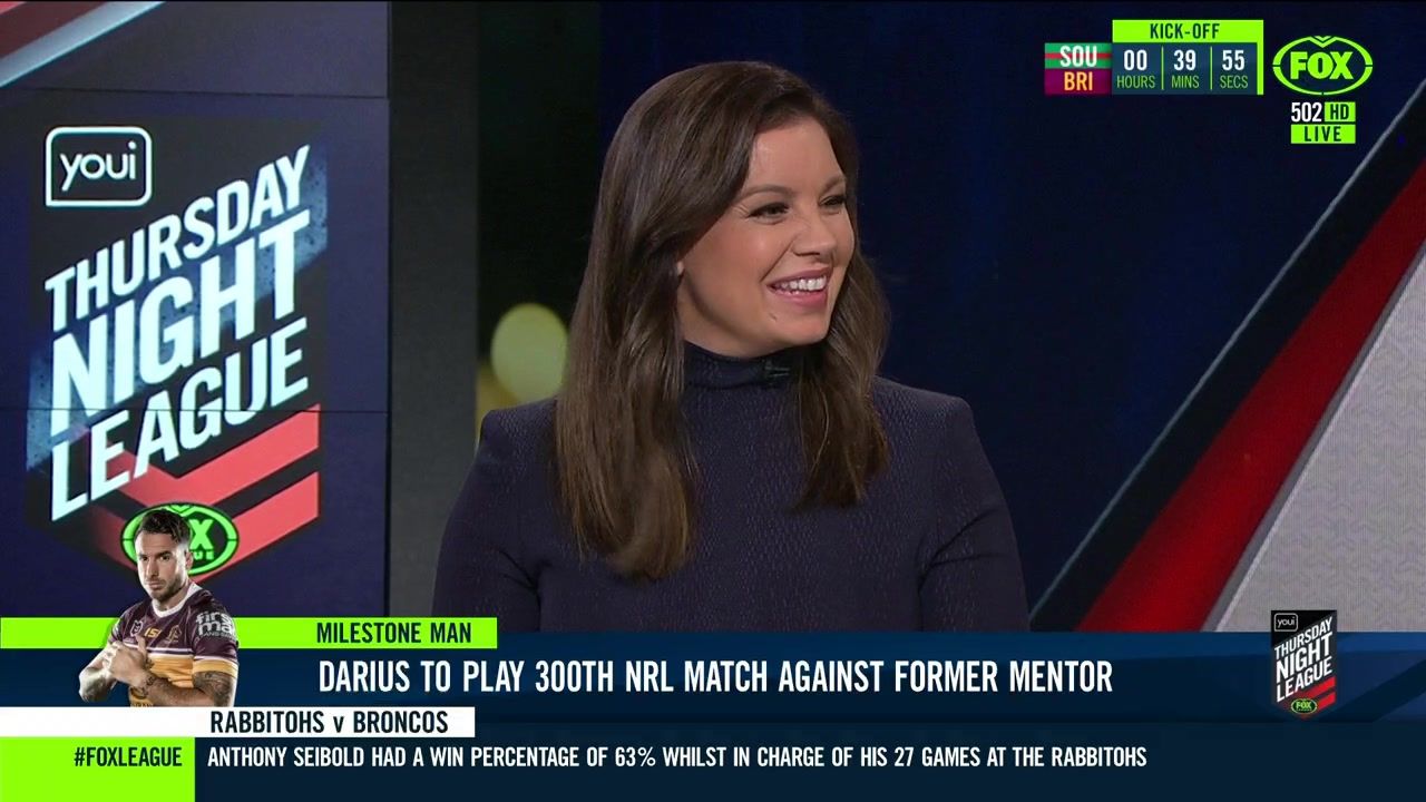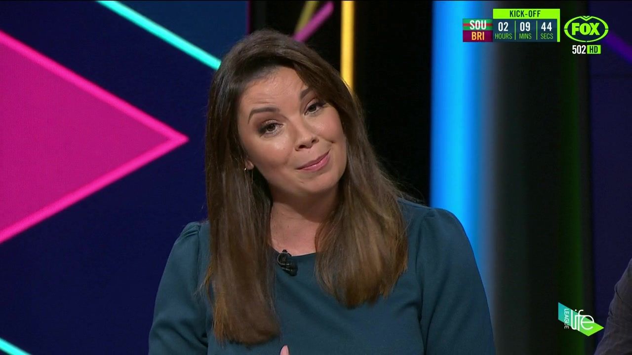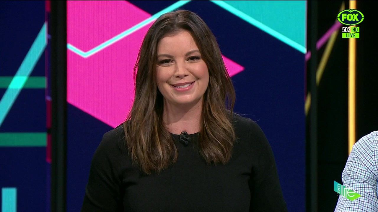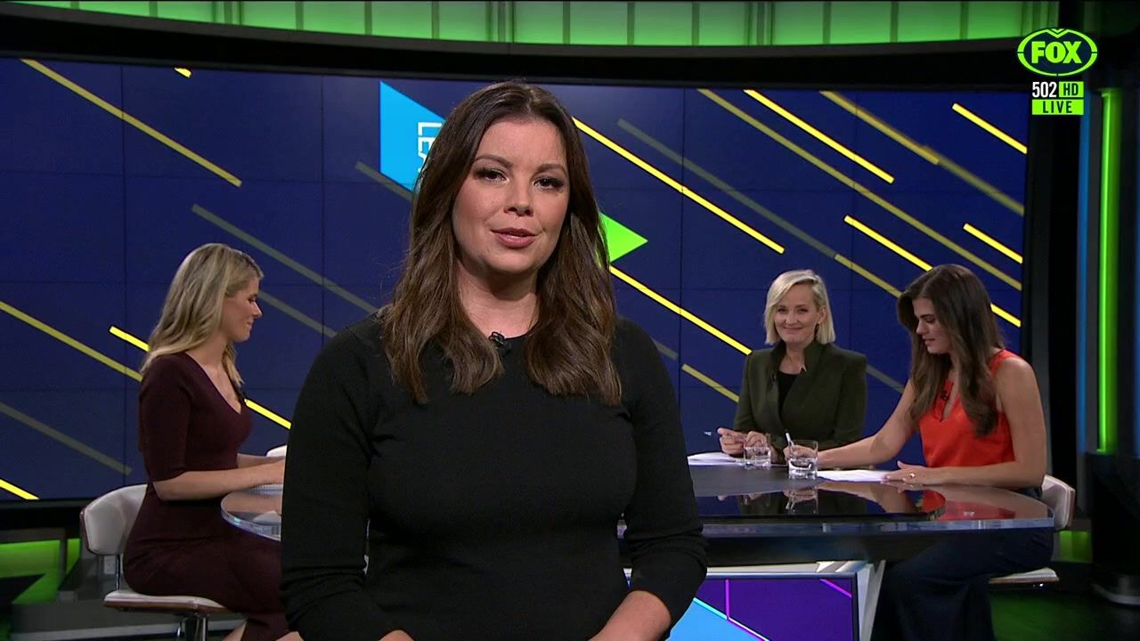 NRL 360 17.04.19 Manning the desk while Iken is on holiday. Atleast she's not wearing black for once.