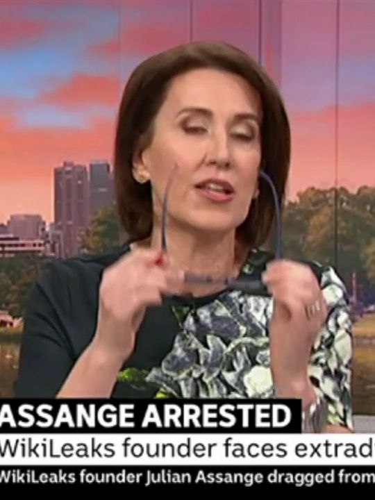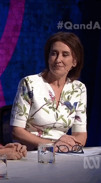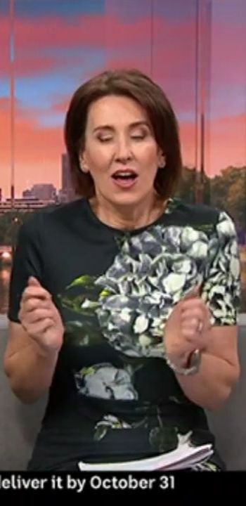 Great wardrobe choice this morning, makes her chest look big and heavy  Unfortunately the resolution doesn't show that she's got the high beams on too - clear as day on the tv/iview app but can't even tell in the caps