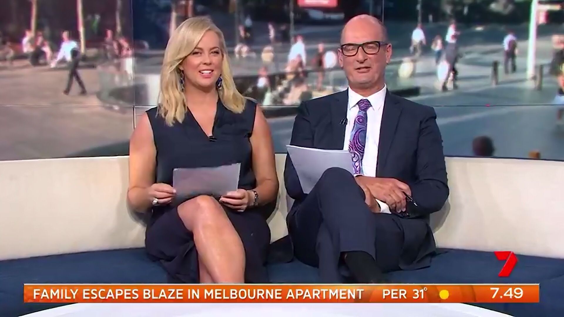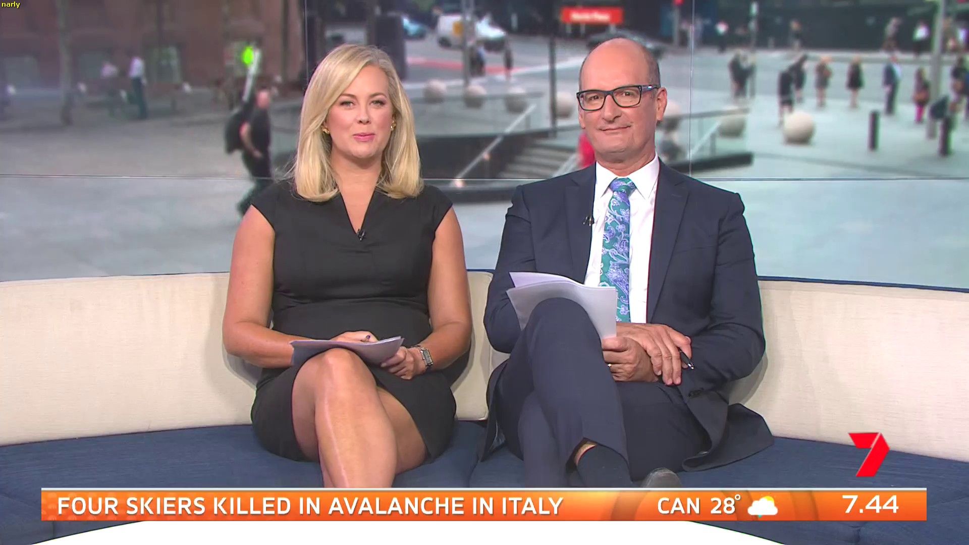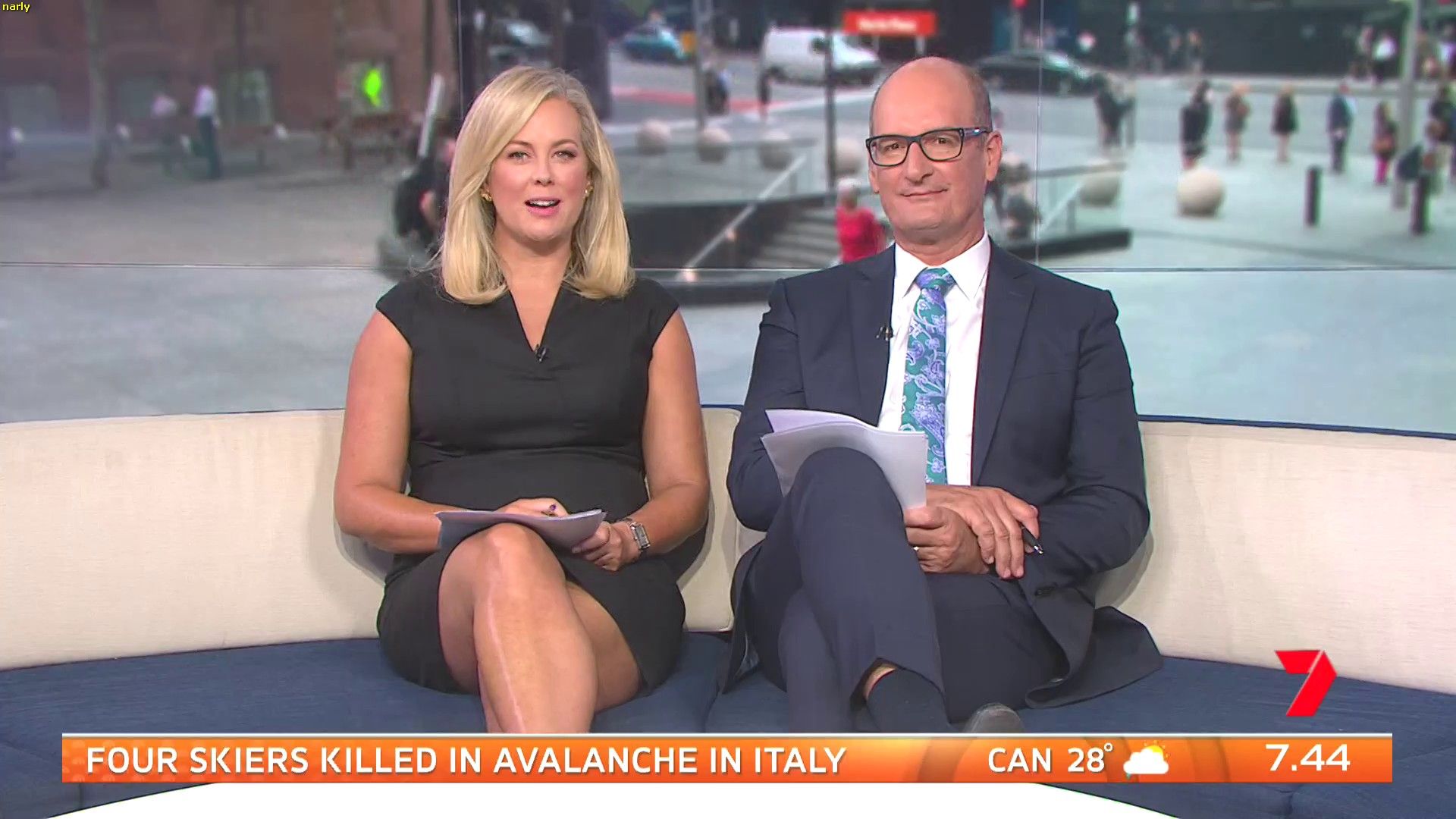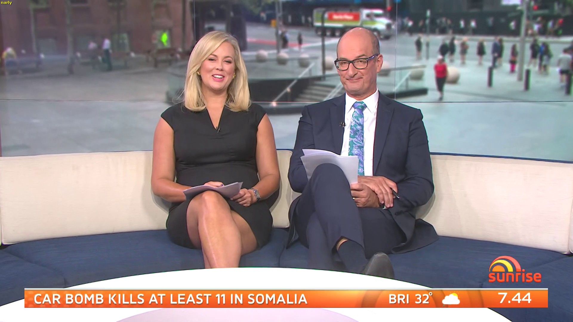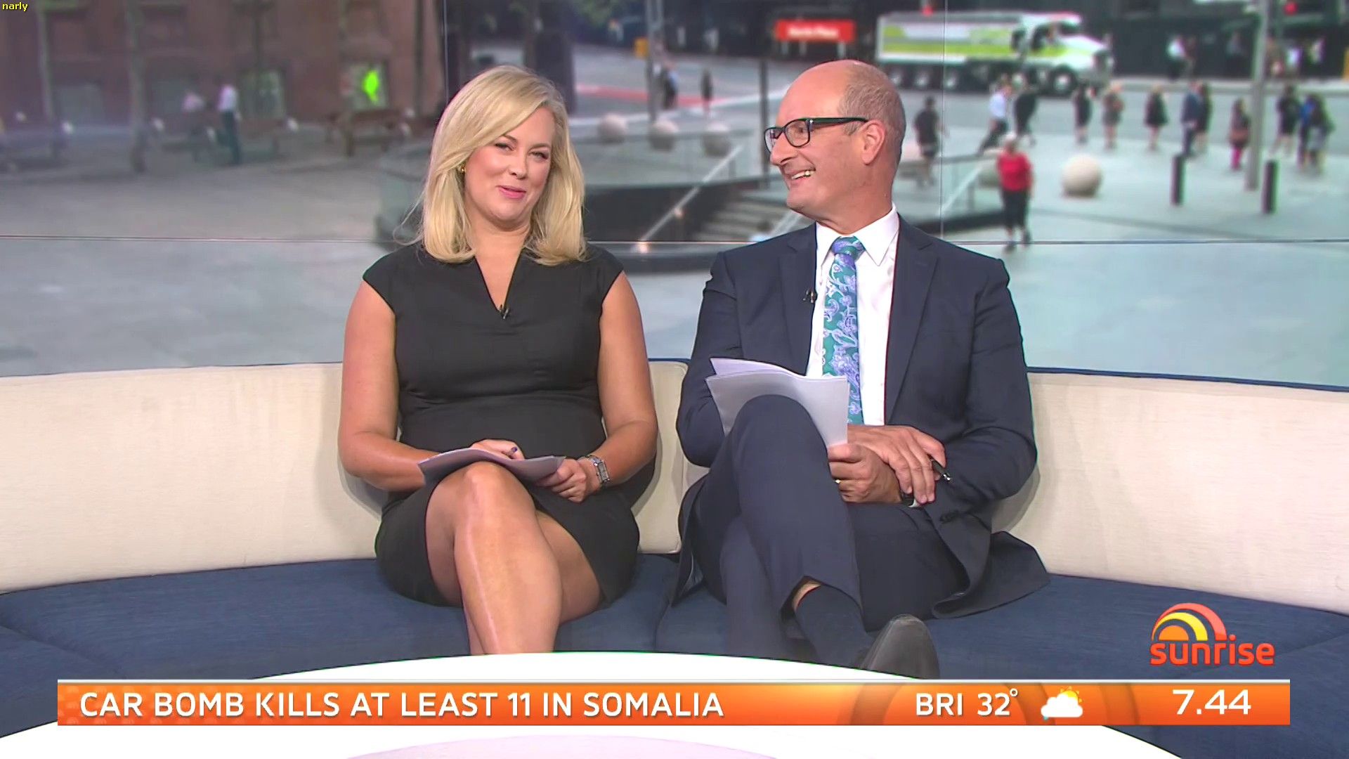Sam looked sexy this morning in a little black dress! Had thighs on show and looked good.