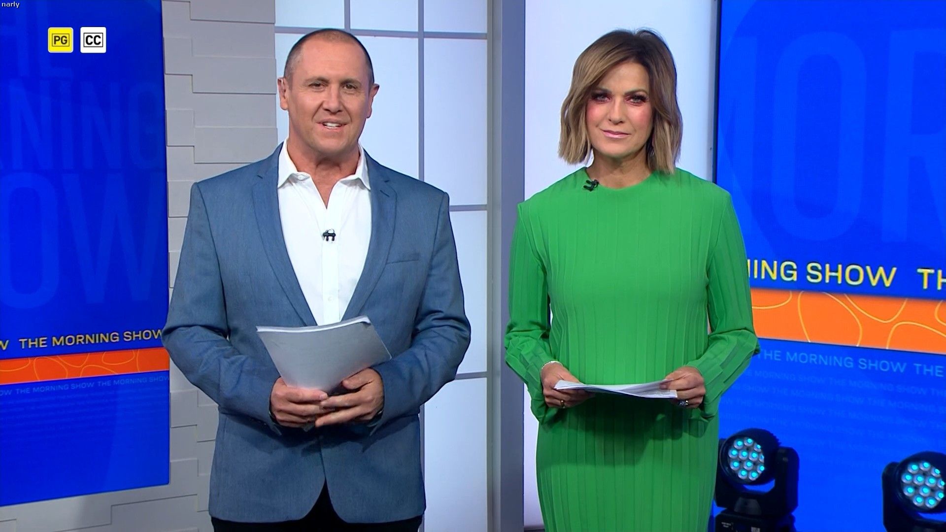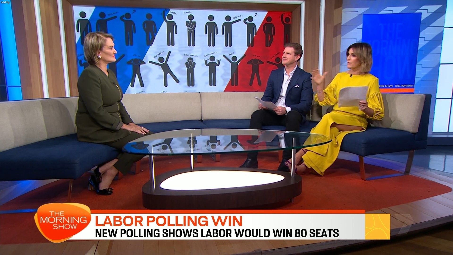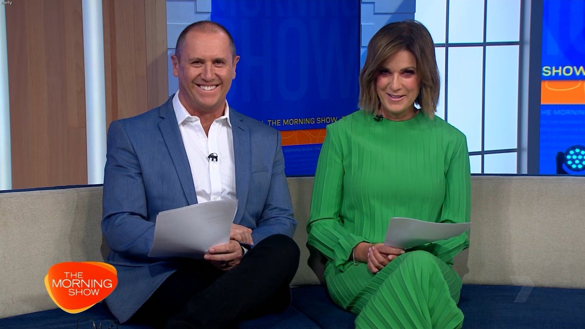 Big split in yellow skirt today. Showed really nice thigh just before 10 on the couch.