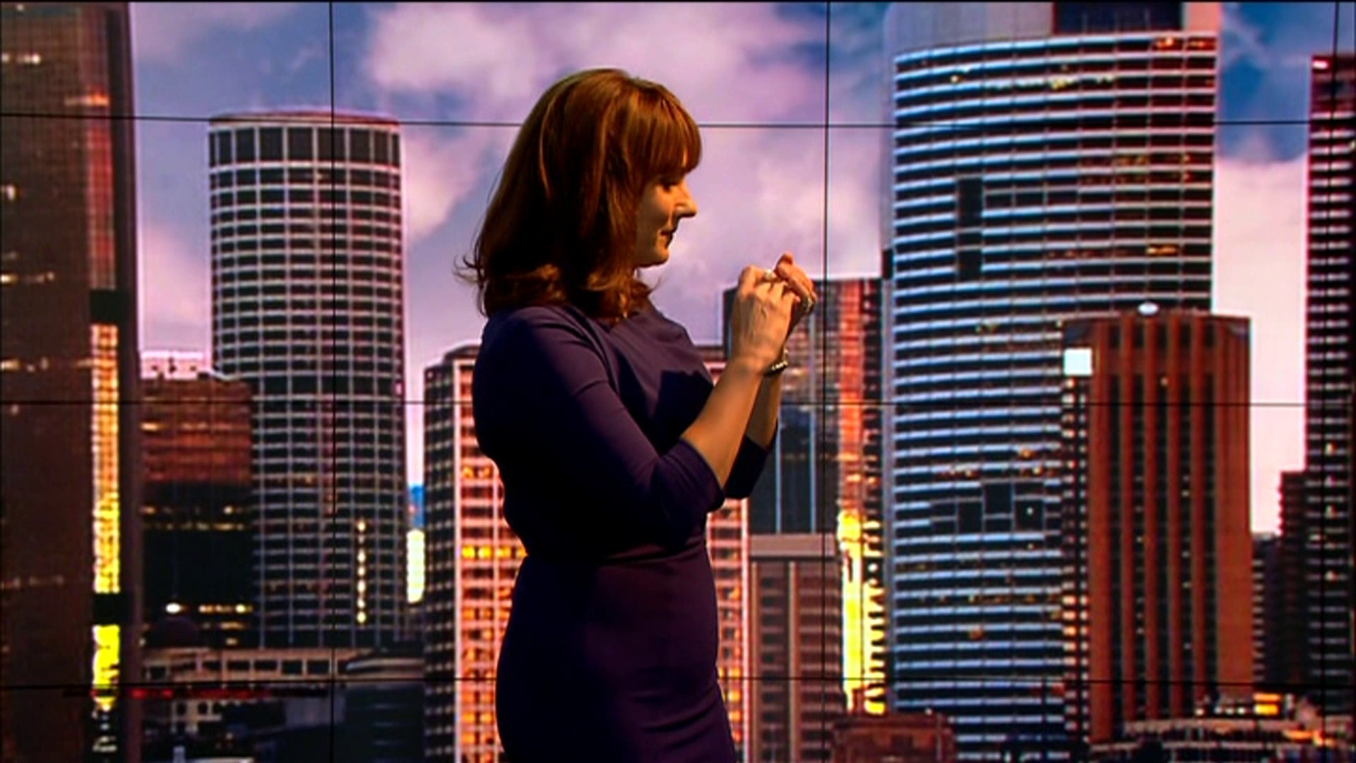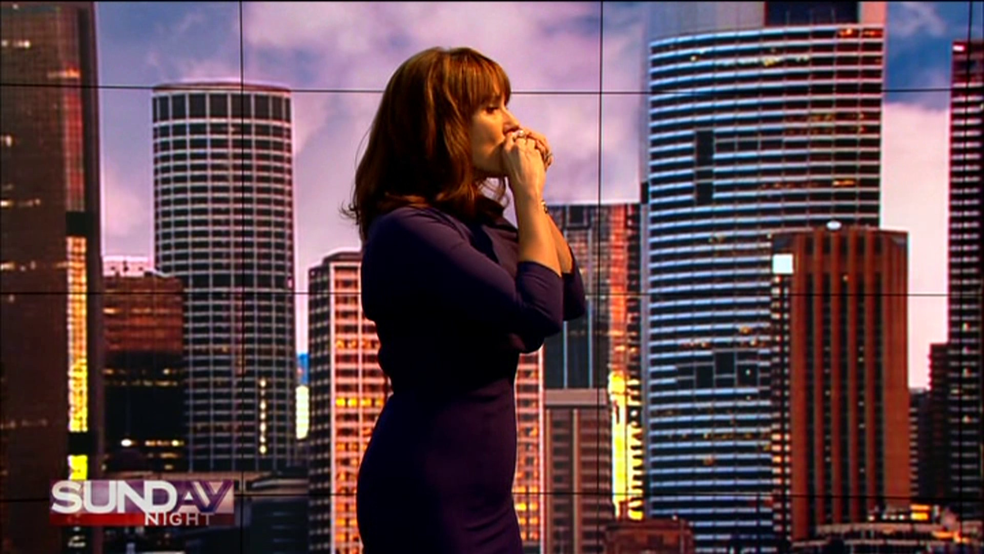 There was a brief bit where she was pretending to be playing a harmonica. She was standing side on to the camera and showing a very trim and fit body indeed.
