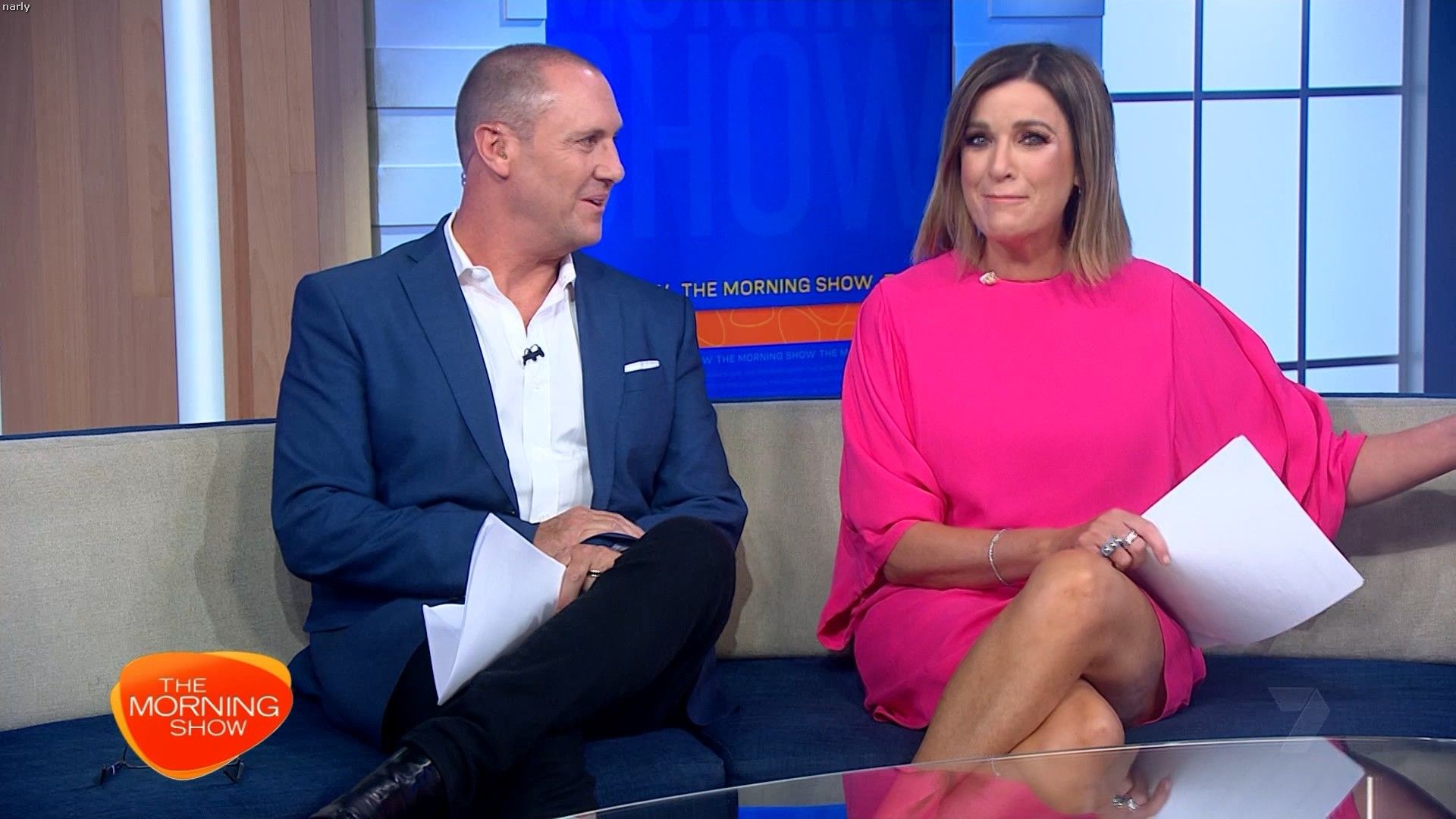 Nice pink dress with legs today. Looking hot