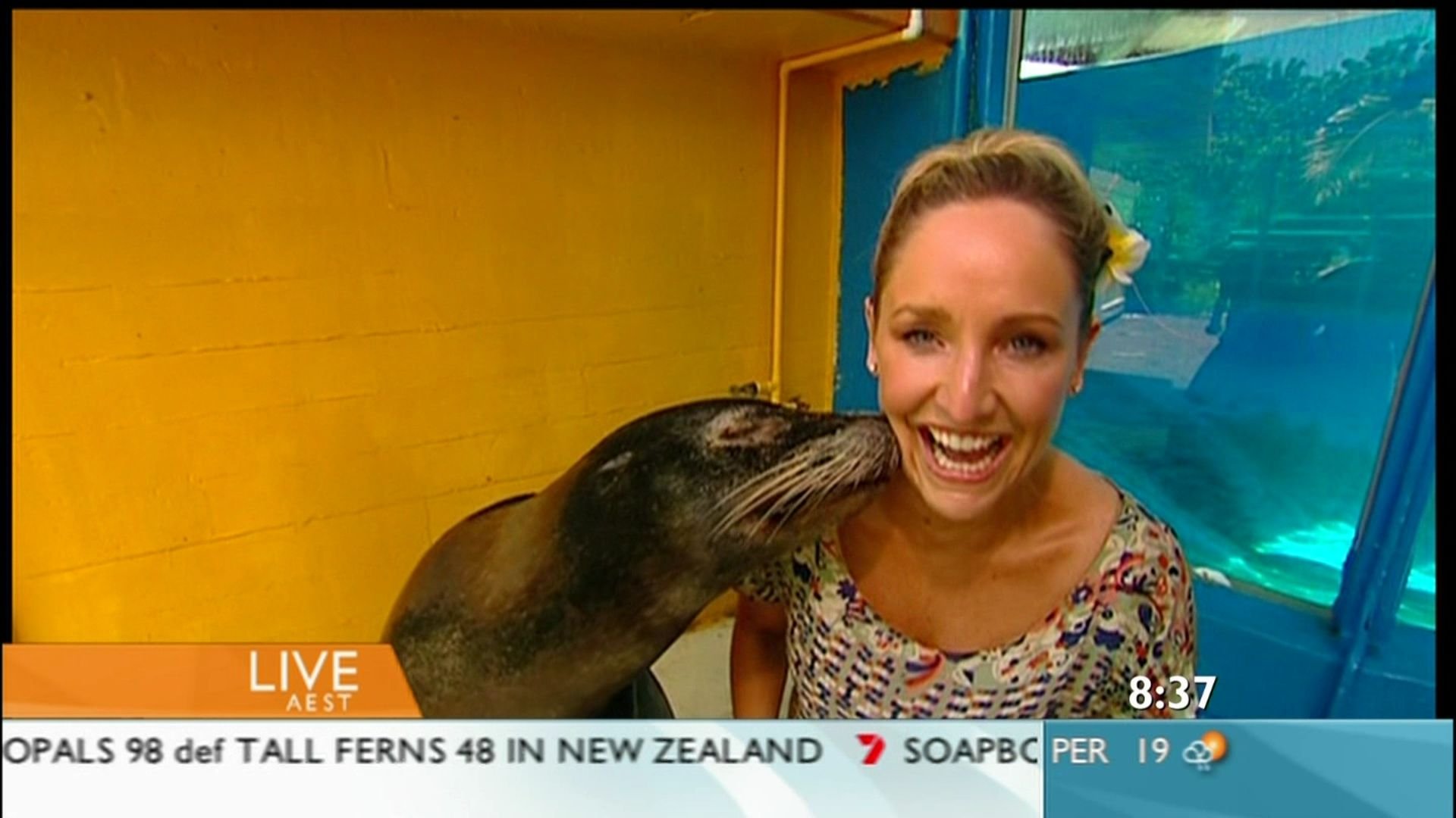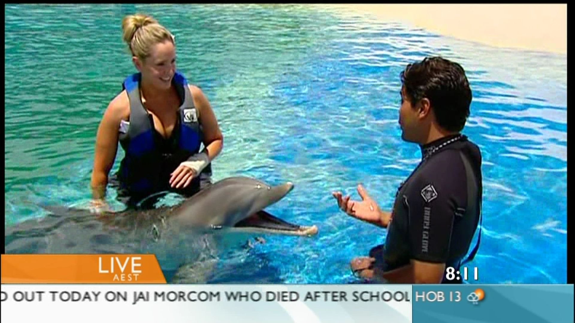 She was in a wetsuit today! Nice cleavage but I didnt get caps :(