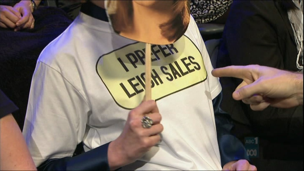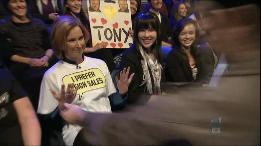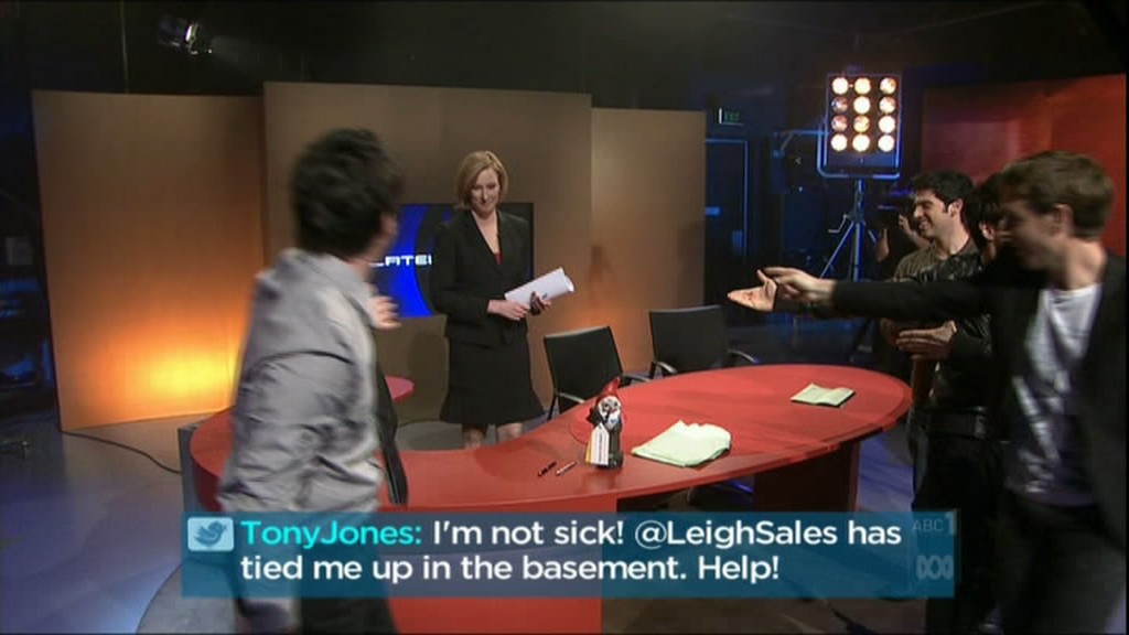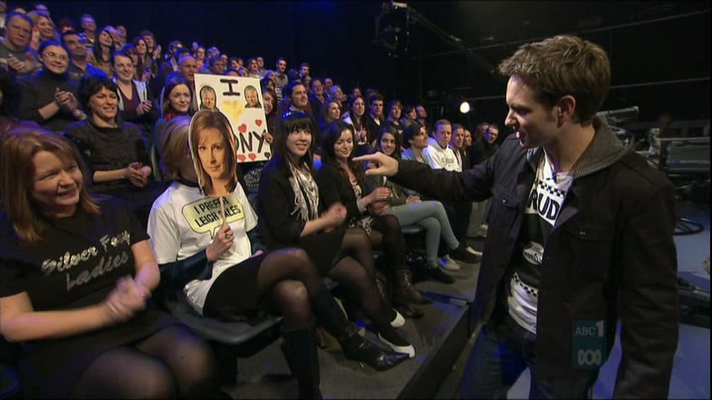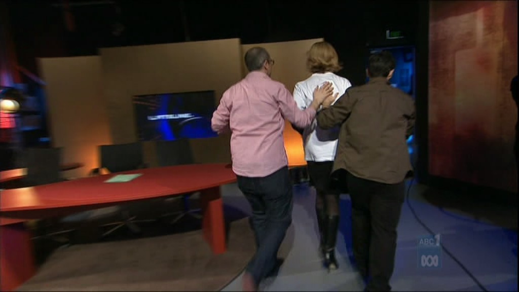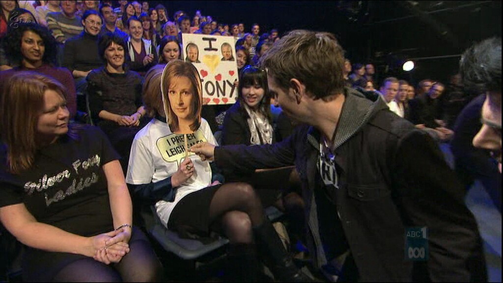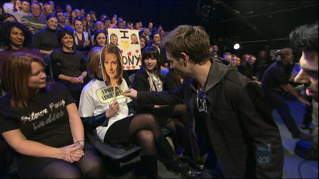 Leigh on Yes We Canberra. Check out the boots!