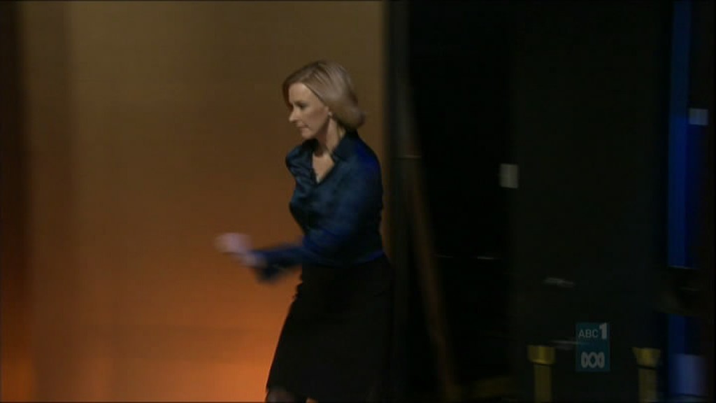 Election night legs. ABC obviously watched the BBC election coverage. Emily Maitlis did the same job in the UK.