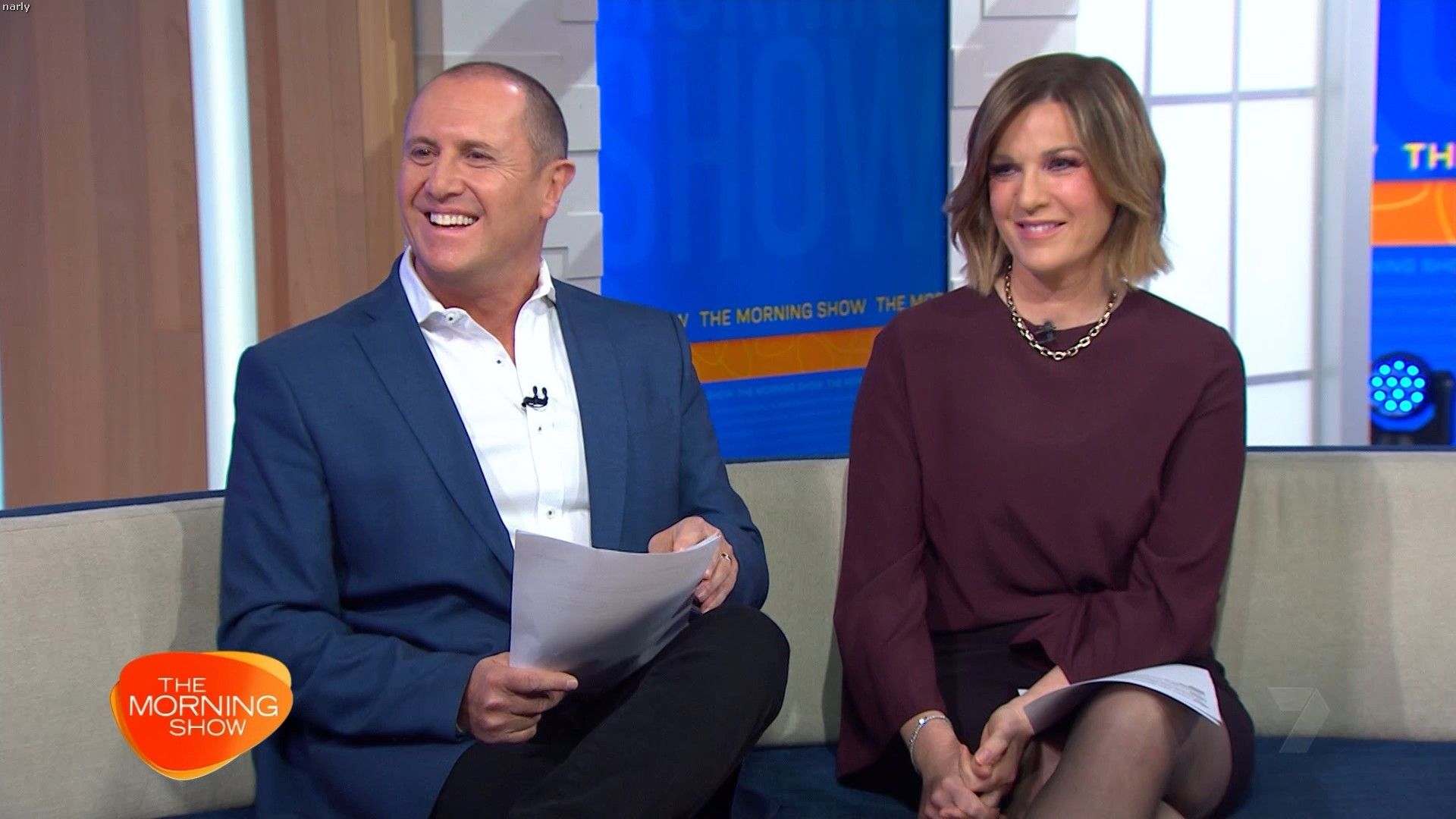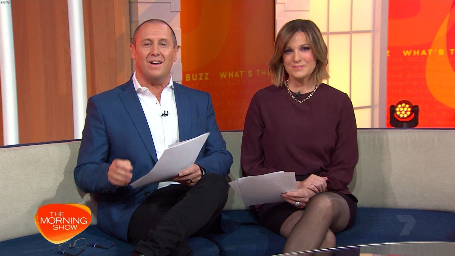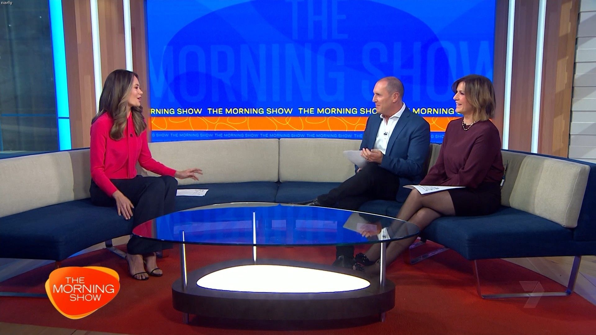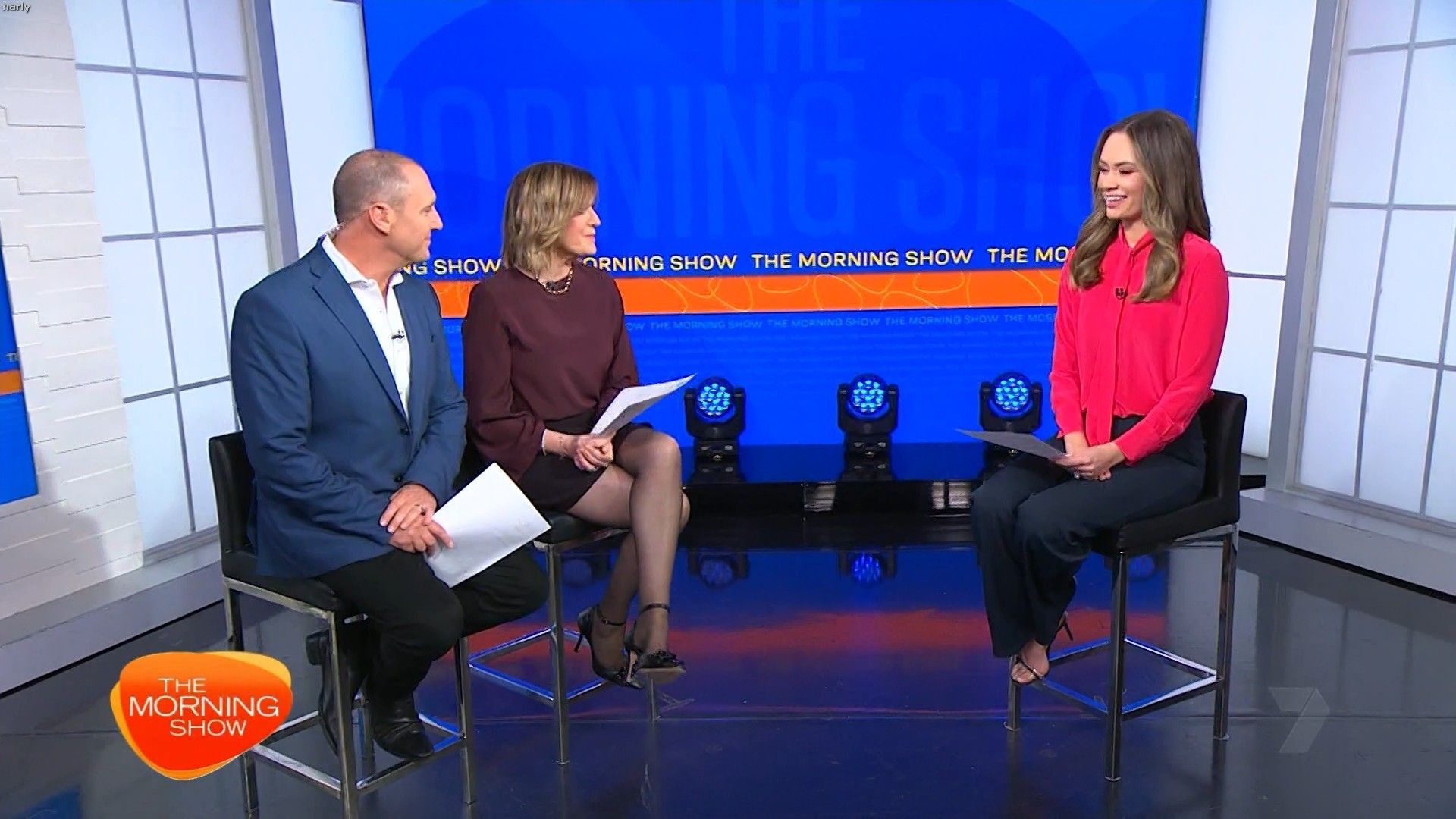 Interesting skirt today. Kinda shows leg but then kinda doesn’t. Still looked hot with a bit showing just before 10 with home and away actors