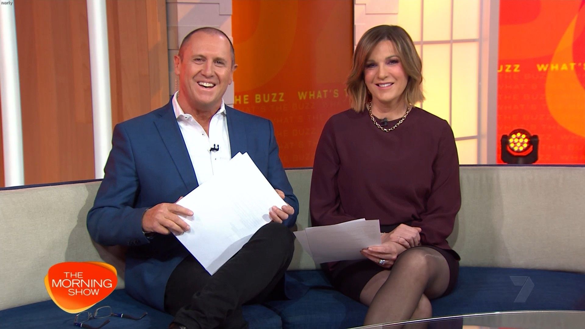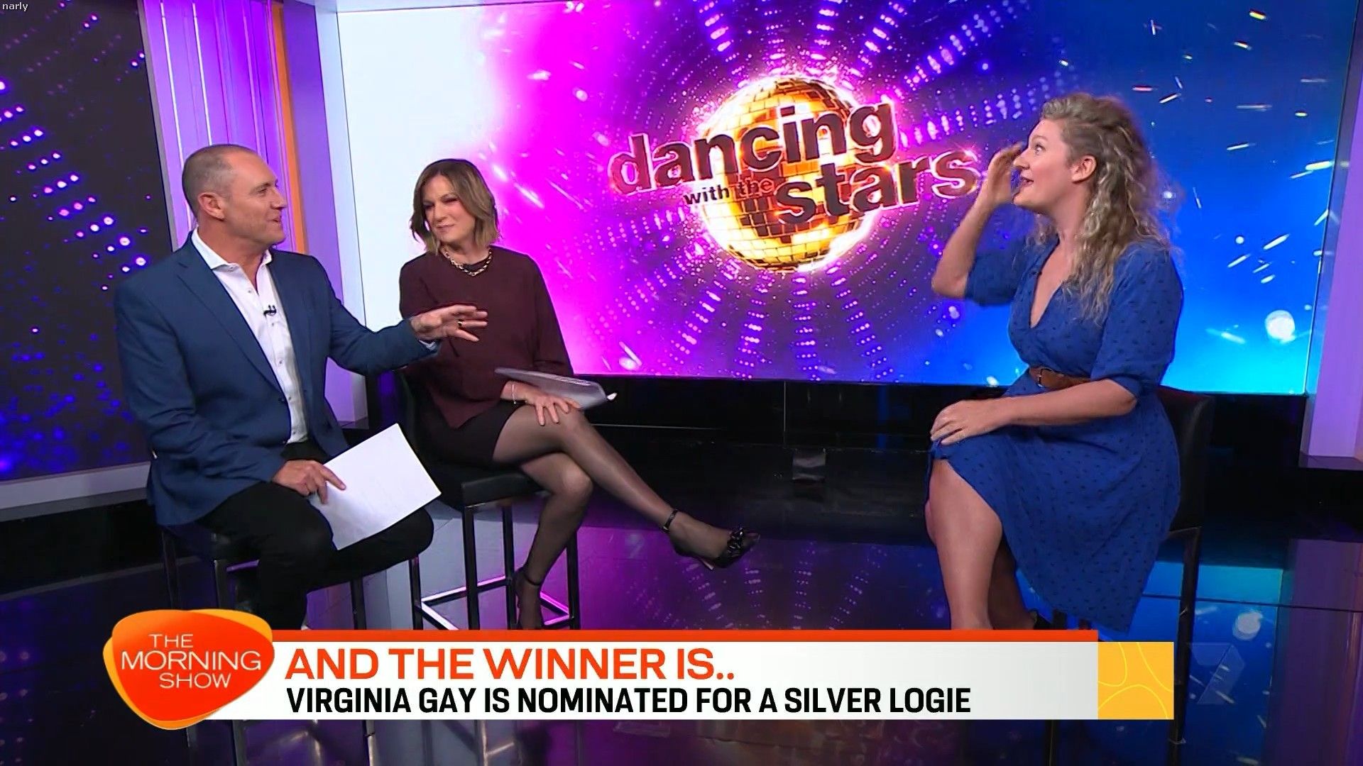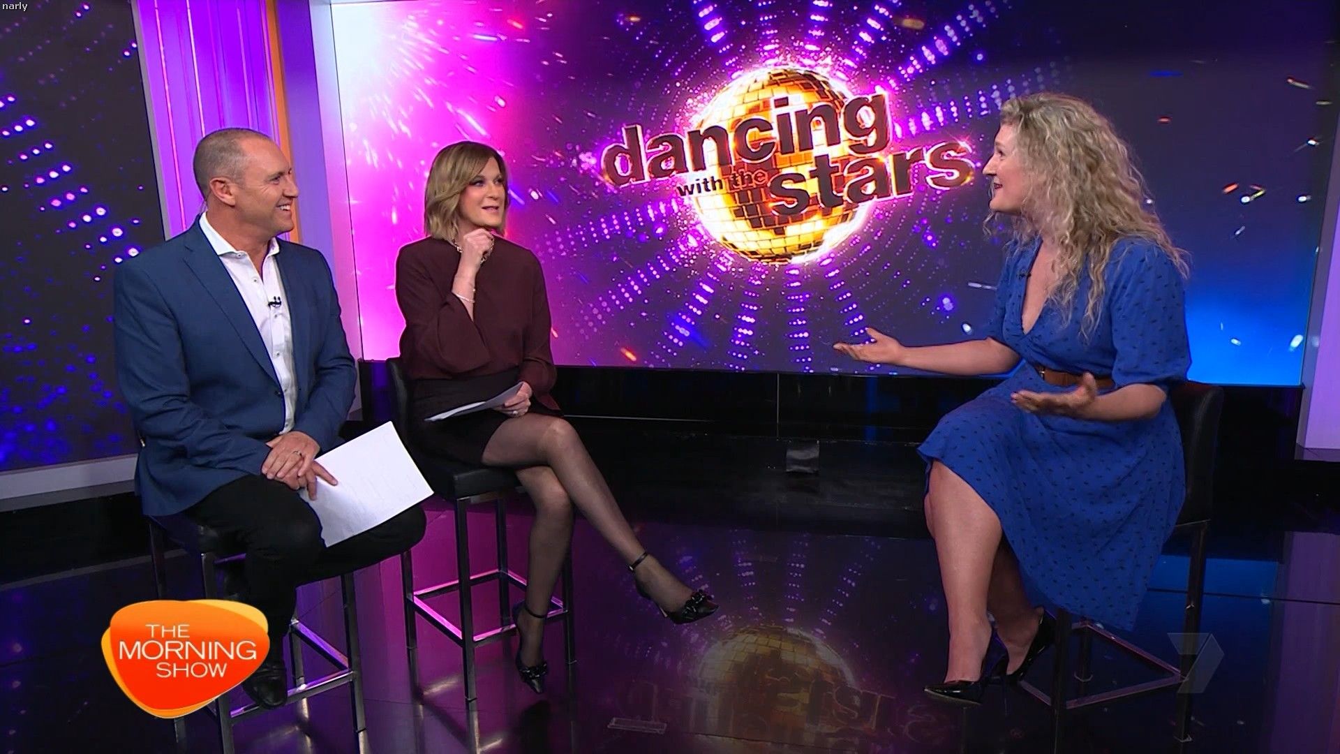 Interesting skirt today. Kinda shows leg but then kinda doesn’t. Still looked hot with a bit showing just before 10 with home and away actors