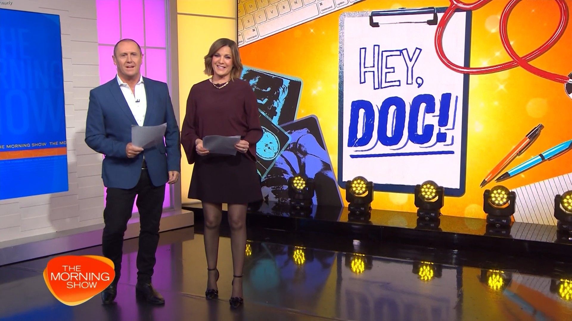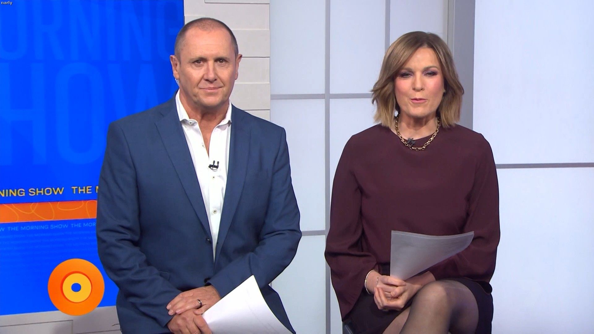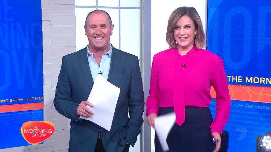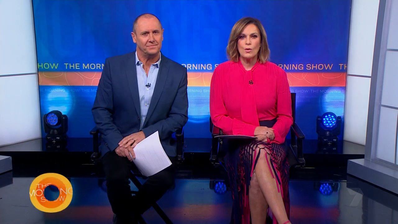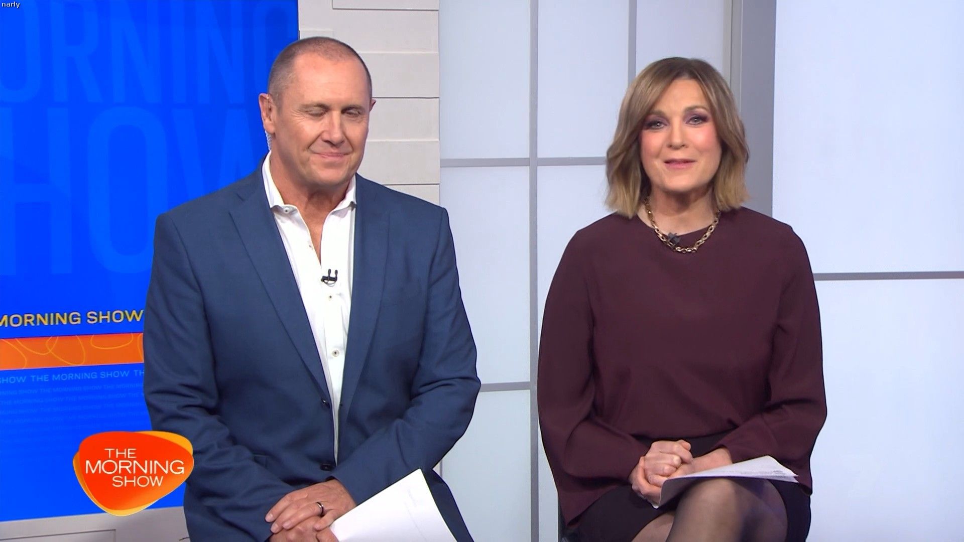 Interesting skirt today. Kinda shows leg but then kinda doesn’t. Still looked hot with a bit showing just before 10 with home and away actors