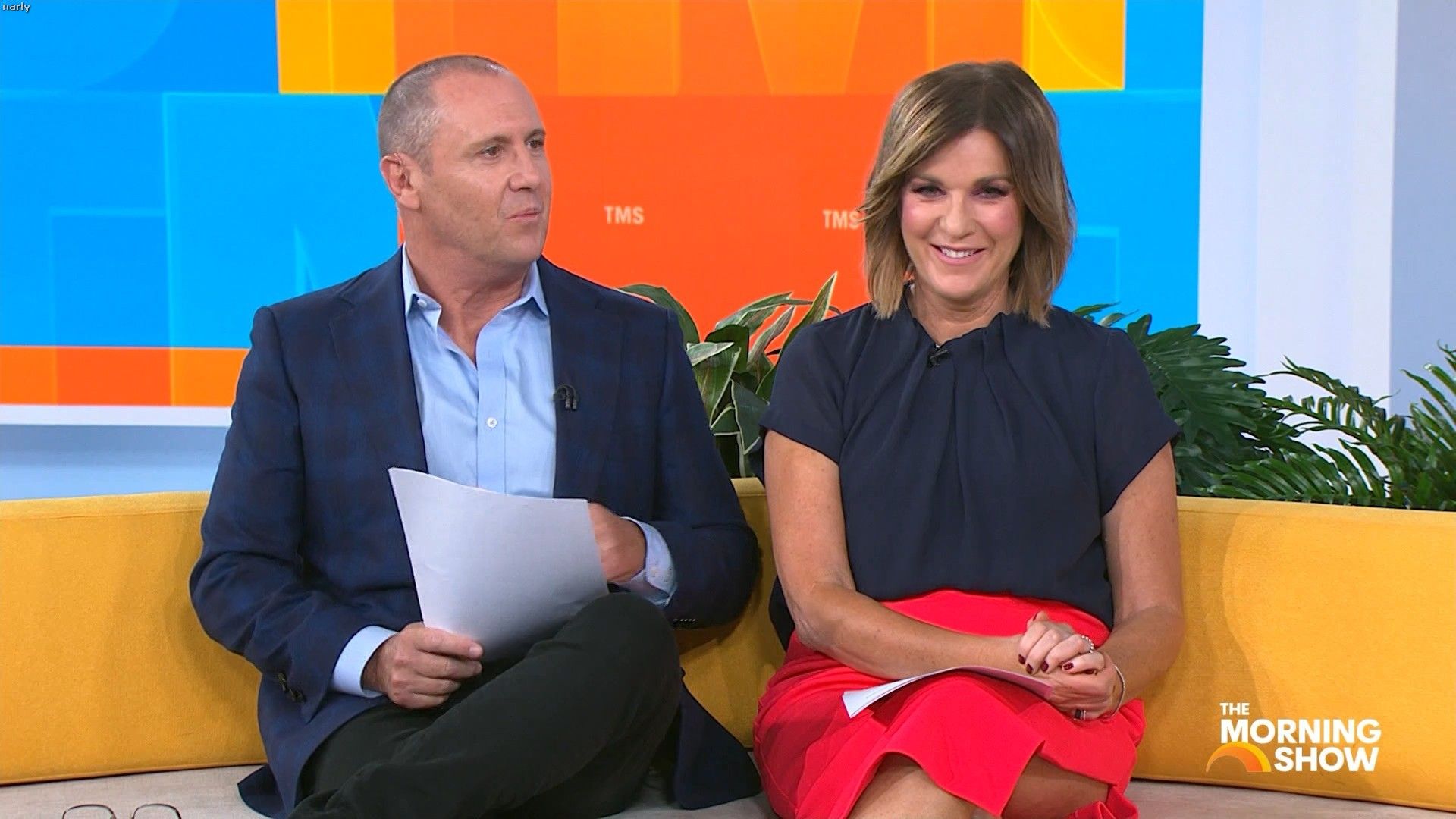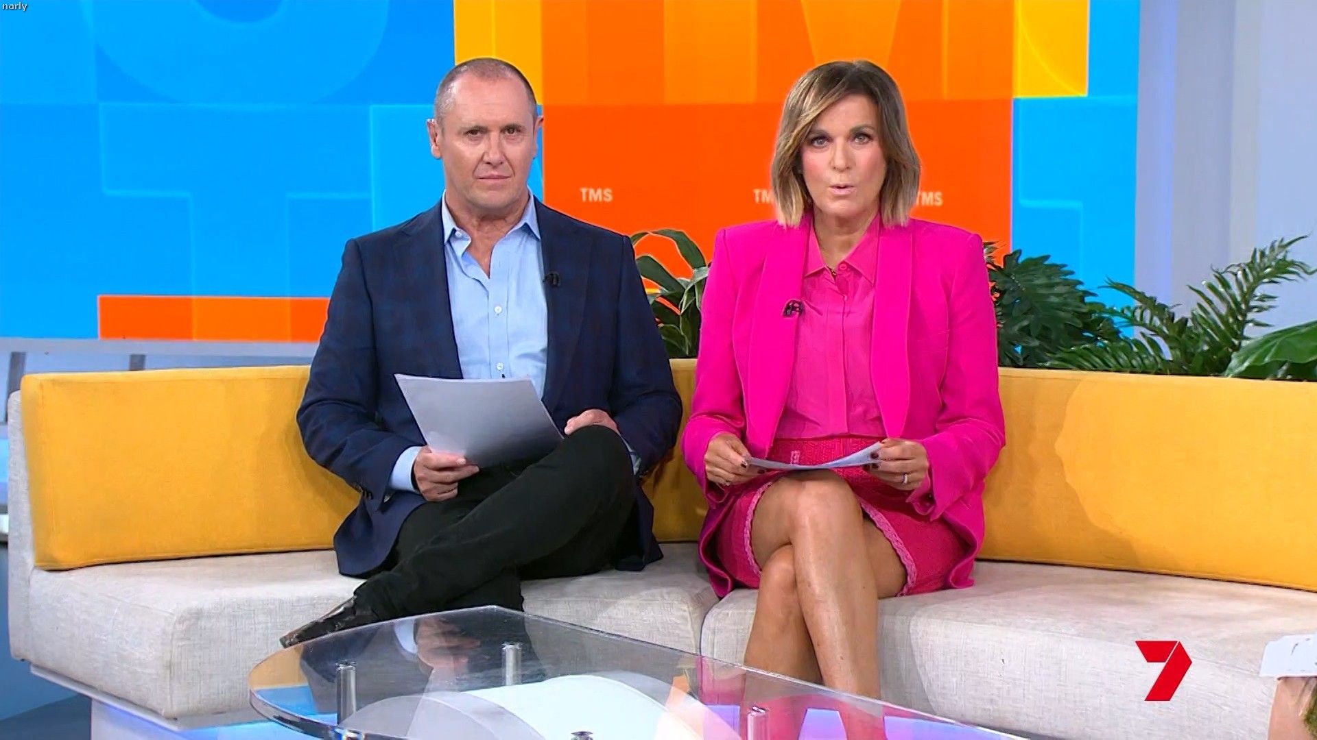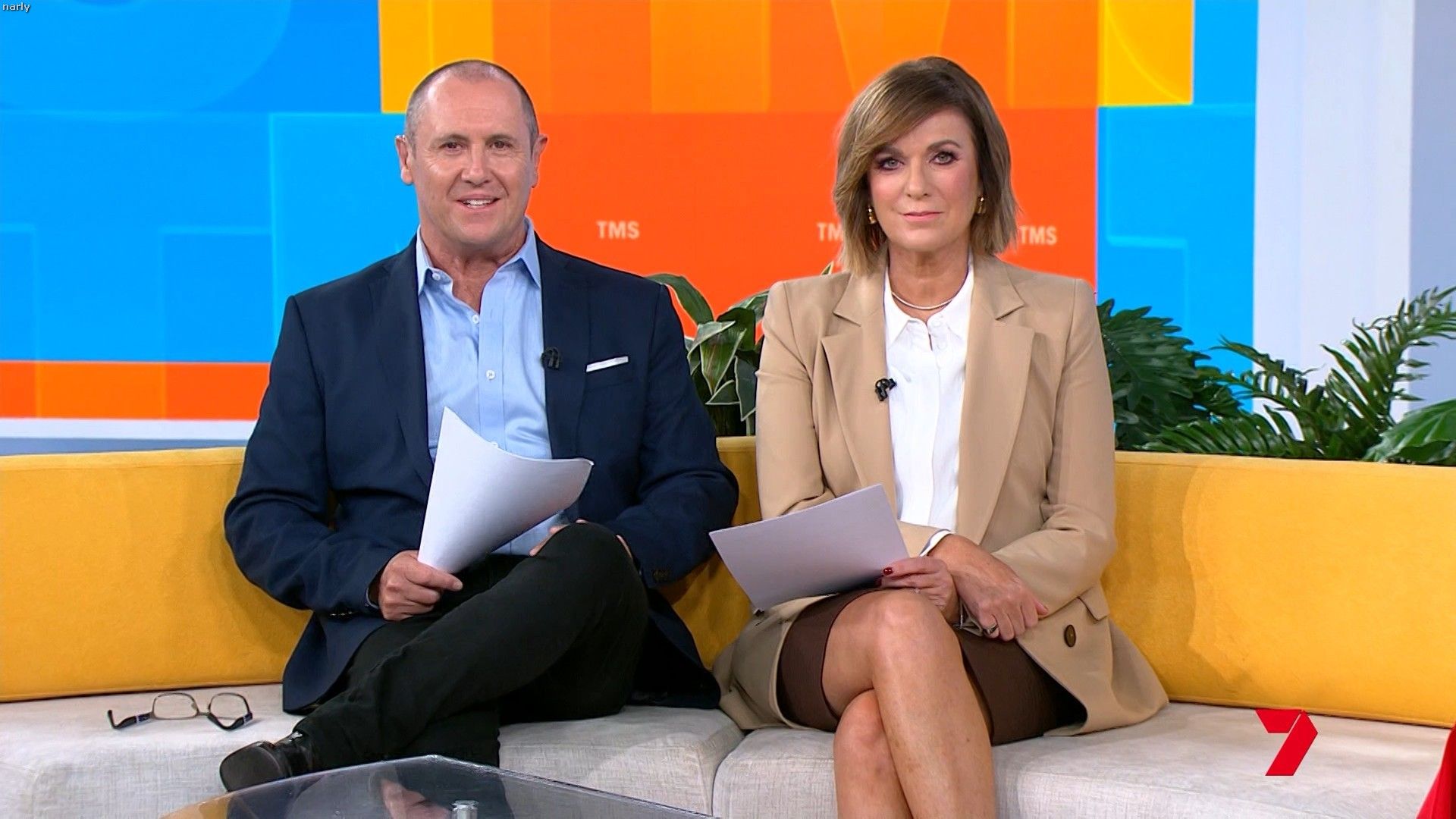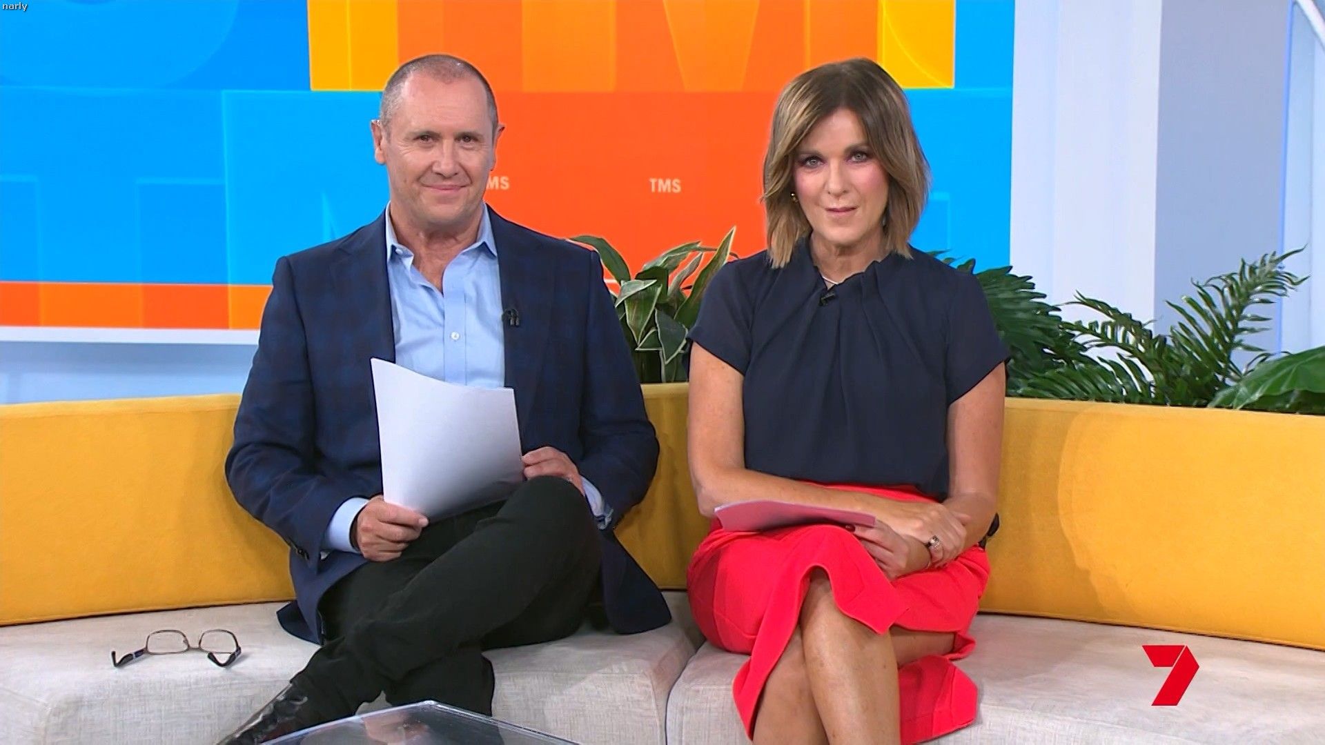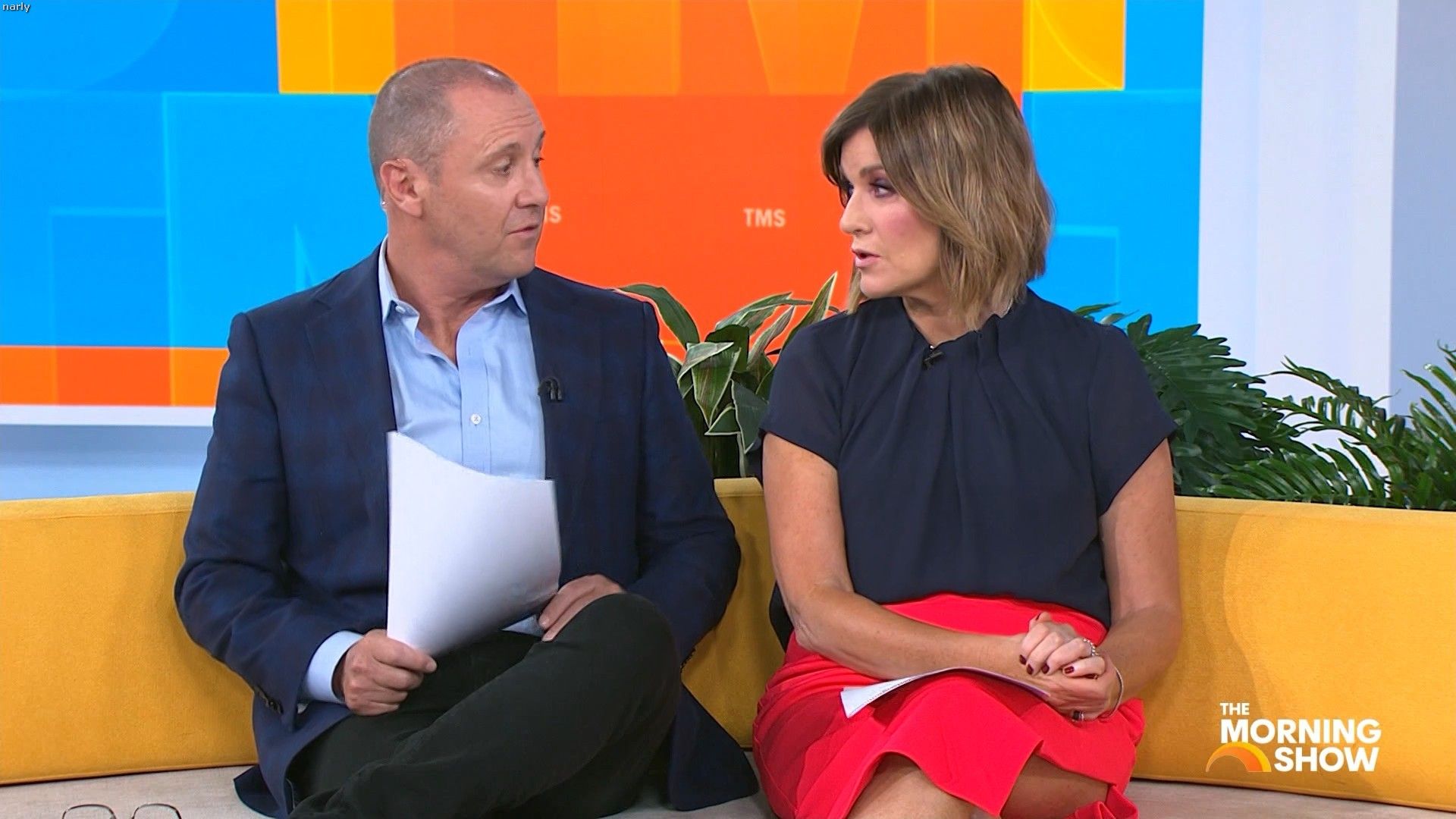 Big split in the side of orange skirt today. Might show some leg?