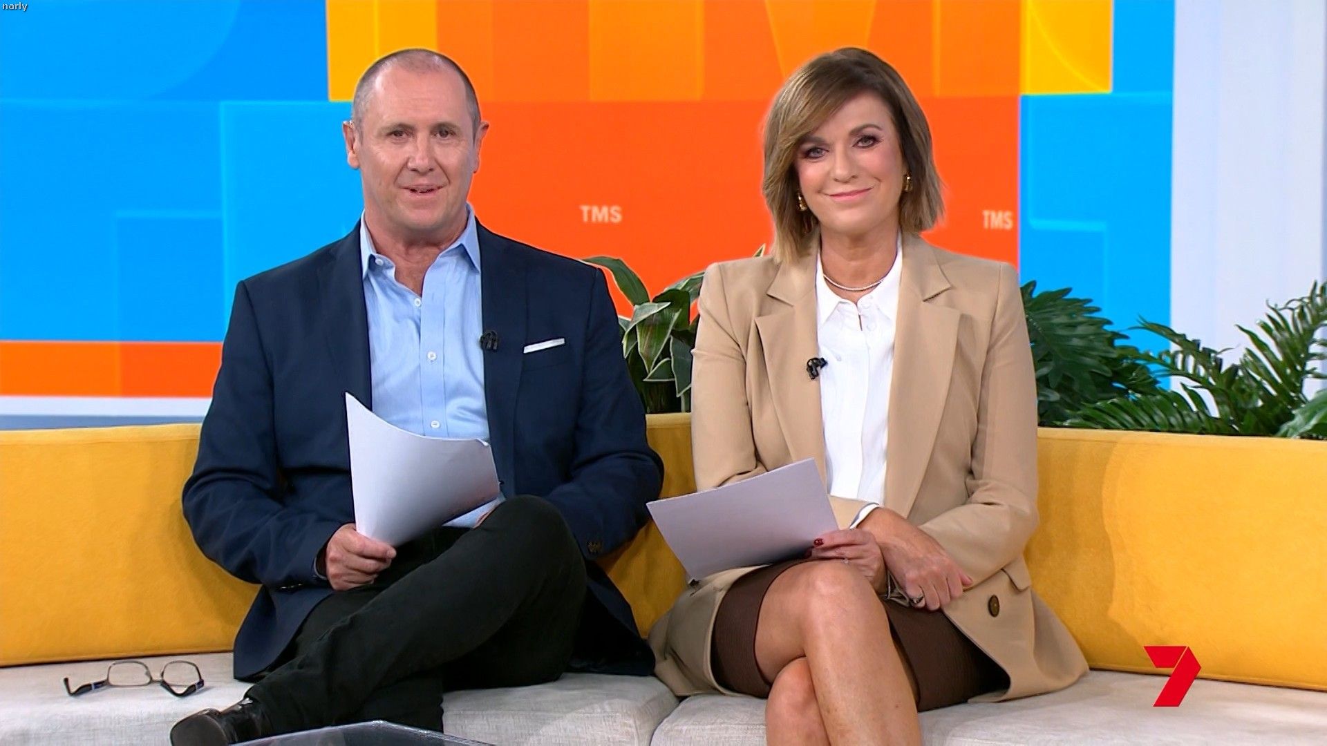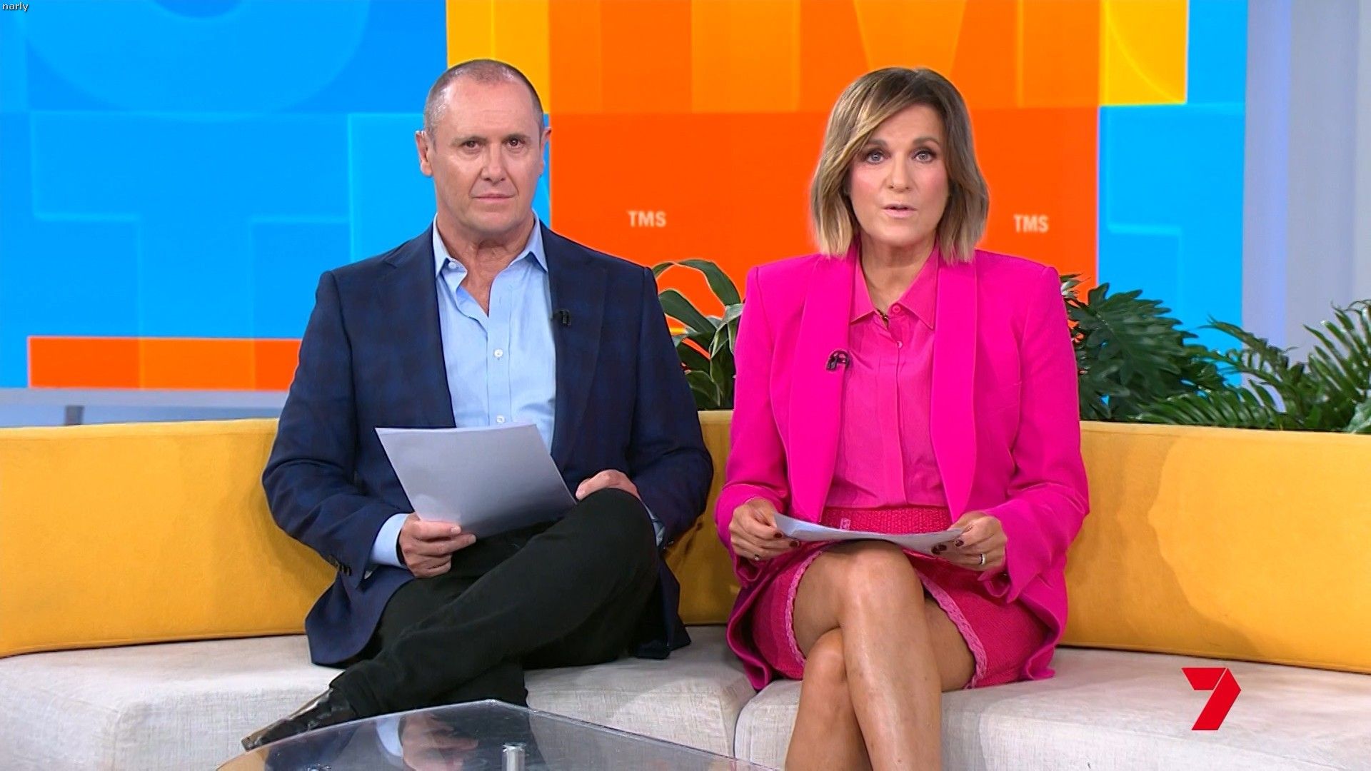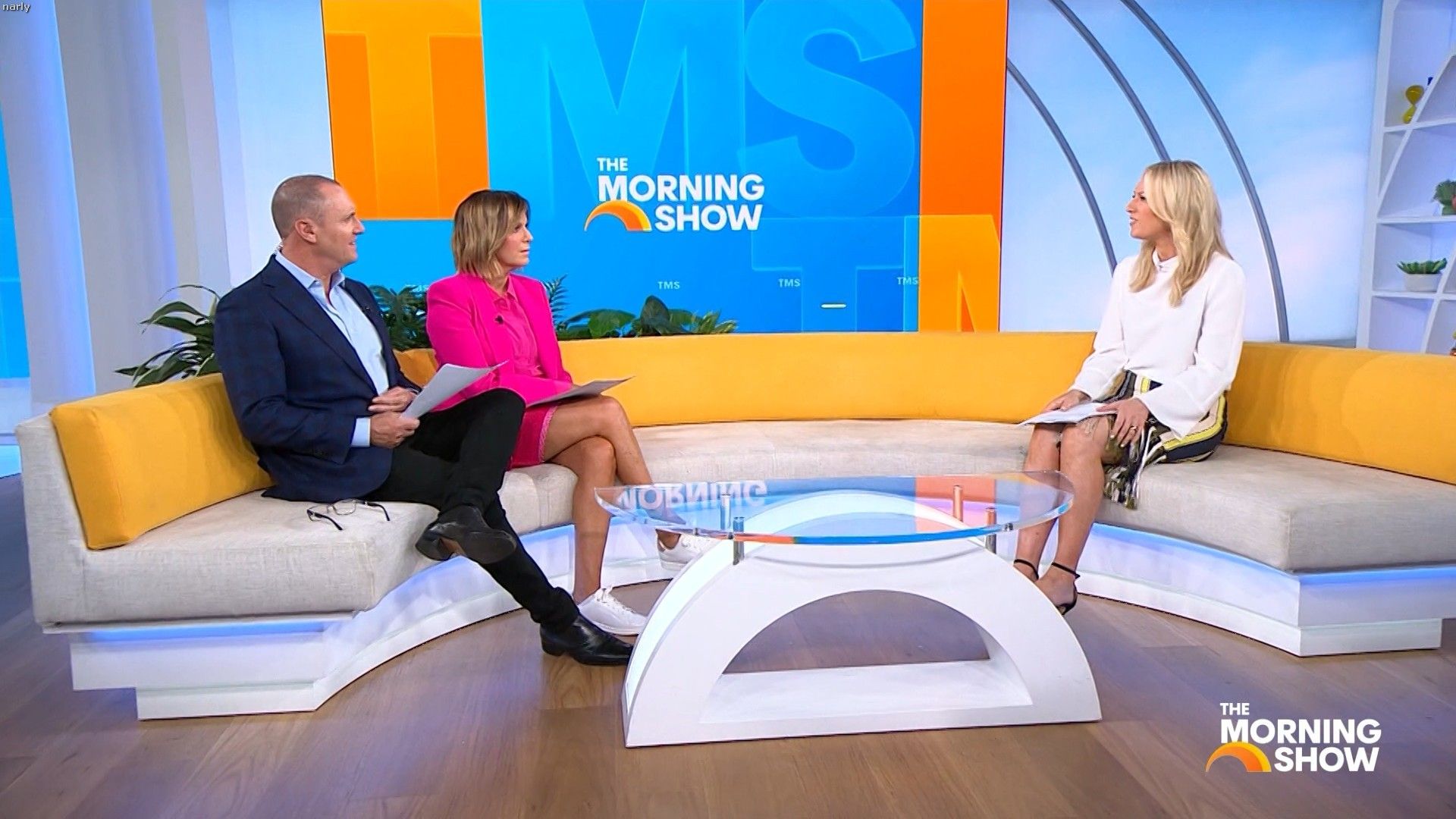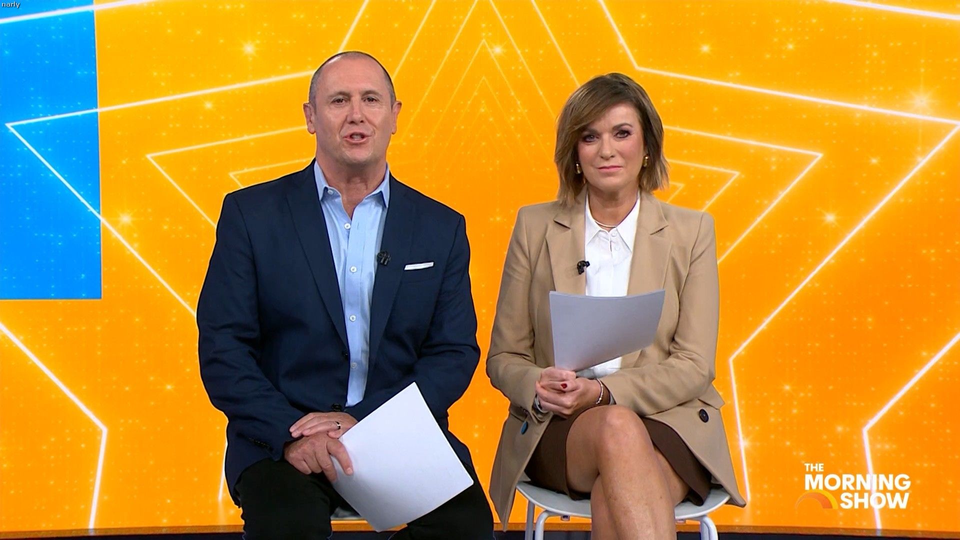 Big split in the side of orange skirt today. Might show some leg?
