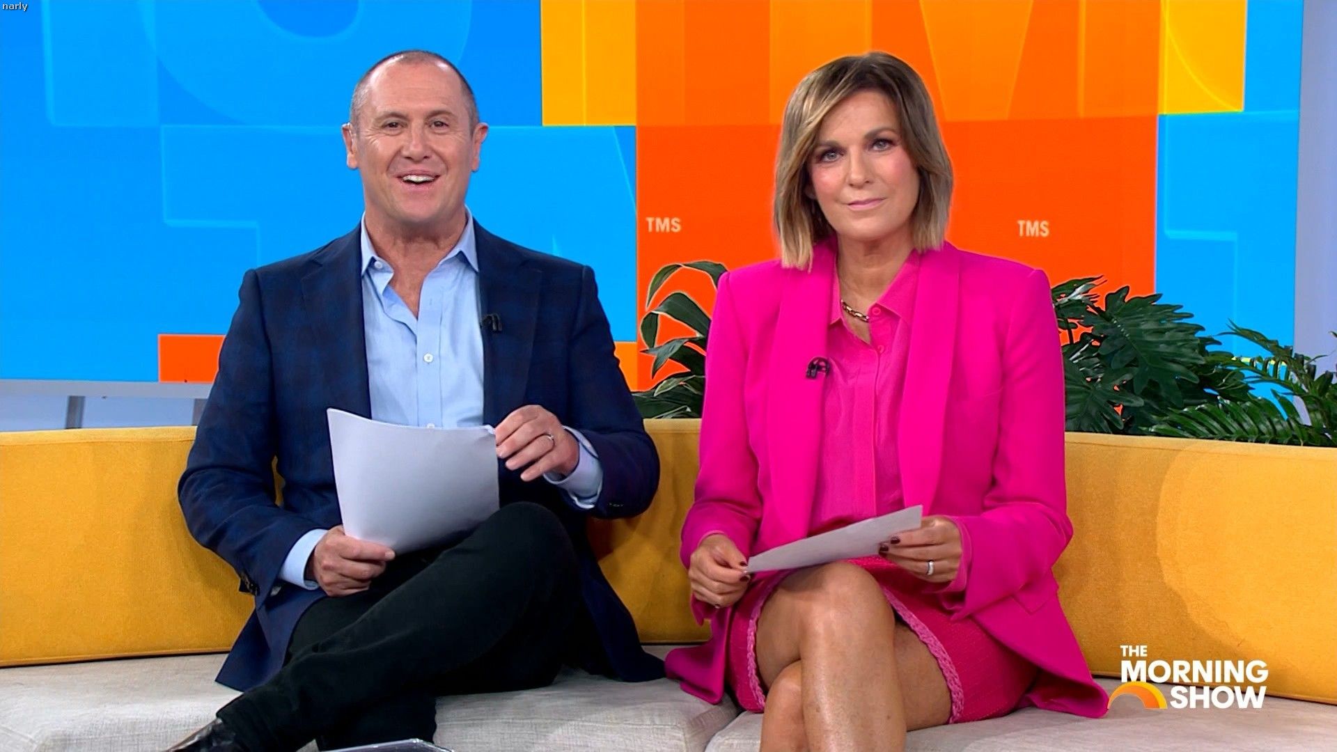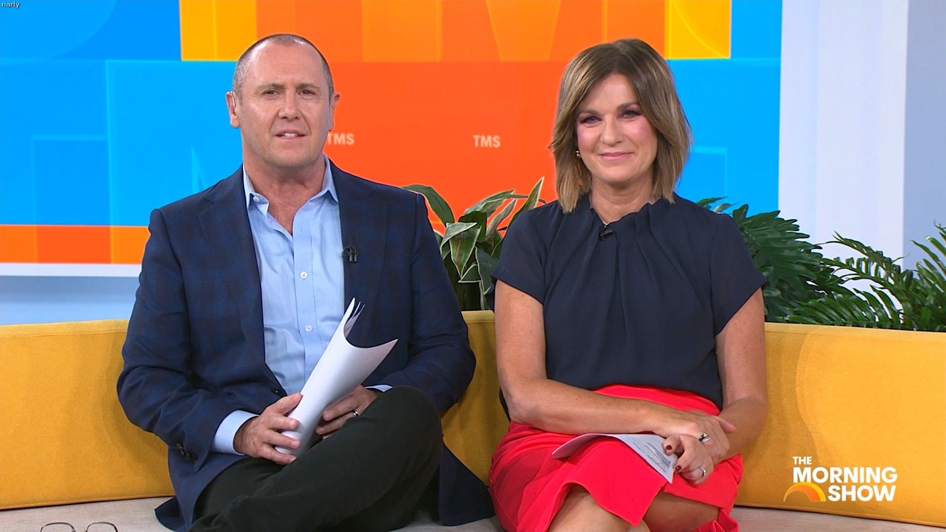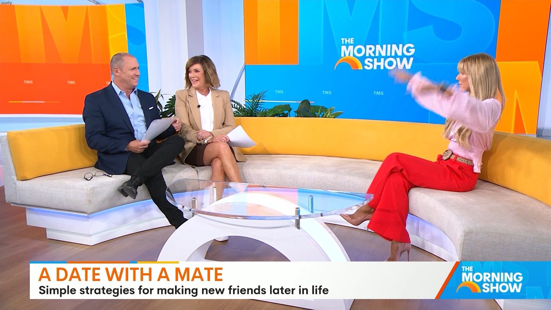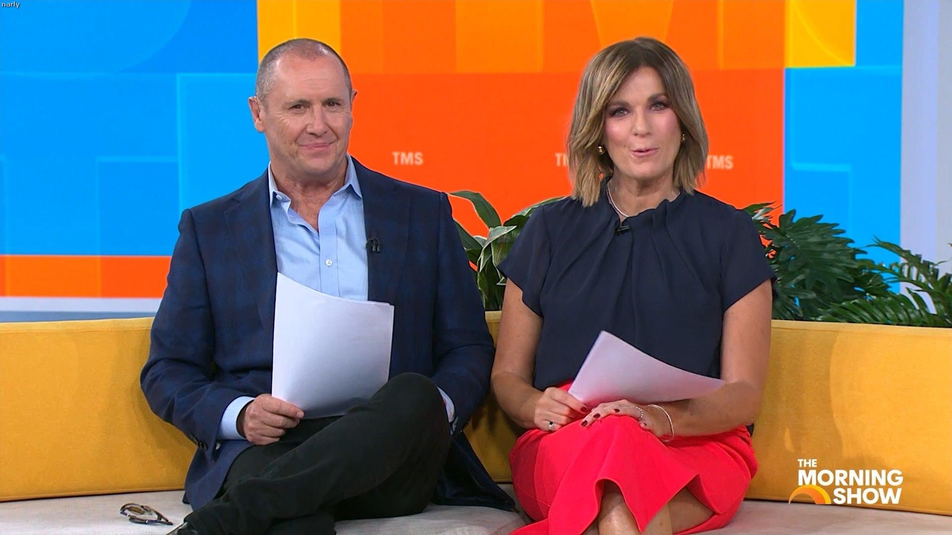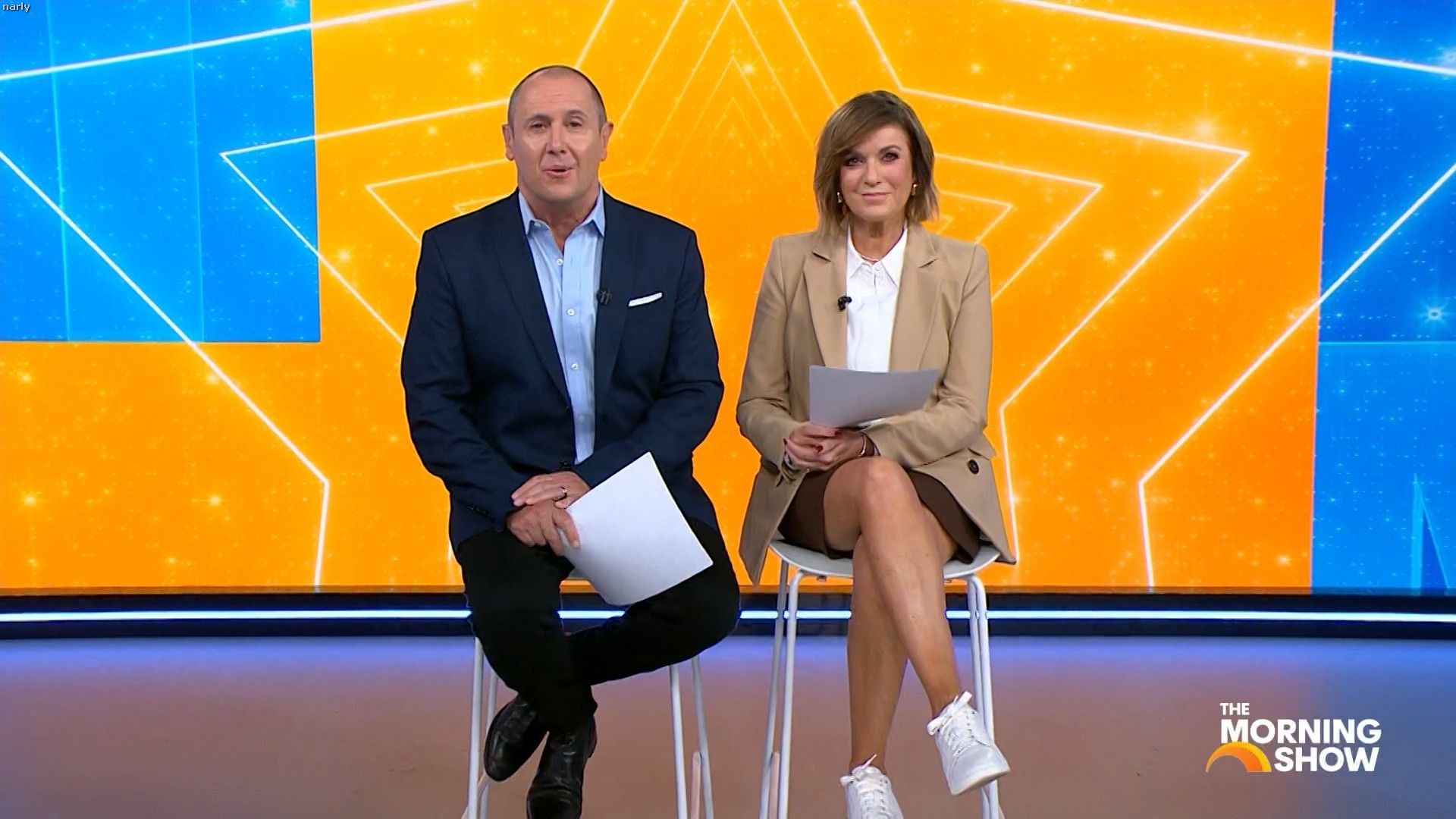 Big split in the side of orange skirt today. Might show some leg?