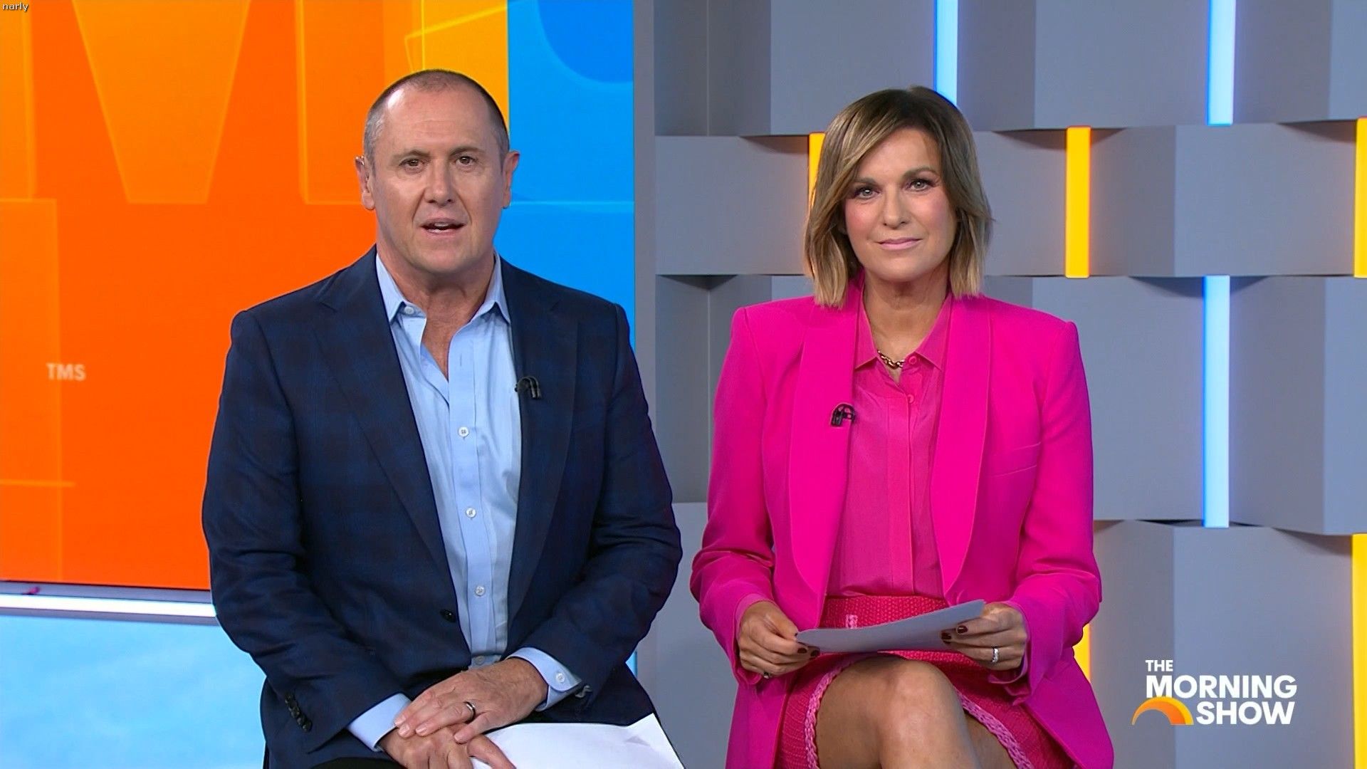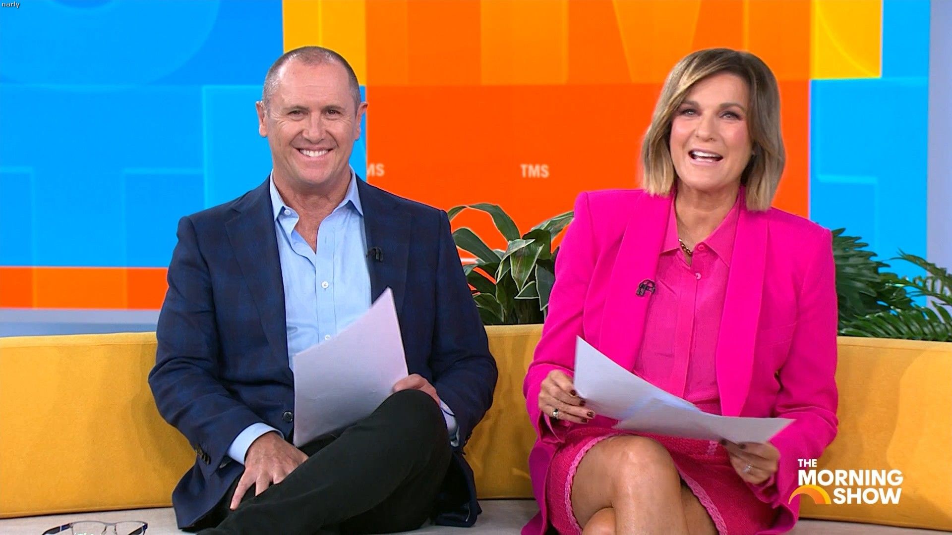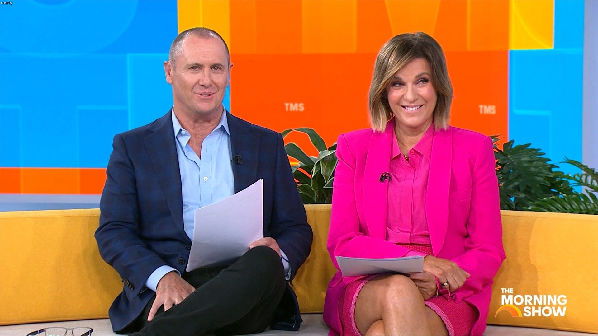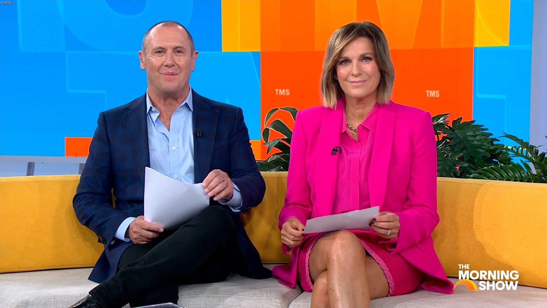 Big split in the side of orange skirt today. Might show some leg?