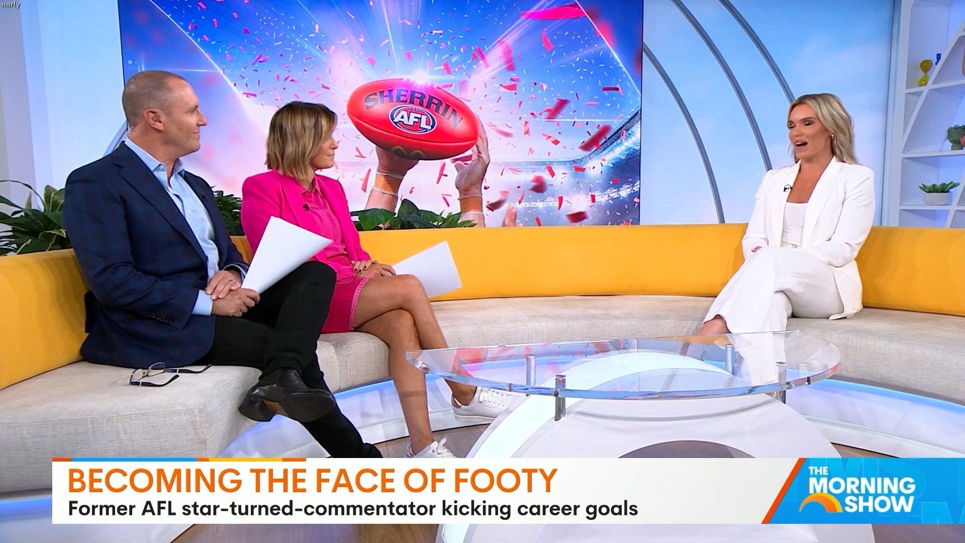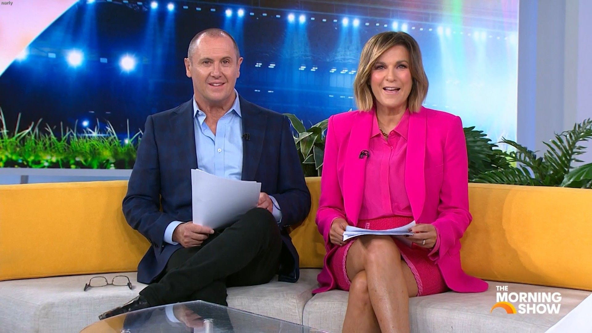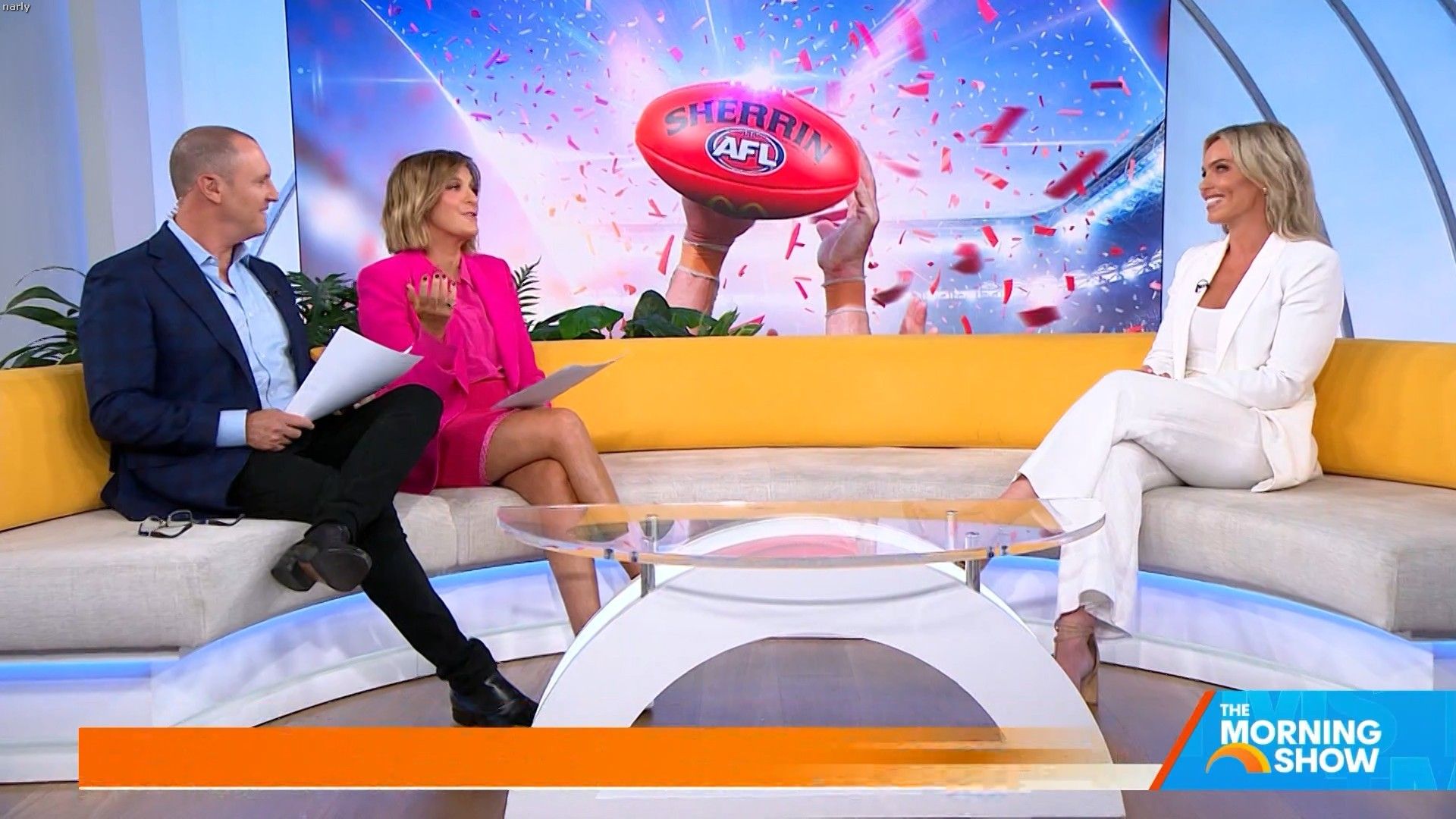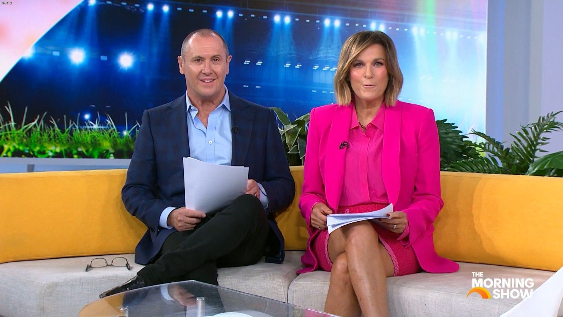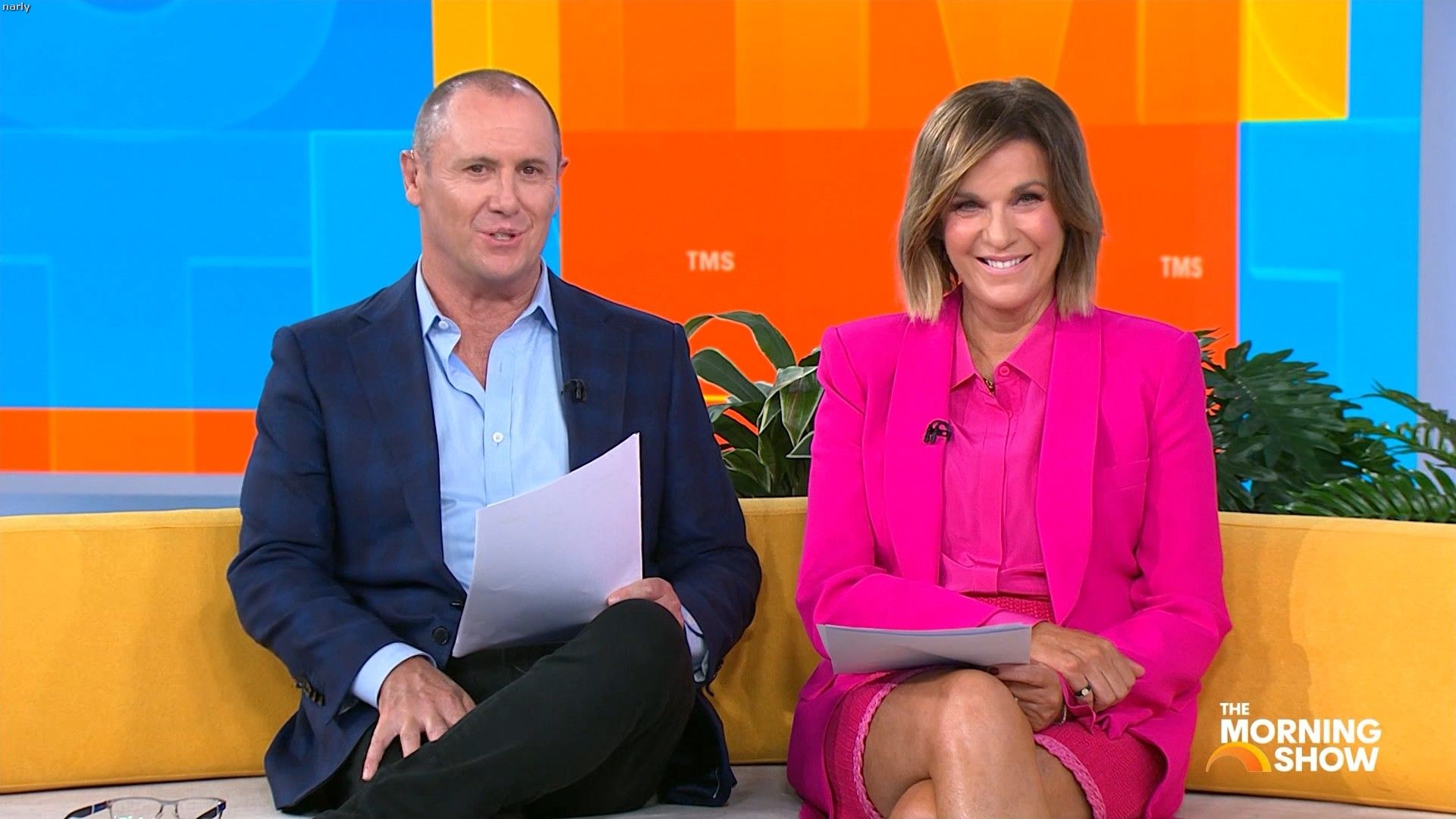 Big split in the side of orange skirt today. Might show some leg?