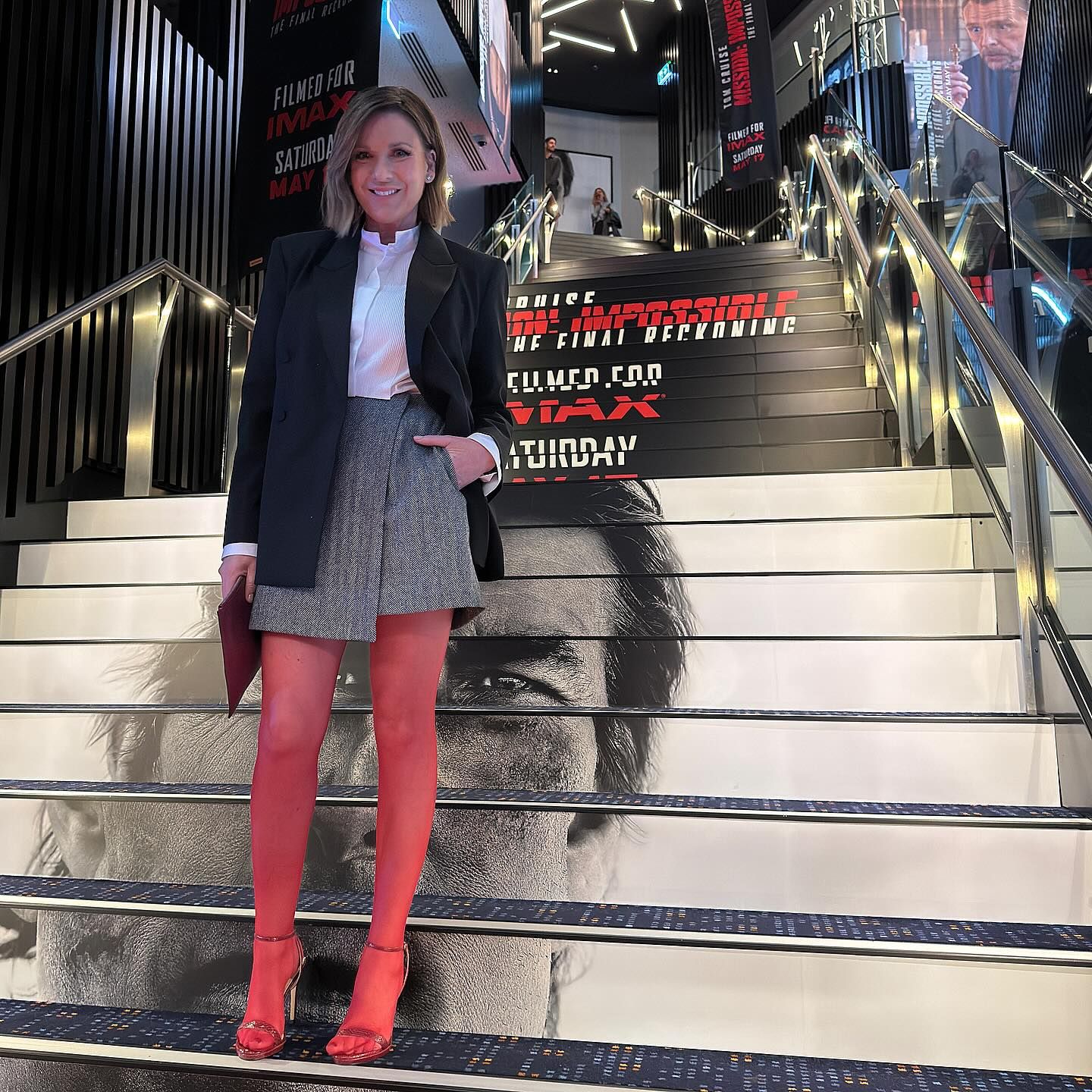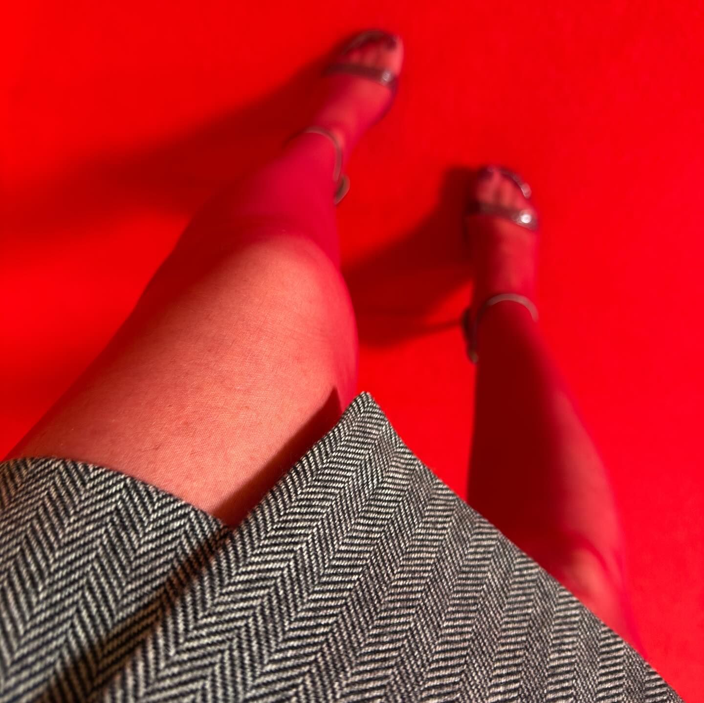 in pantyhose and short skirt again today. she knows we love it