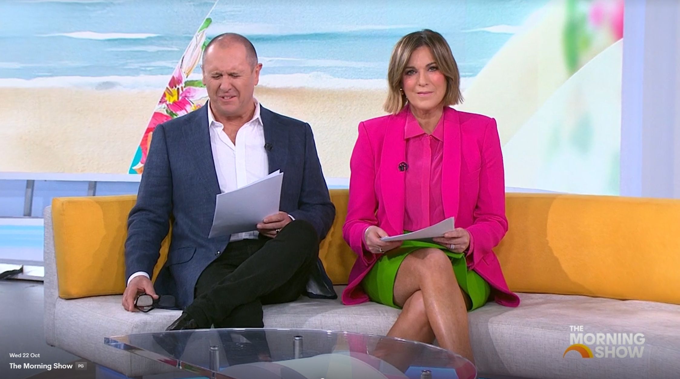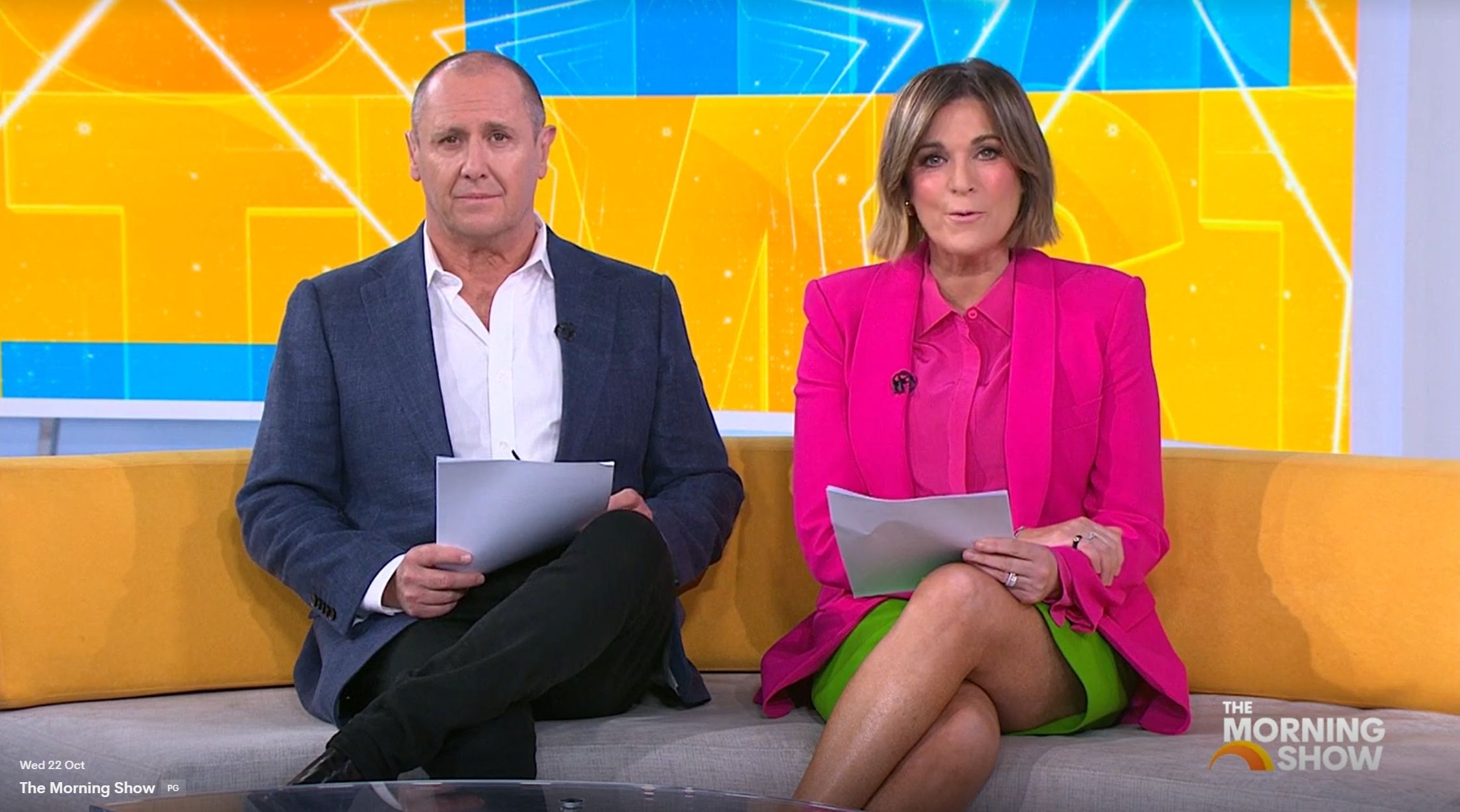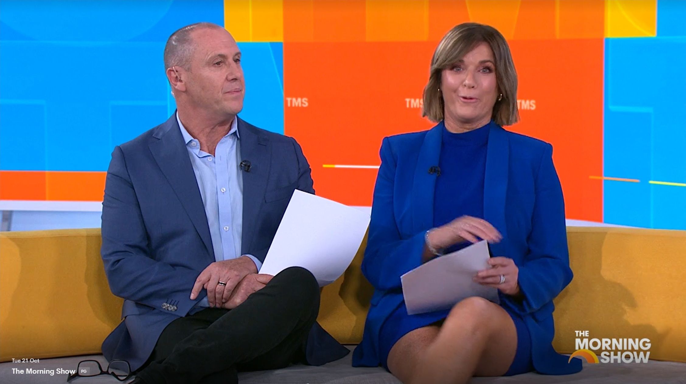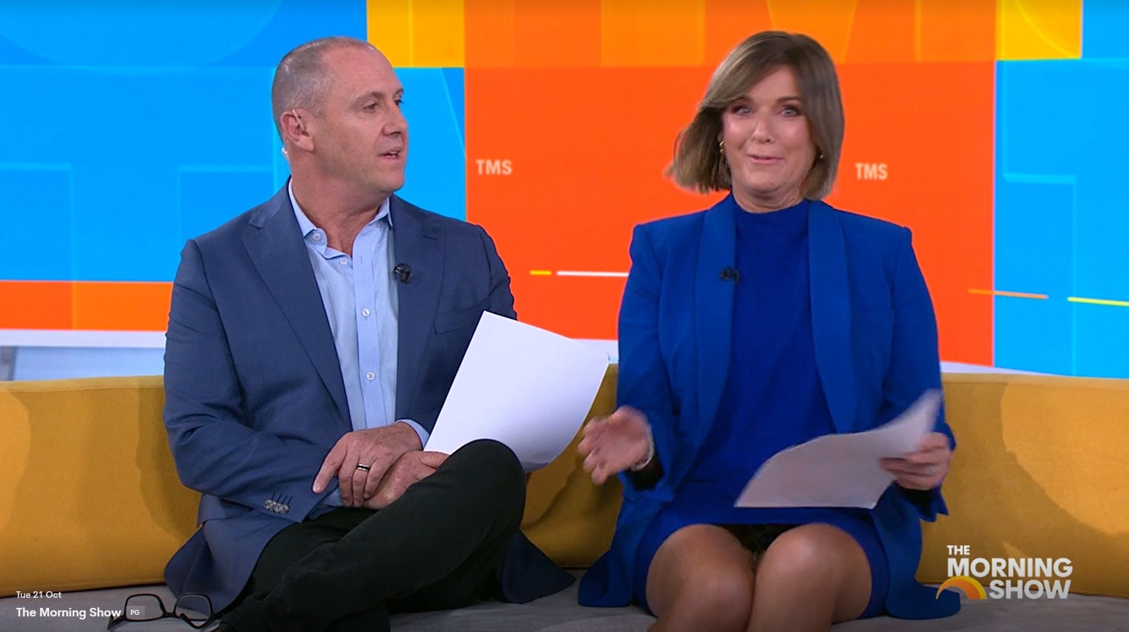 bigmac33 wrote: Could’ve been nothing, but Kylie did a quick cross of her legs and a little leg bounce at around 10.15 today. Could’ve been an interesting view. Was straight after the news update. I saw it. You could see everything.