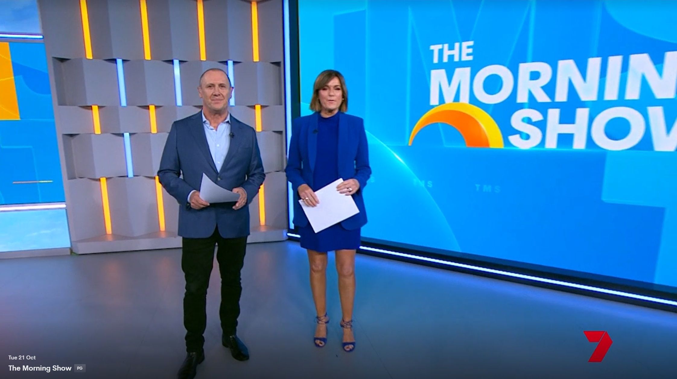Kylie is still out-shining the rest of the Channel 7 cast. Loving that we are back to short skirts.