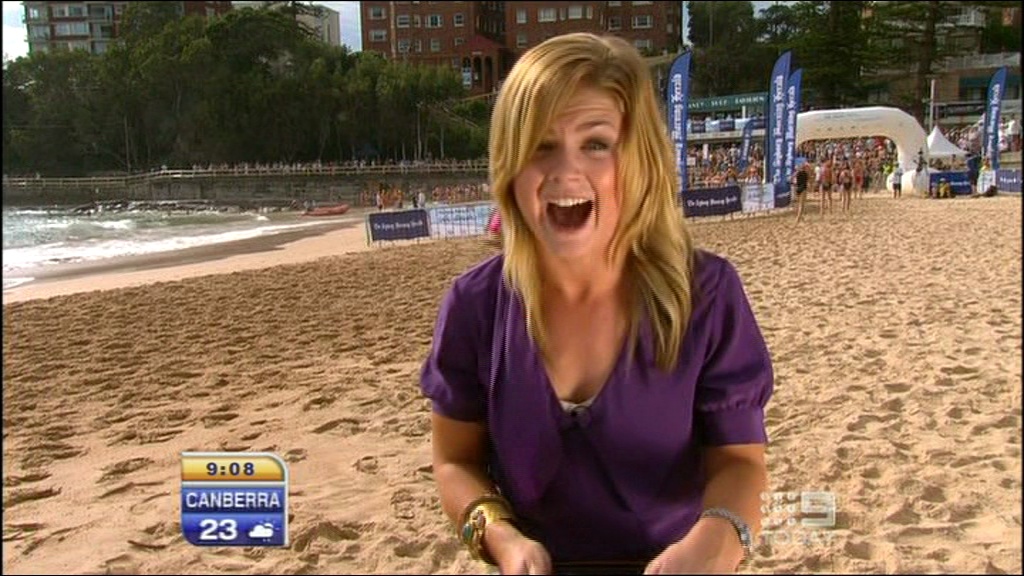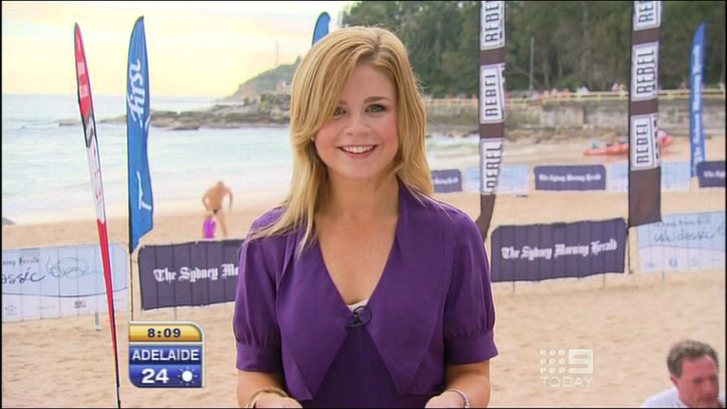 Could anyone cap Emma on the Today show doing the weather around 10 past 8? She looked hot as, lots of leg action, and almost an upskirt, but she quickly covered back up..