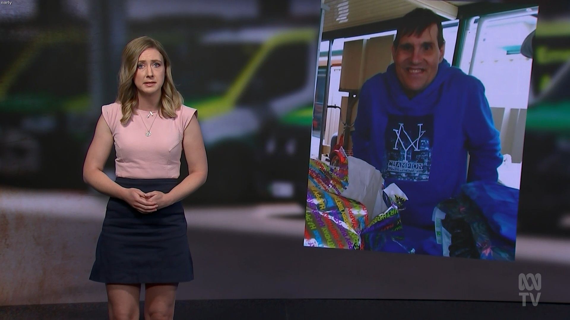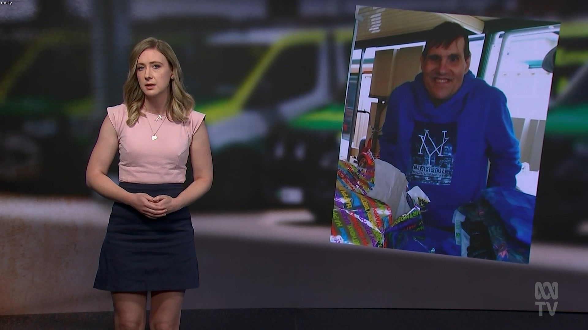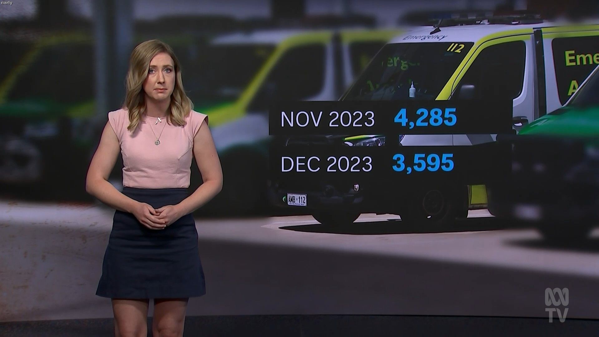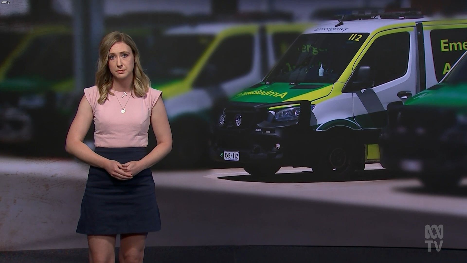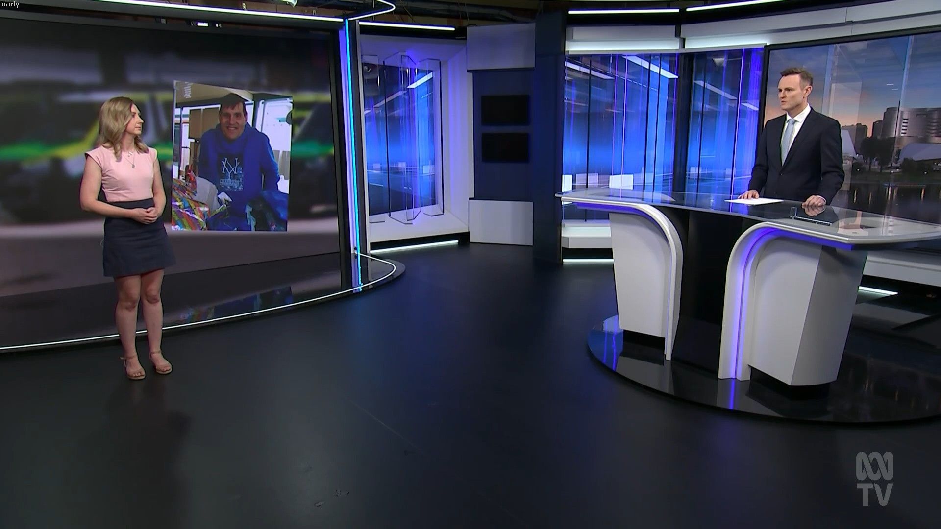 Nassim Khadem and Xanthe Gregory on ABC News NSW on Monday (15/01). Black, sleeveless, sexy.