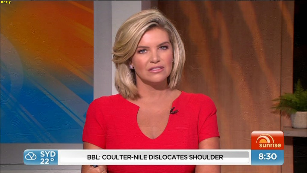beck had a fabulos red/orange dress on today, showing a touch of cleavage via the huge "cock" neck line,yummmmm