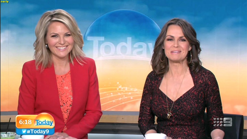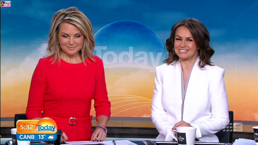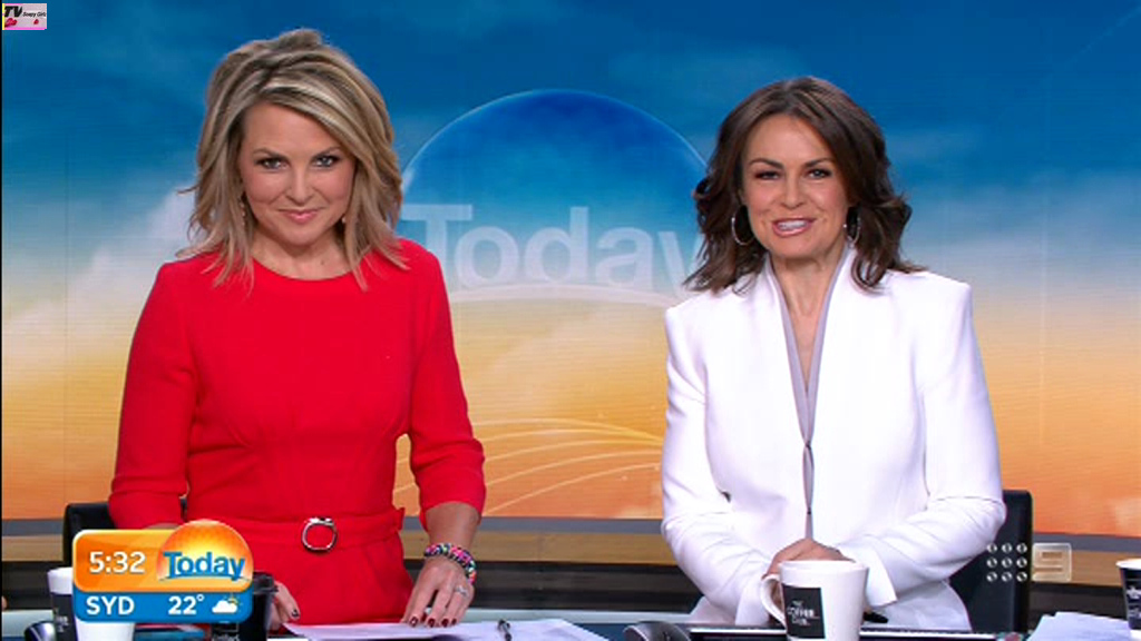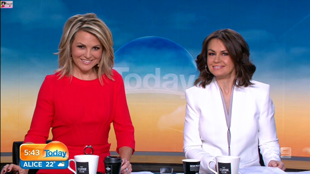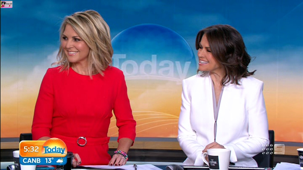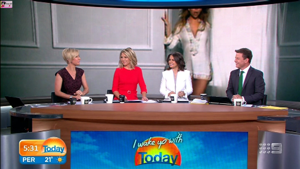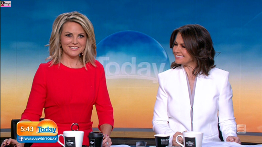 Georgie looking sexy and glamorous in red this morning. Is she wearing a bra inside