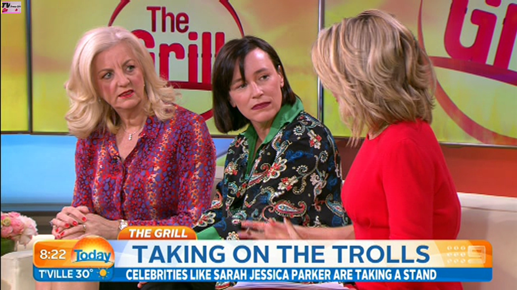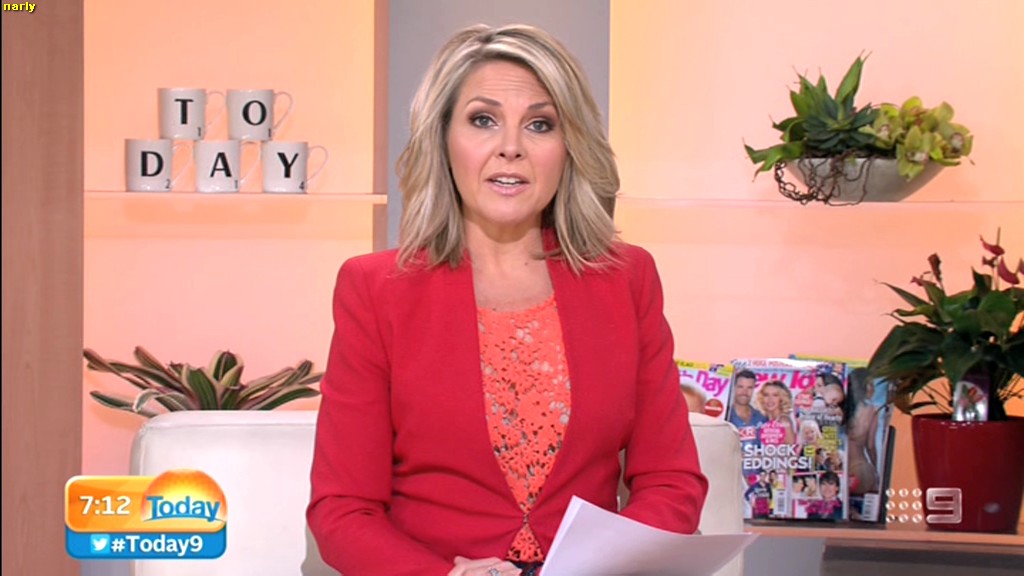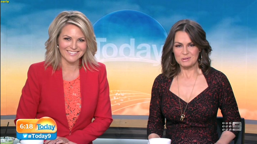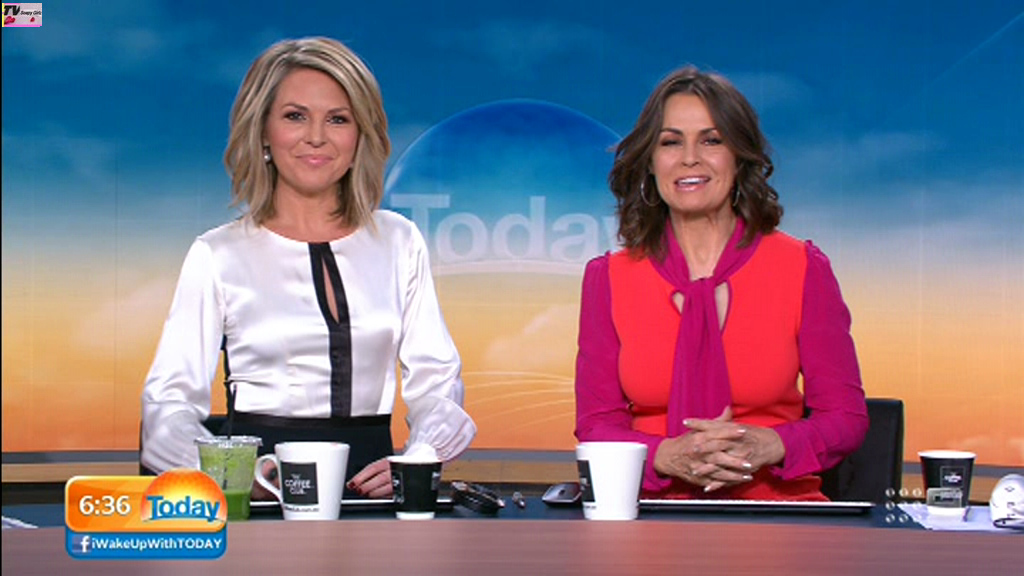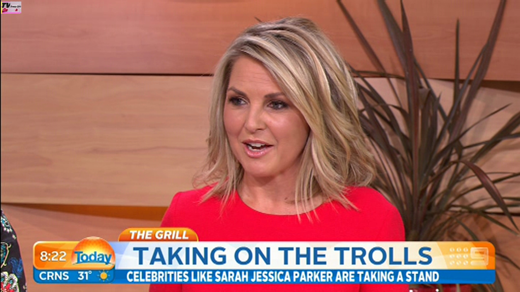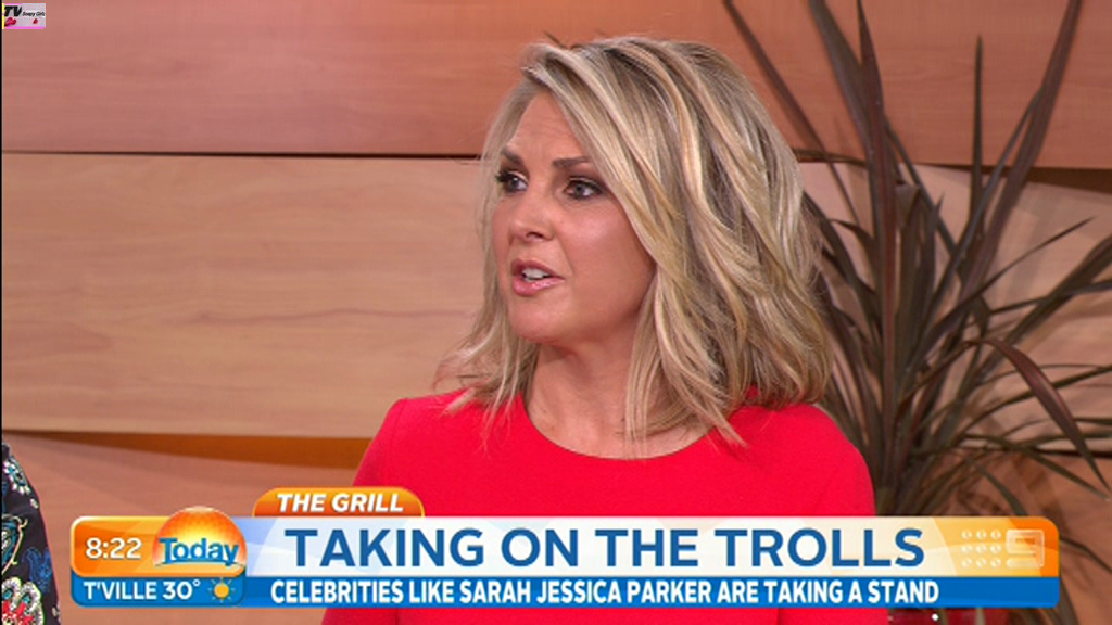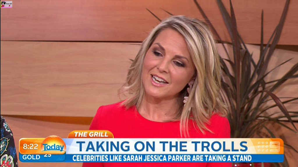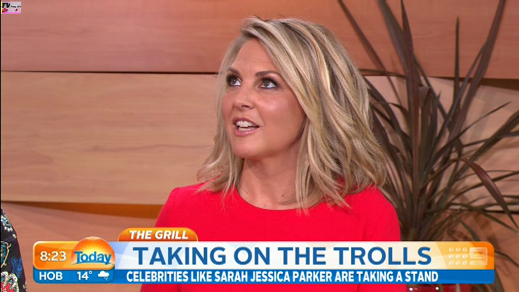 Georgie looking sexy and glamorous in red this morning. Is she wearing a bra inside