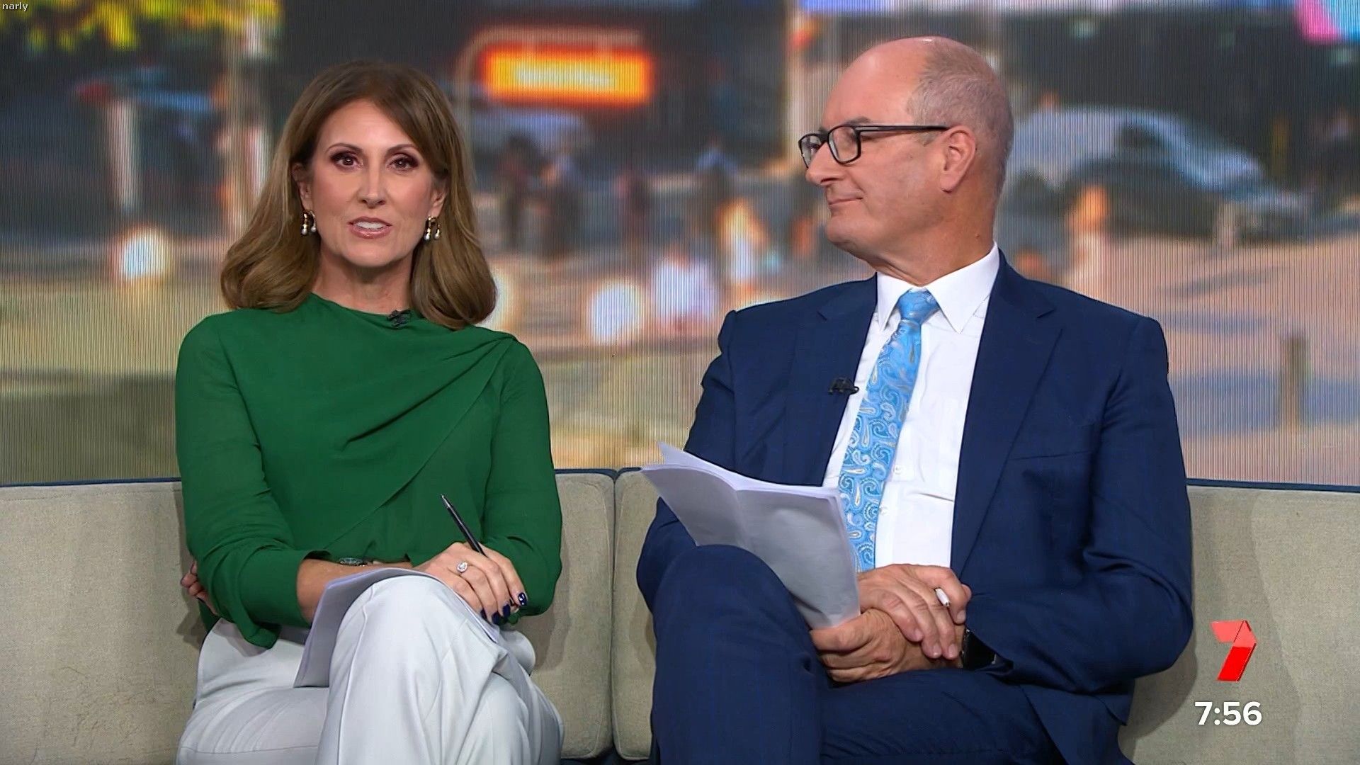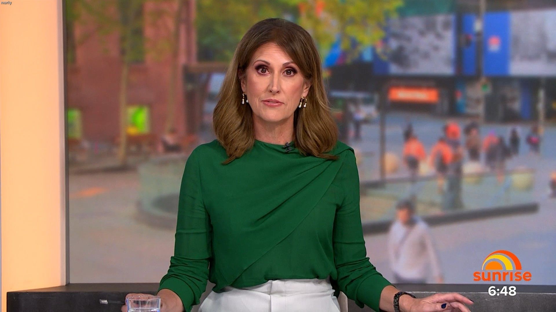 Prefer it when Nat wears a belt with pants that are like that it shows her waistline better. No belt looks cheap I feel