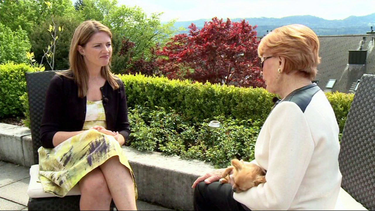 When interviewing the Russian Grandmas she lent a long way forward a few times and also conducted part of the interview on her knees.