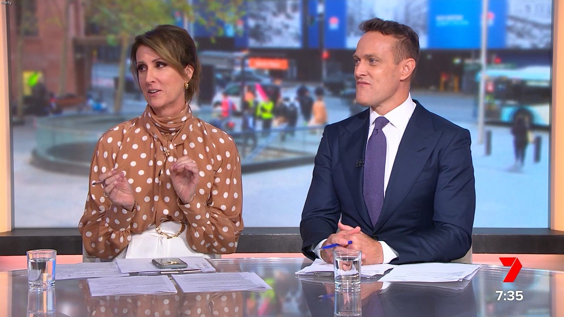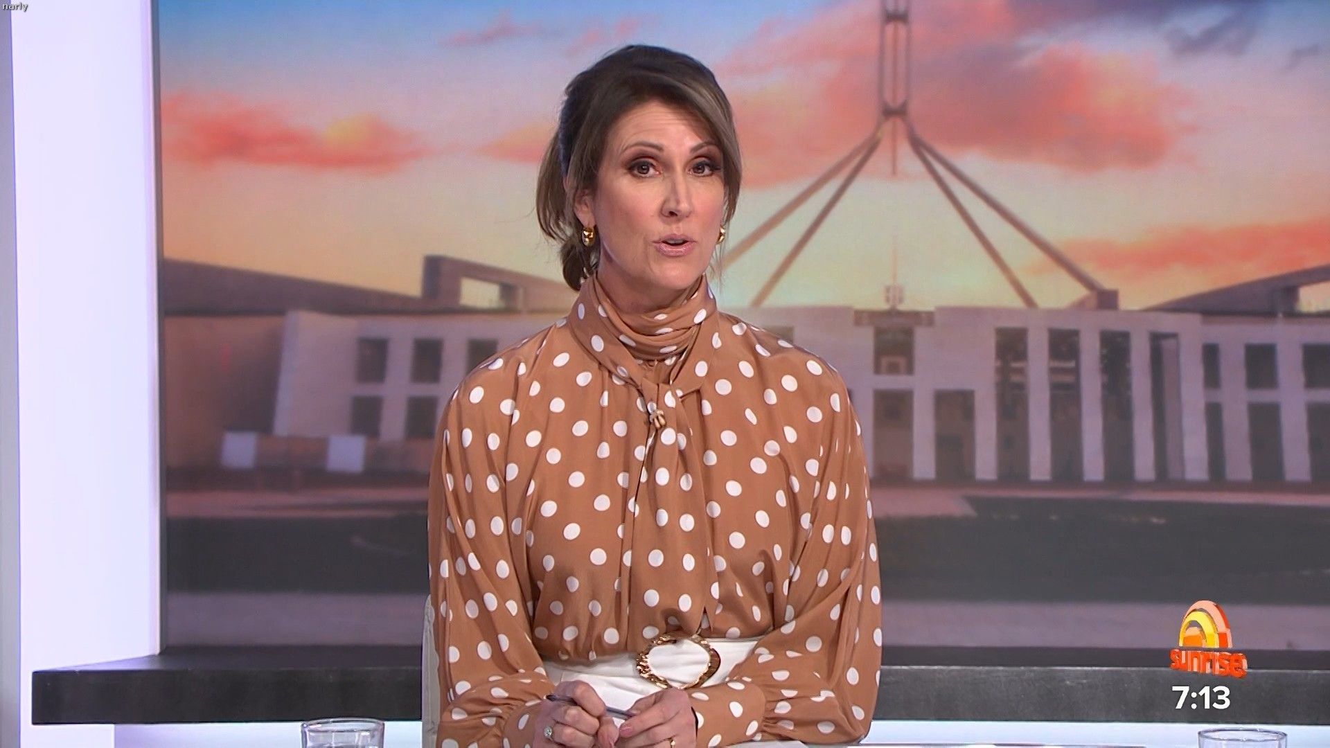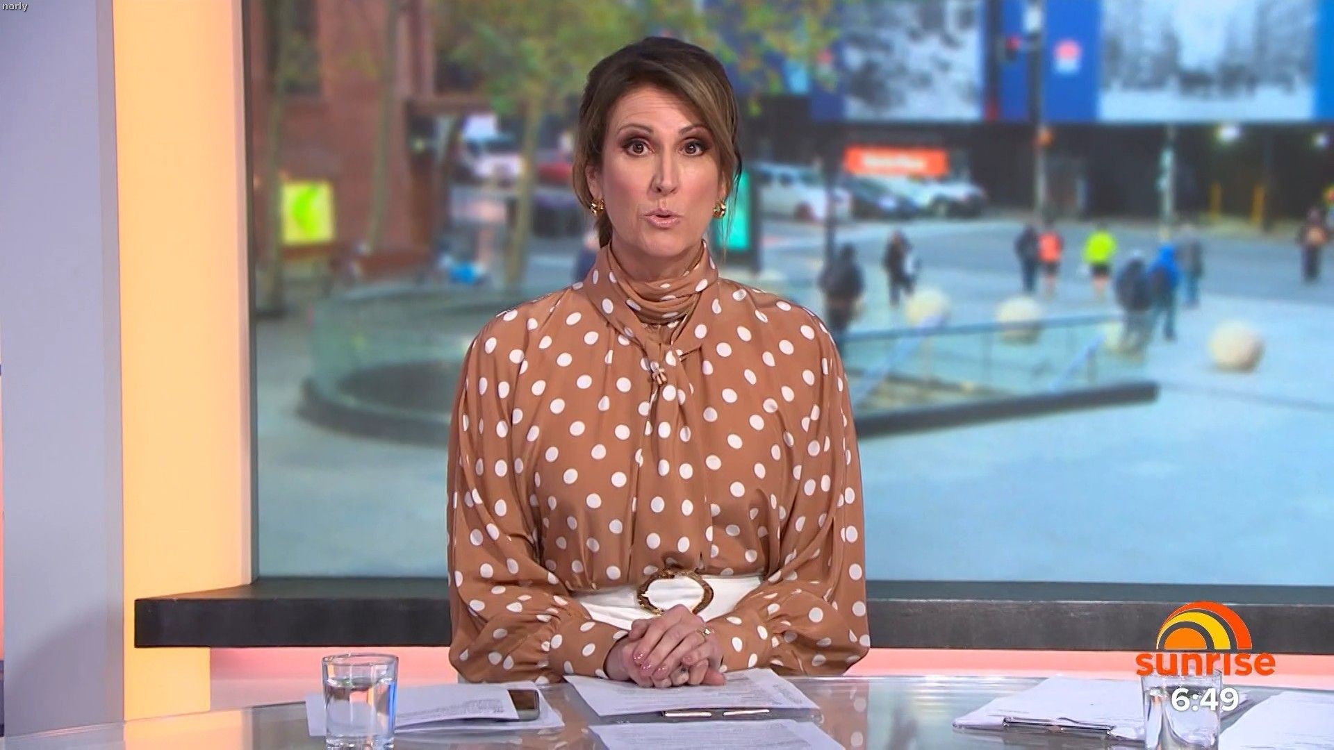 Had. A nice big slit on left hand side of her skirt today if anyone happened to get it Sorry can't remember time