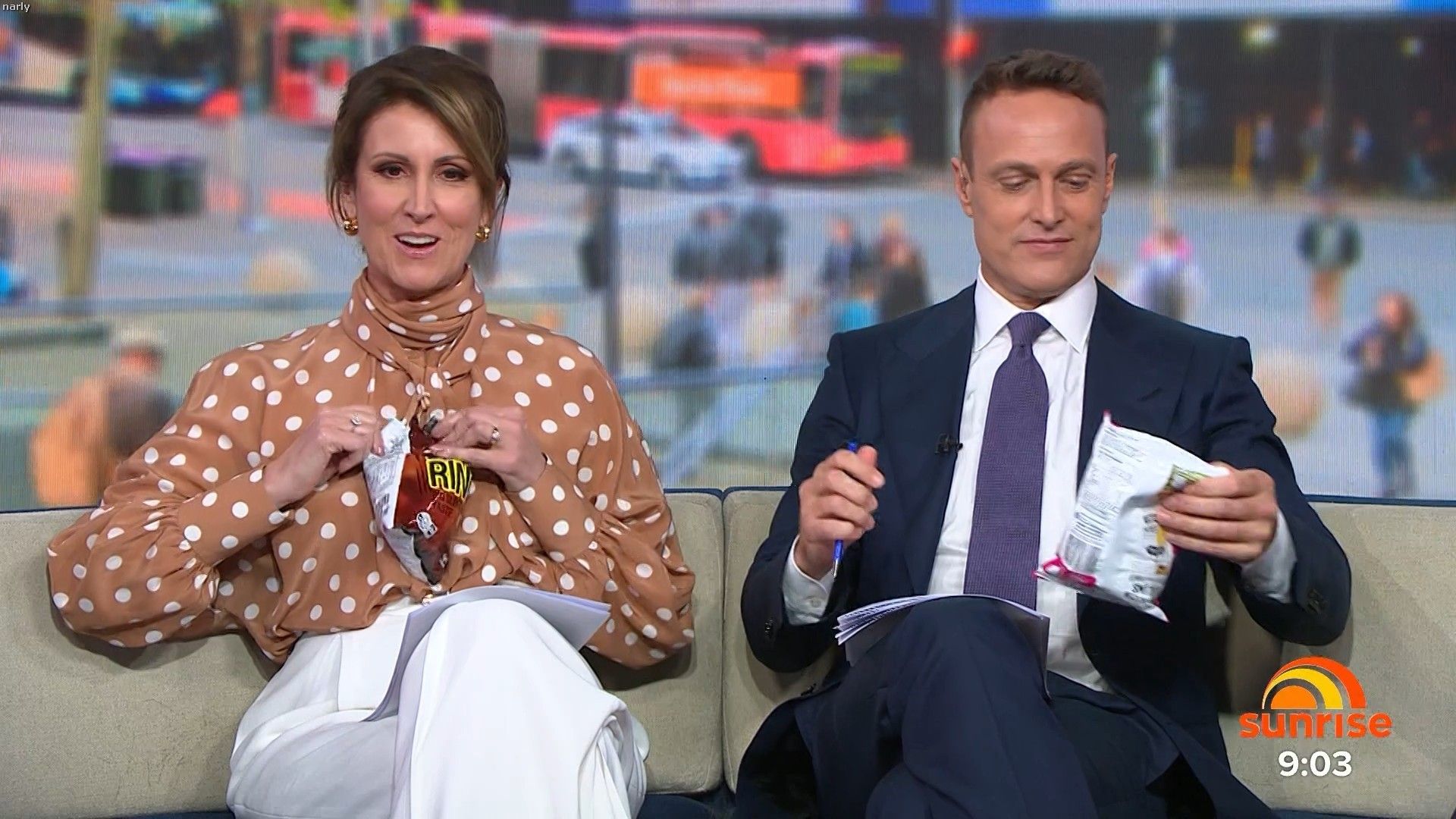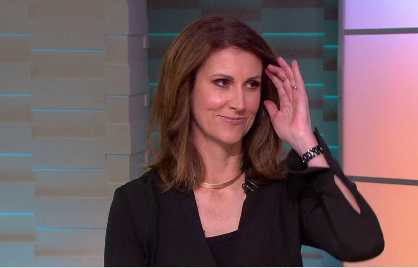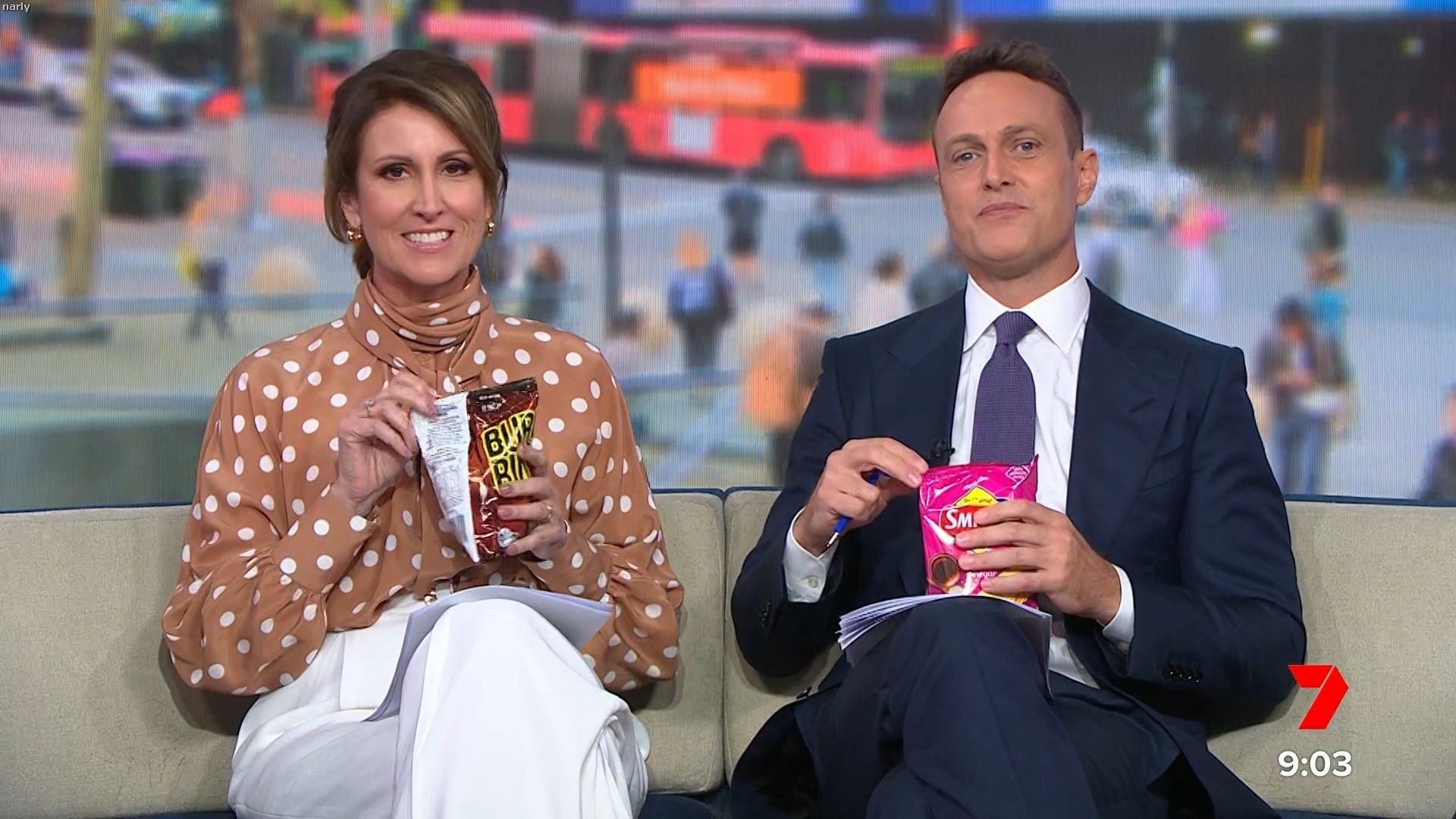 Had. A nice big slit on left hand side of her skirt today if anyone happened to get it Sorry can't remember time
