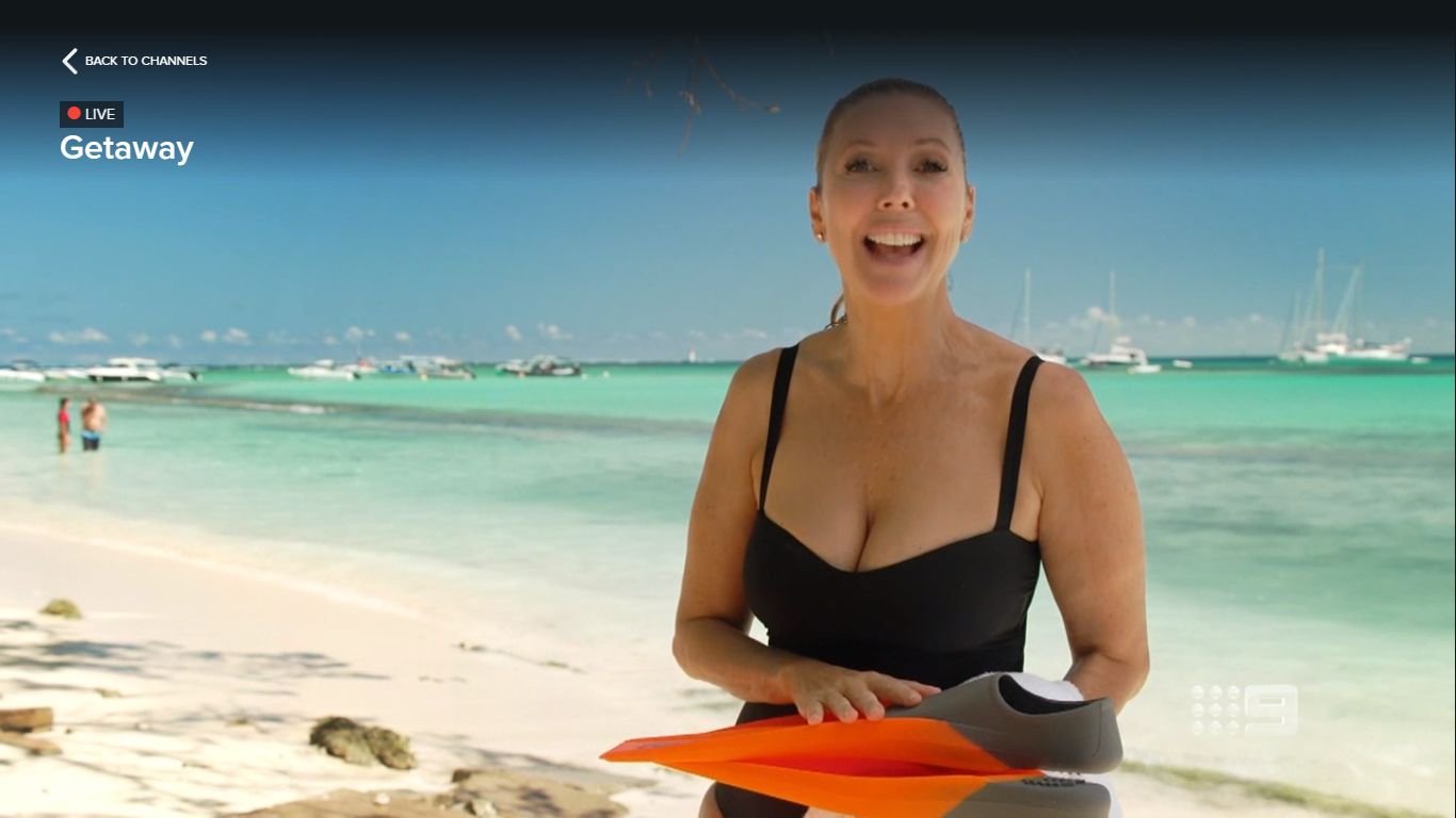 Based on my experience in the Saam McClymont thread, I presume pics of Cat in New Caledonia are already in this thread. But the episode of Getaway is on right now, and I got these shots. I can't do anything about the black fading. The black swimsuit presents her boobs really well.