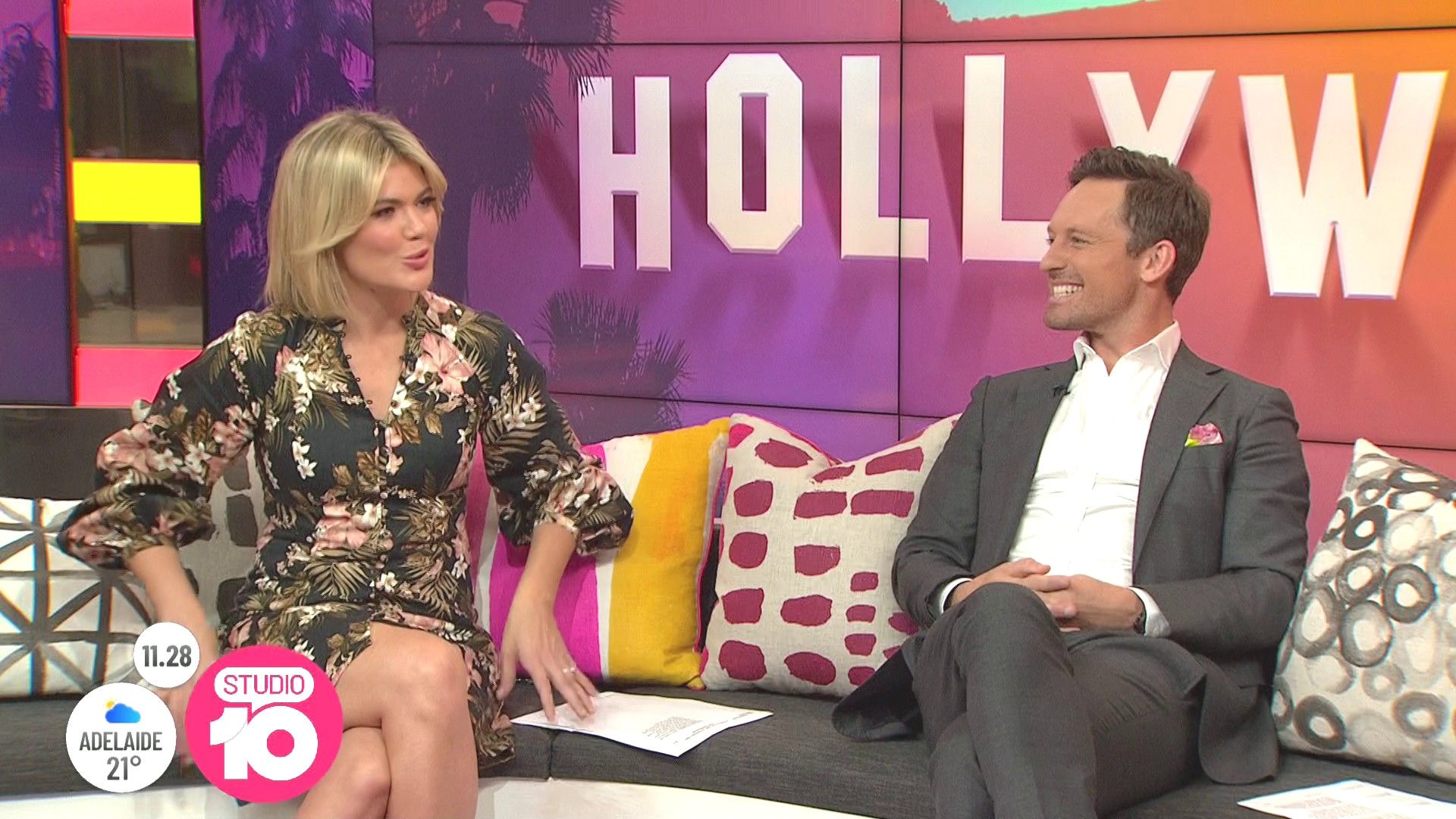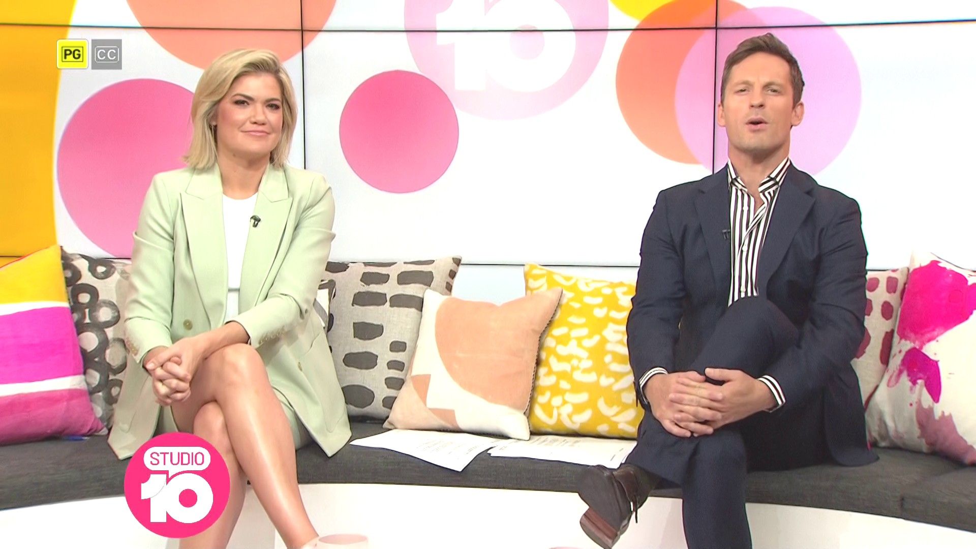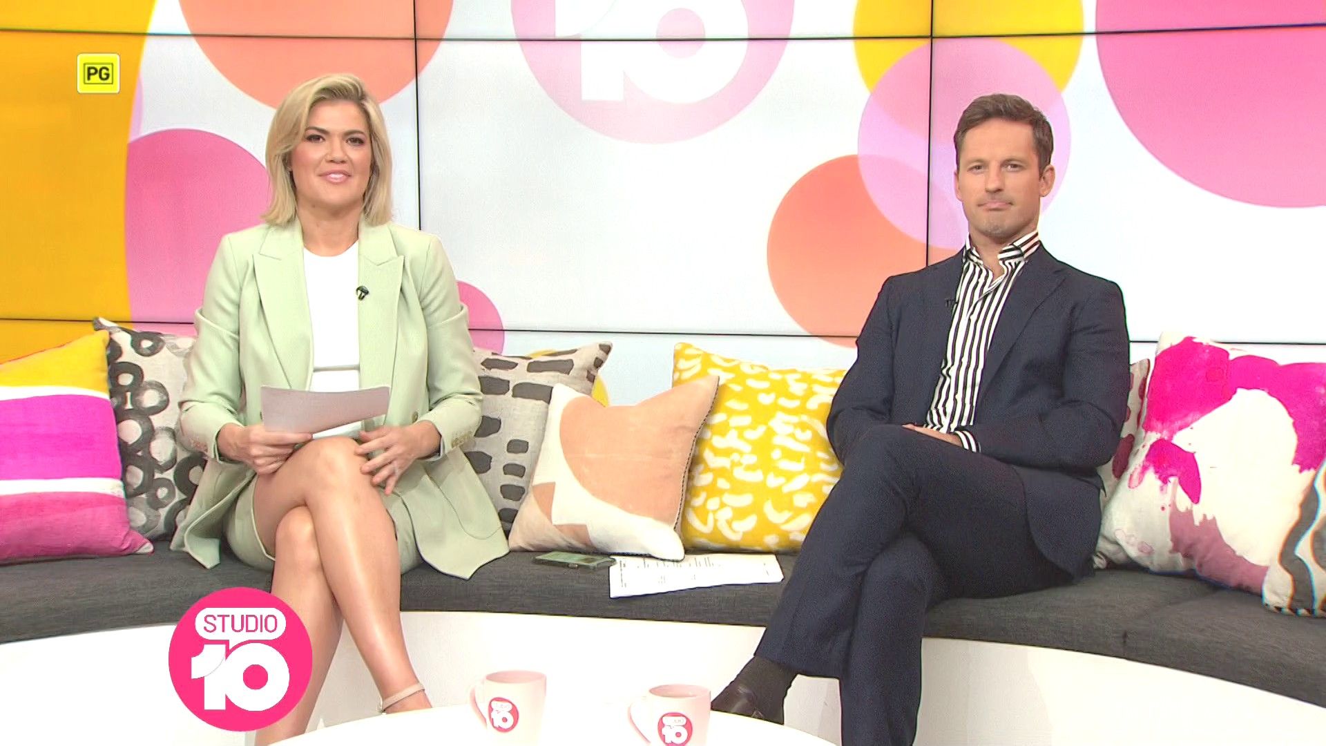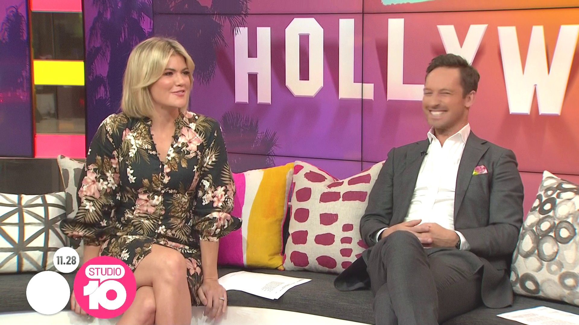 "Heads Up' approx 15 mins ago, SH leaned forward while laughing...BIG possible downblouse if anyone's capping it..