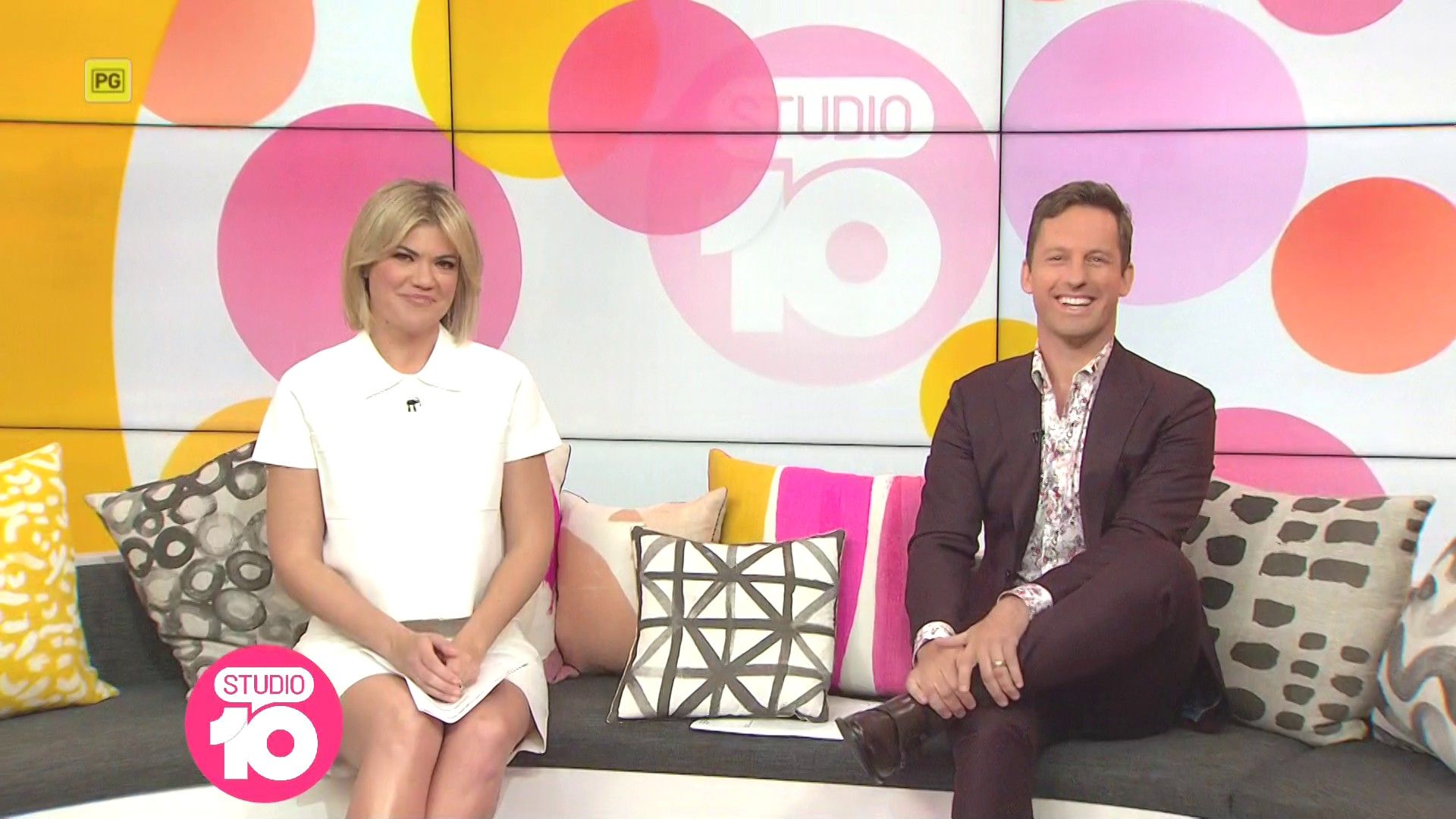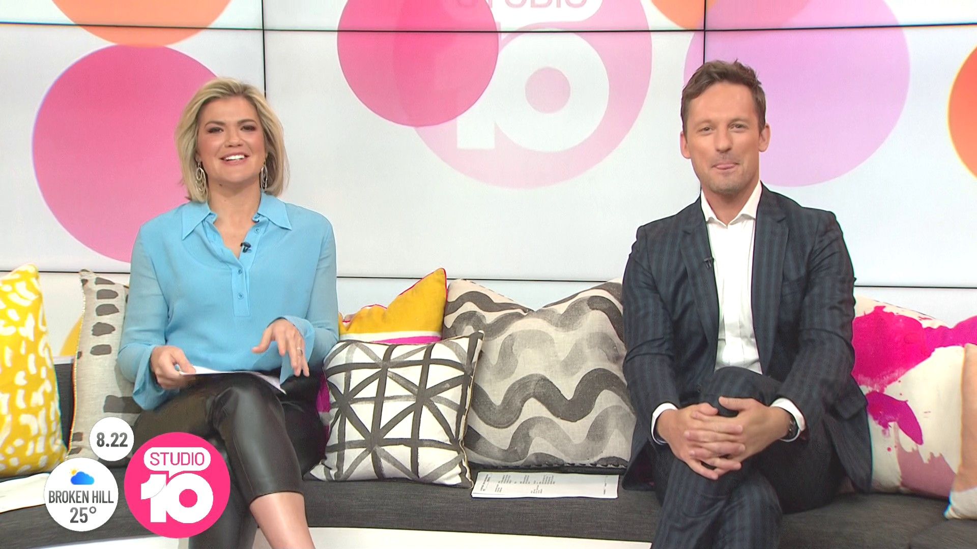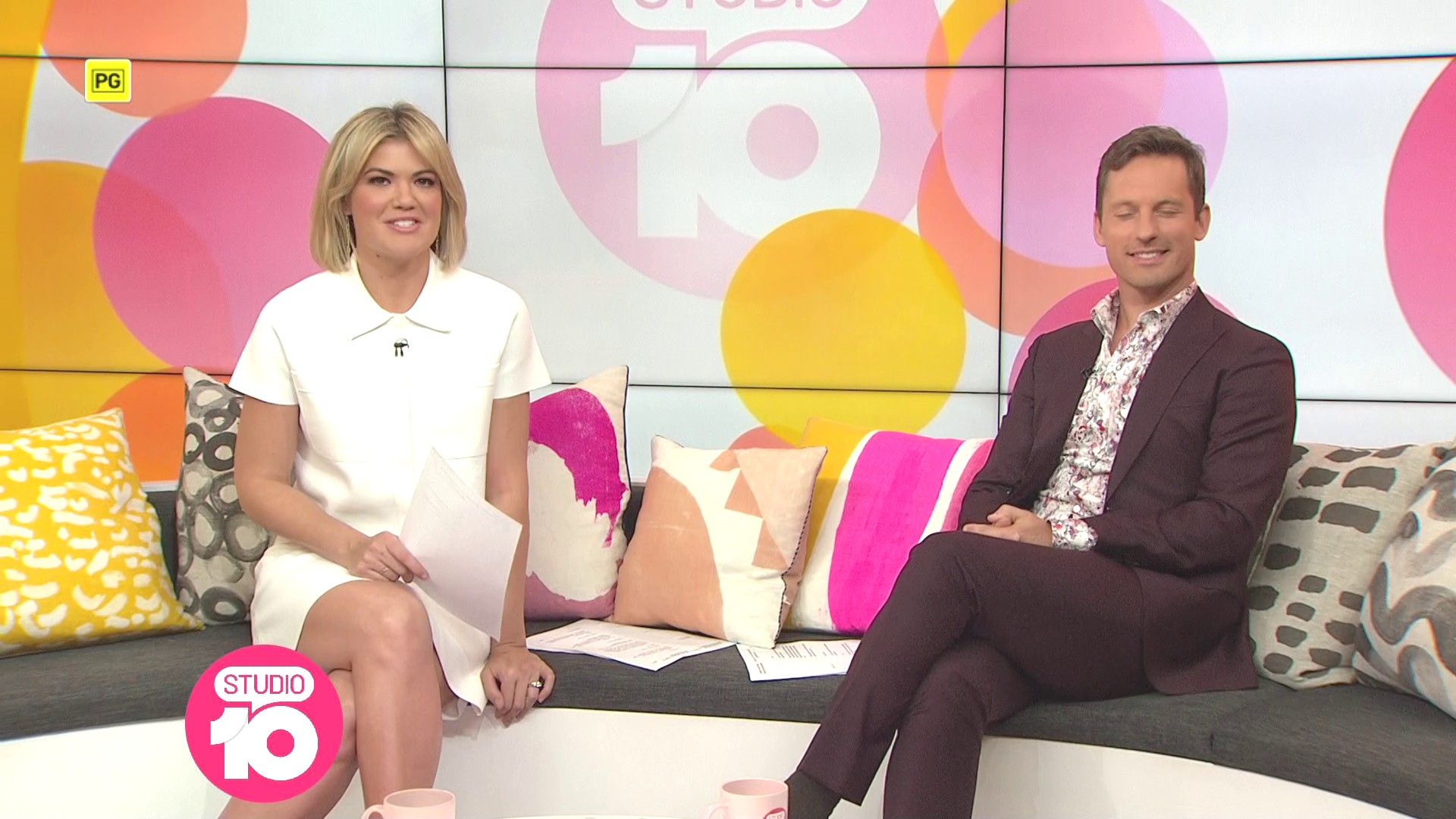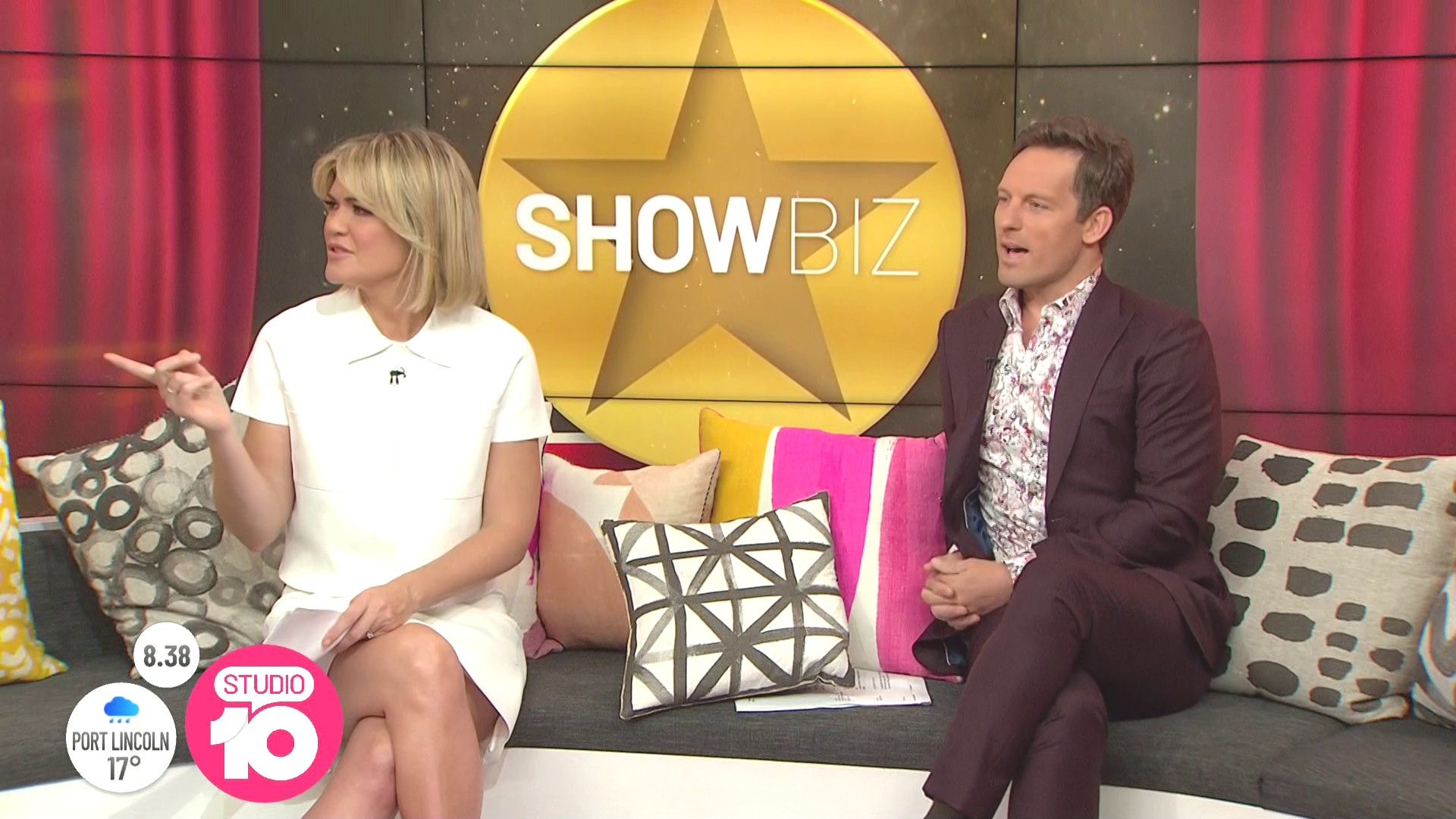 "Heads Up' approx 15 mins ago, SH leaned forward while laughing...BIG possible downblouse if anyone's capping it..