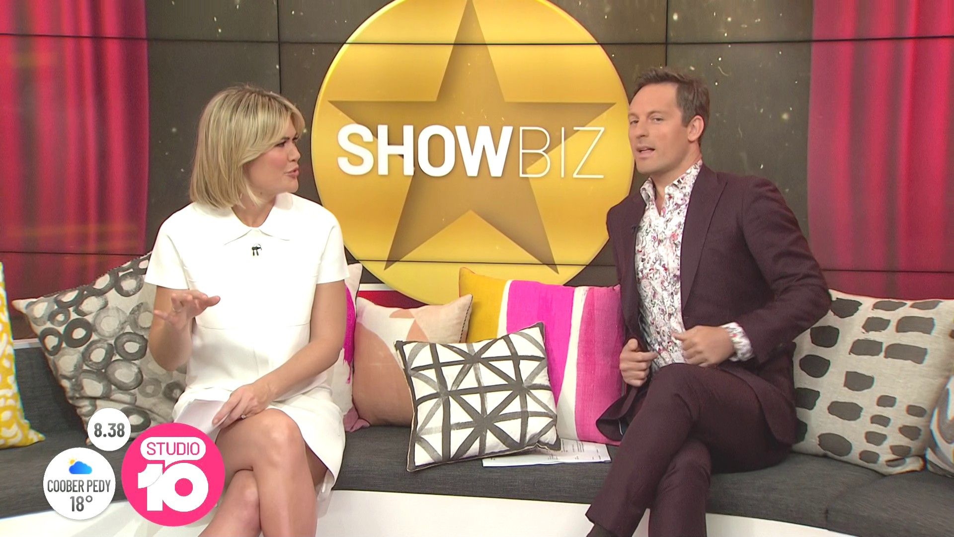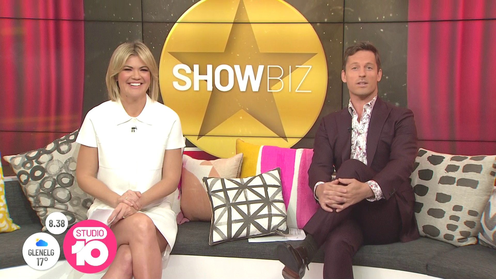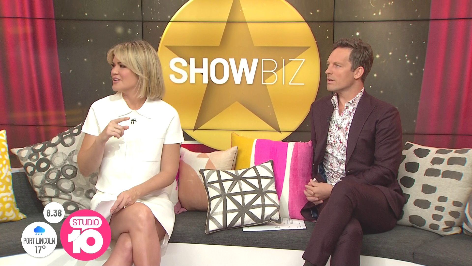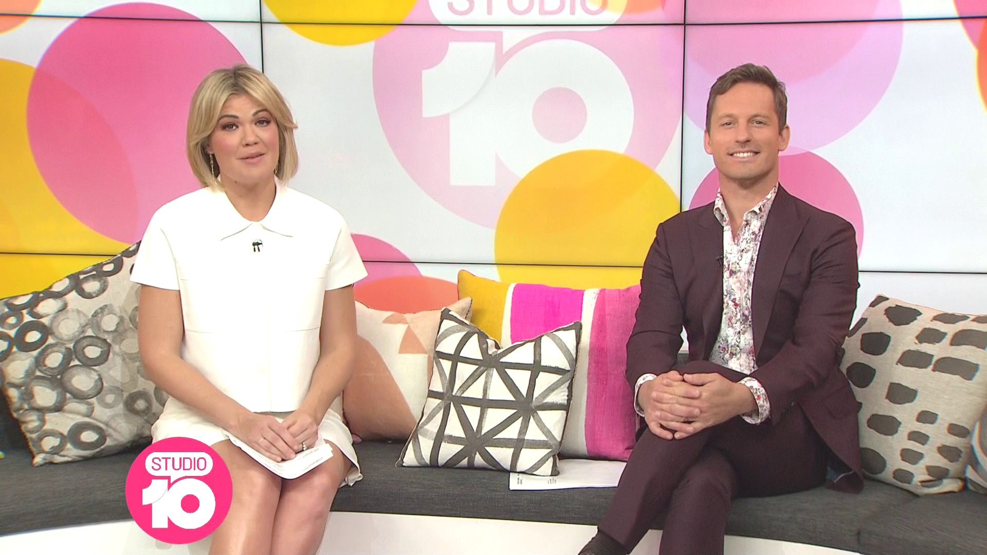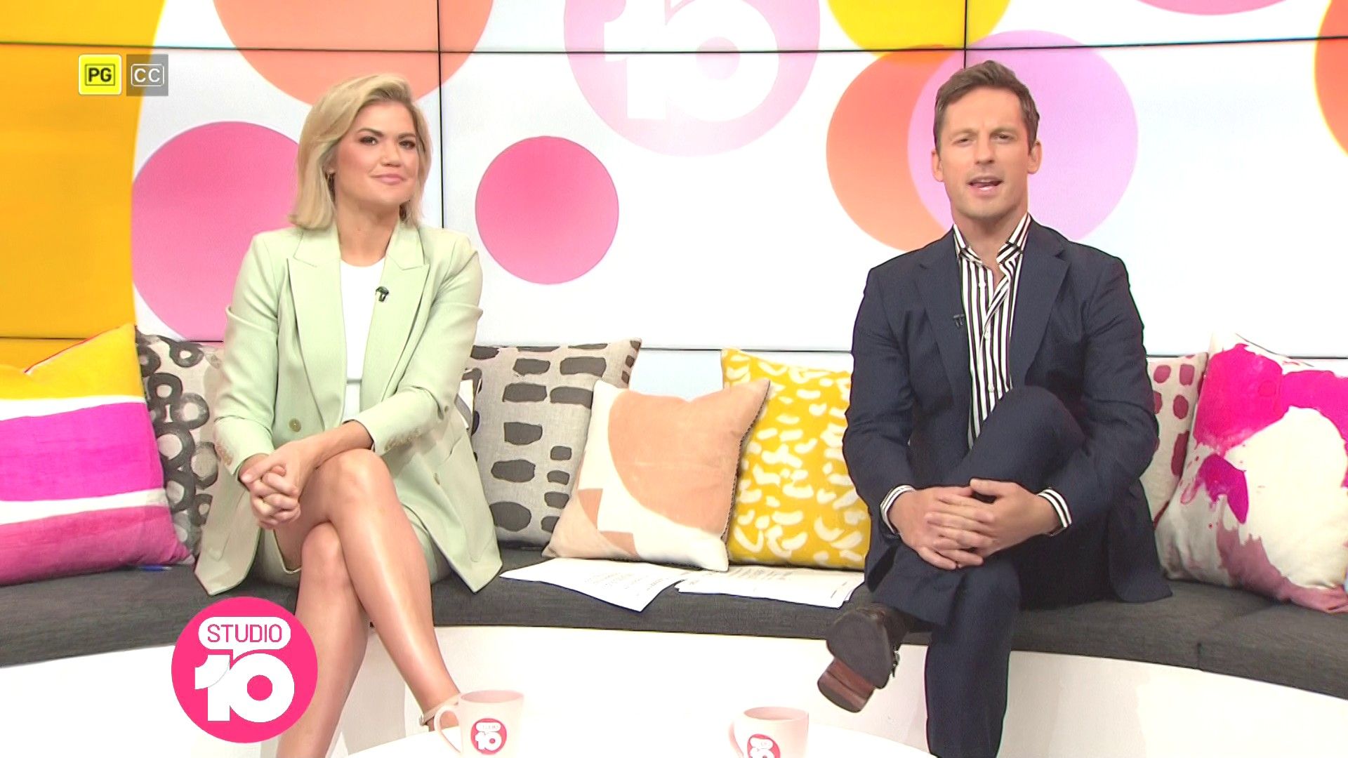 "Heads Up' approx 15 mins ago, SH leaned forward while laughing...BIG possible downblouse if anyone's capping it..