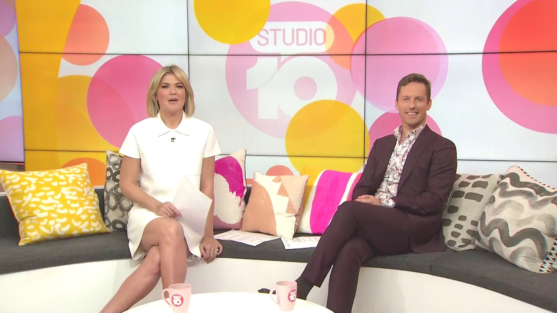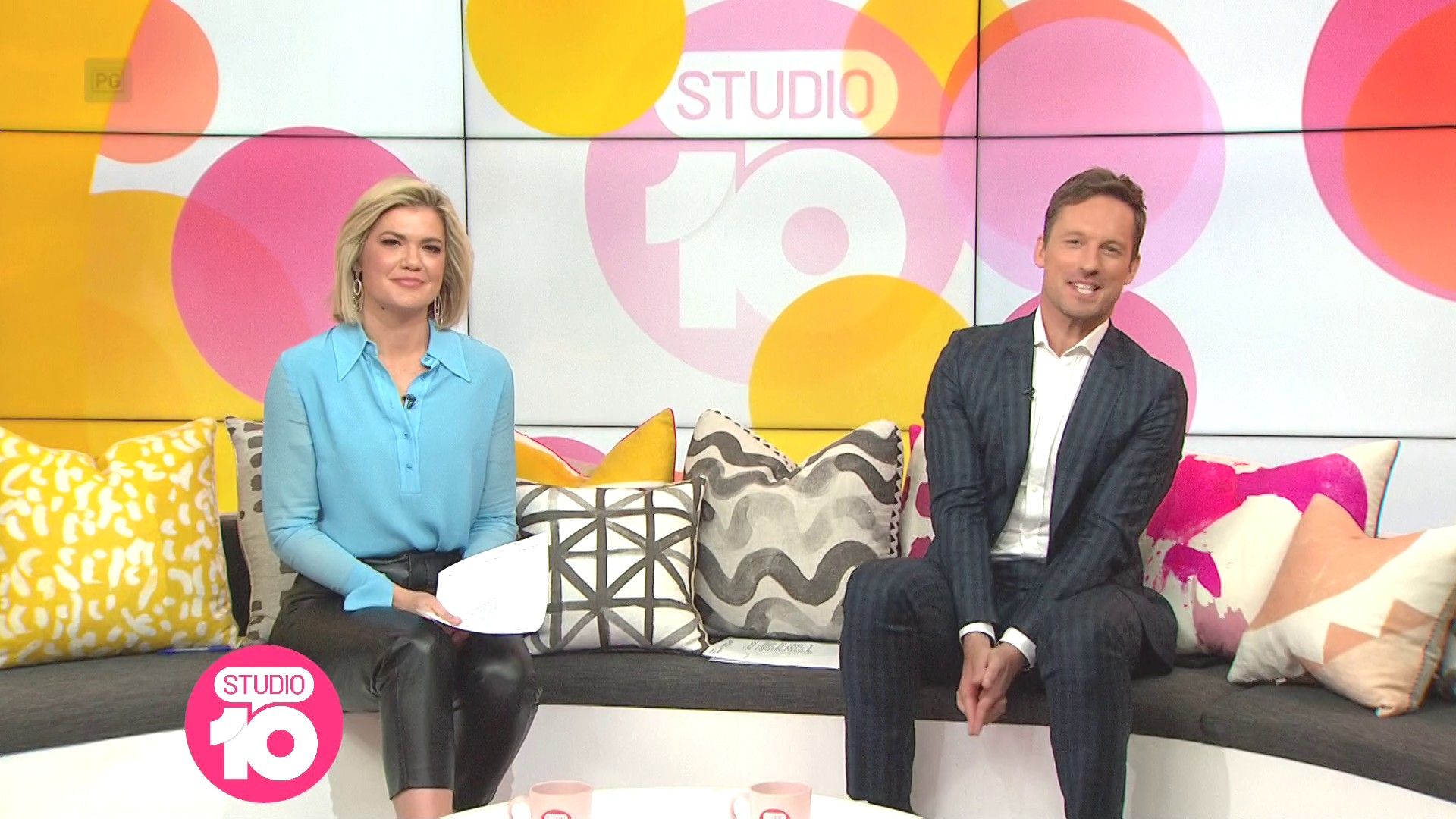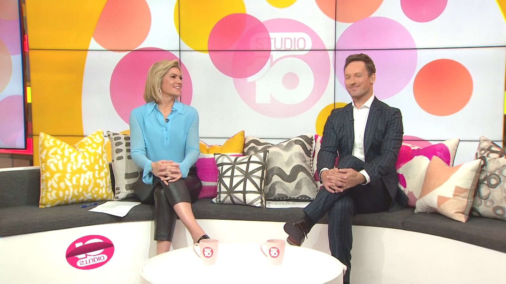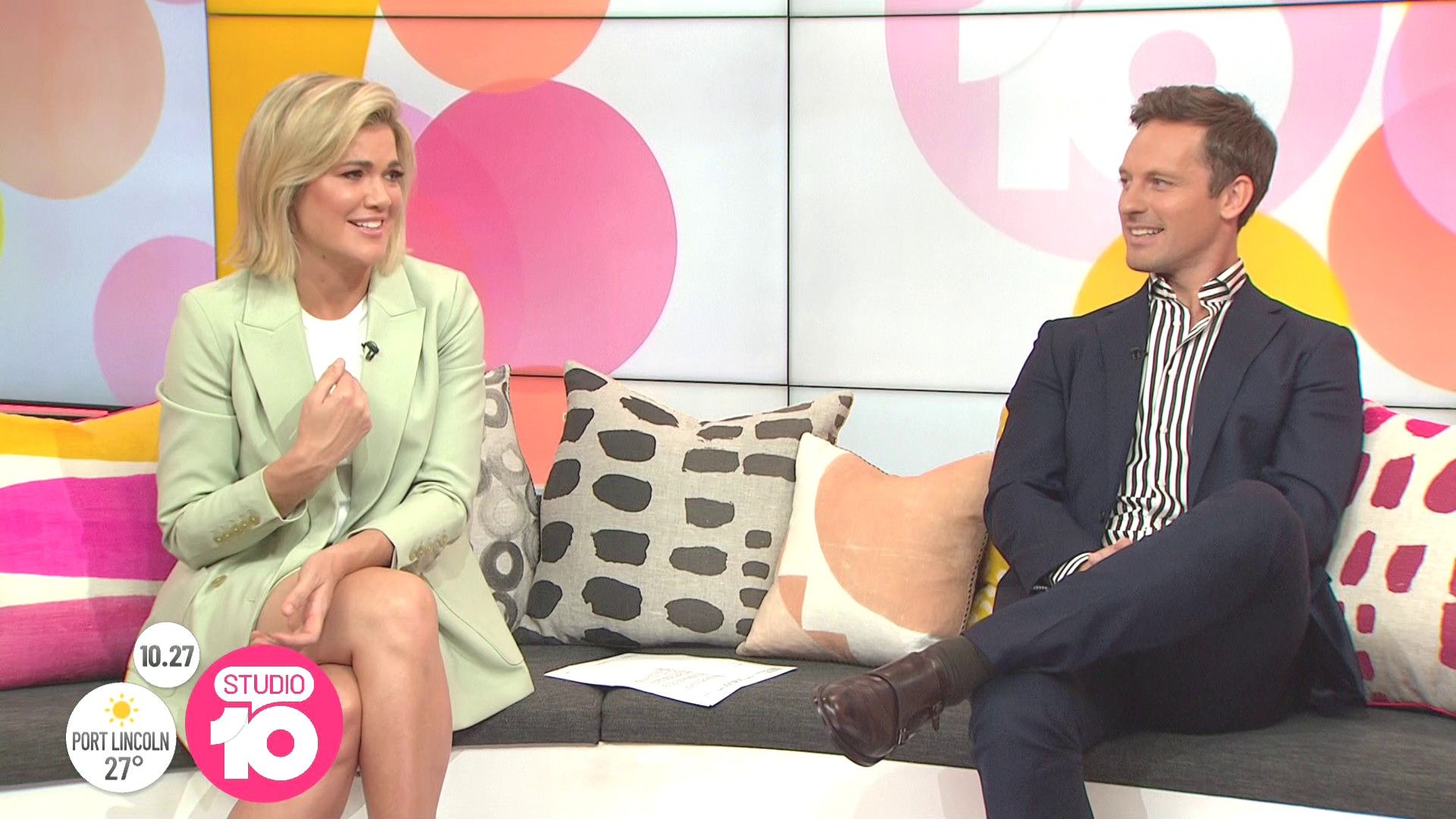 "Heads Up' approx 15 mins ago, SH leaned forward while laughing...BIG possible downblouse if anyone's capping it..