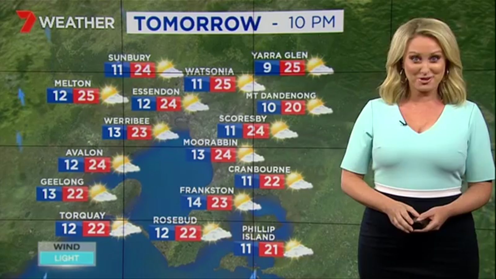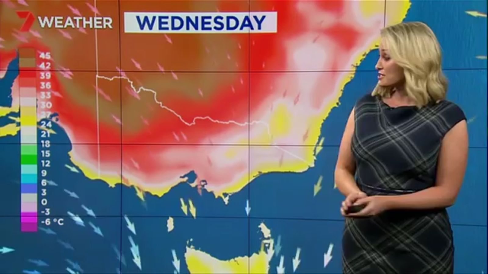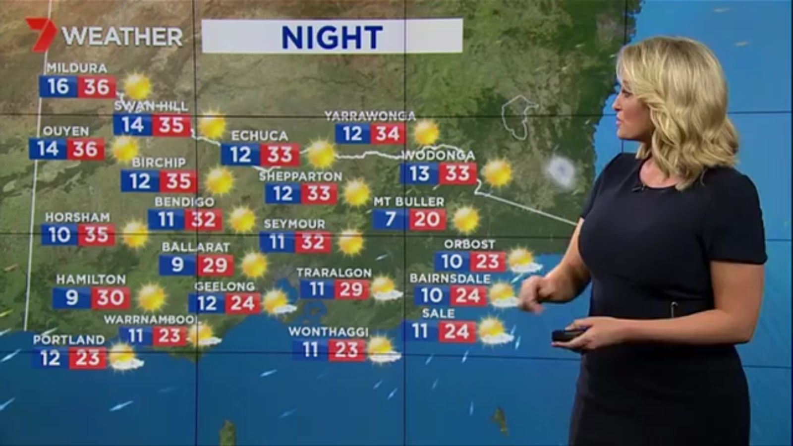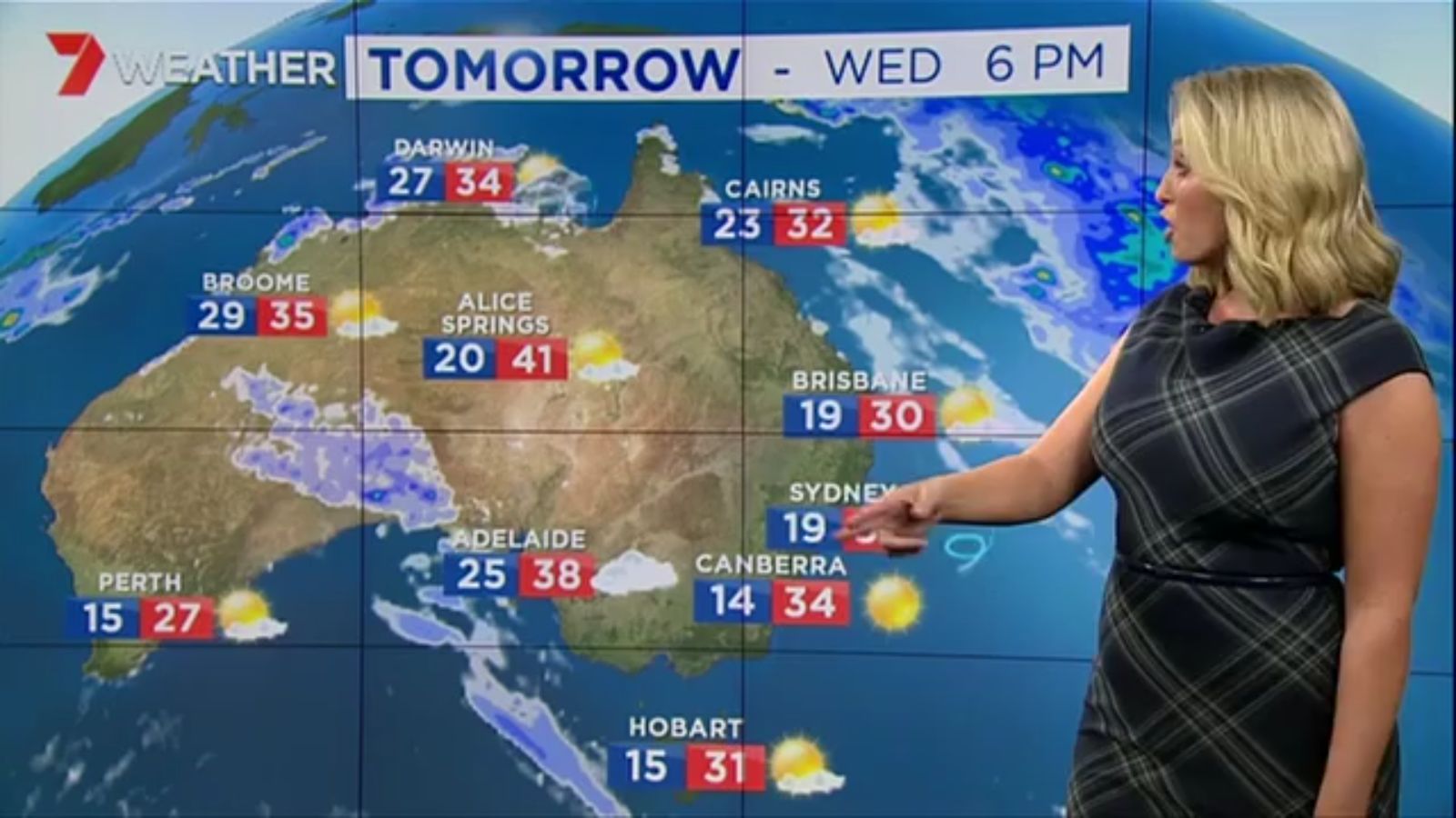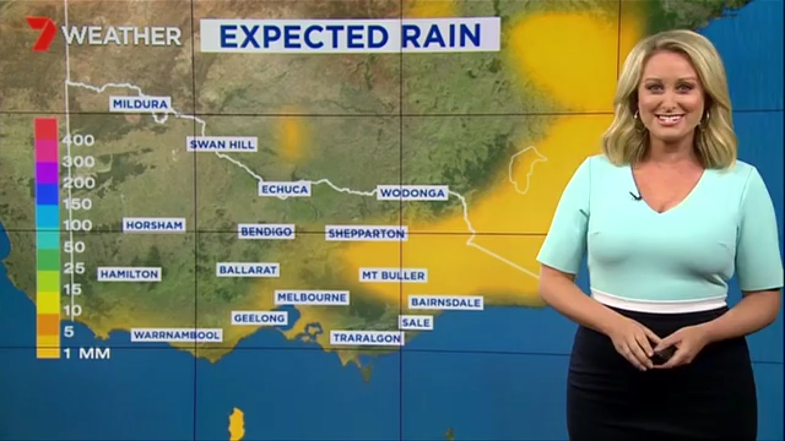 Jane has an interestingly unorthodox presentation style, always saying "we'll be warmer" "we'll be colder" and then she says, "there will be rainfall in this part of the state (points at Gippsland). If I didn't know any better I would assume she thinks the audience are a bunch of low life morons who just stare at her tits and hip wiggles. Keep up the great work boys