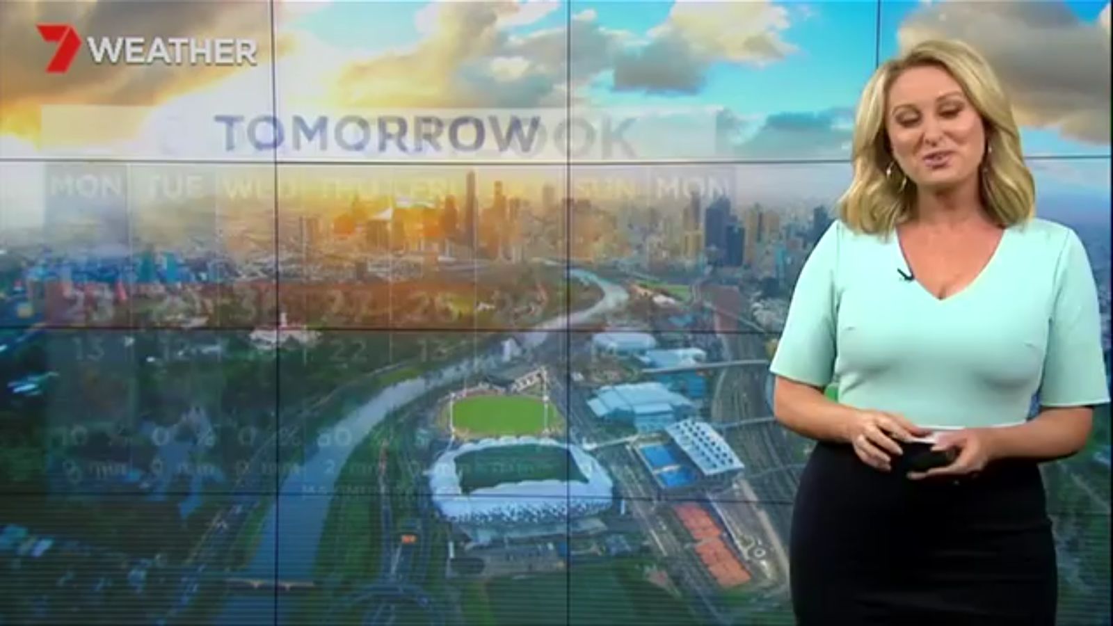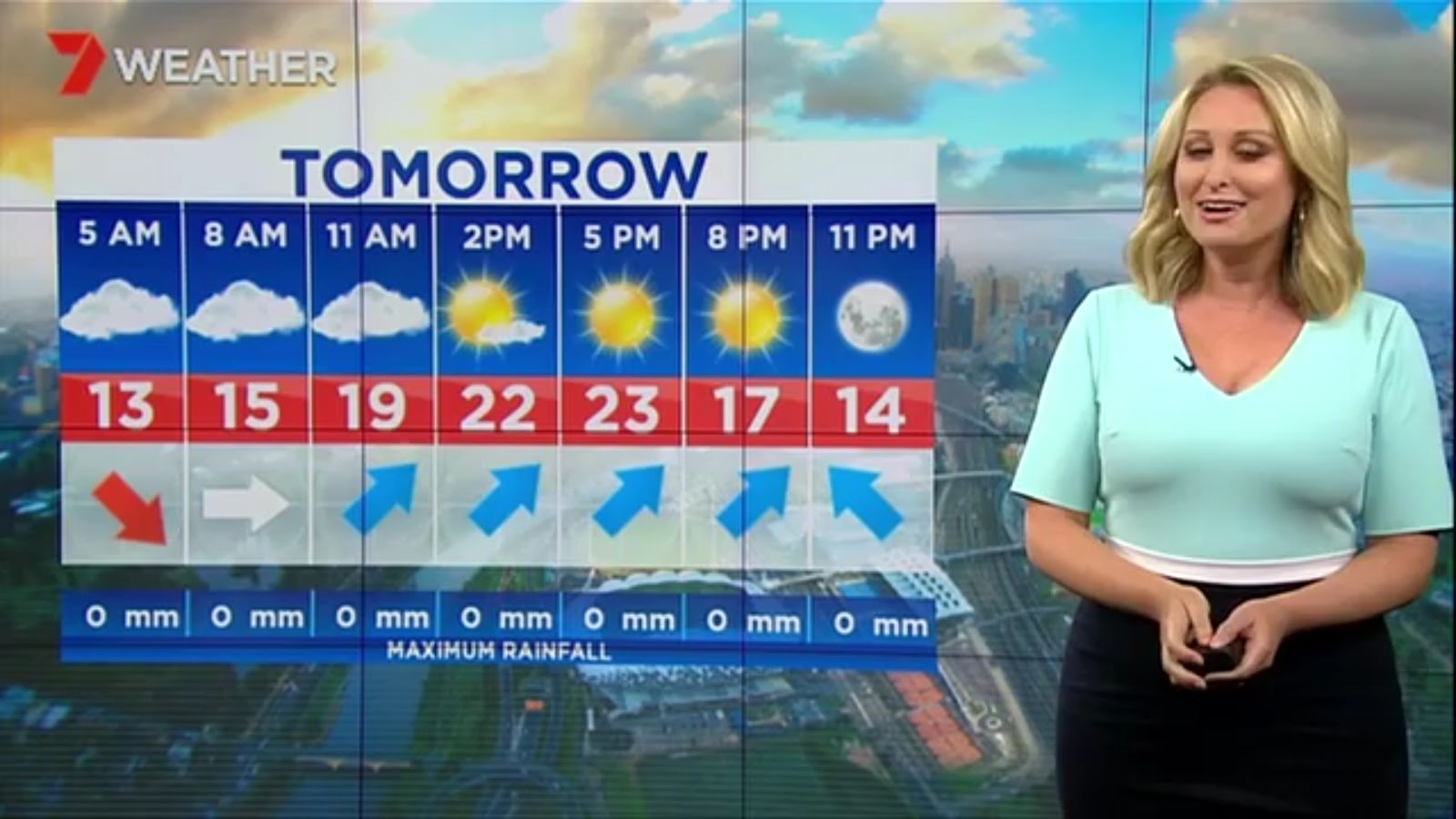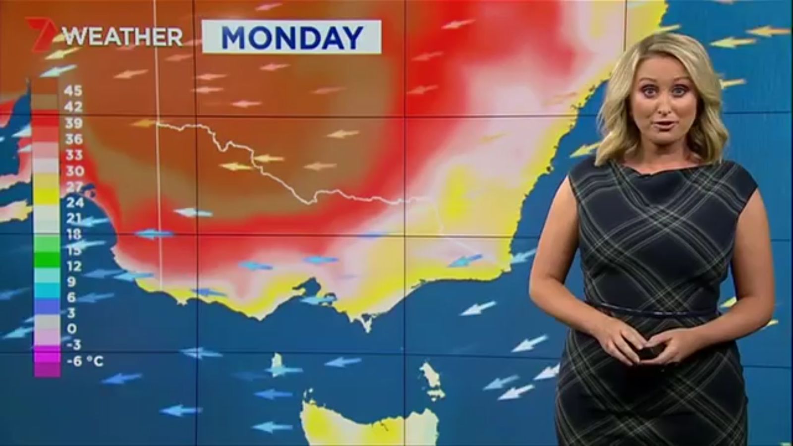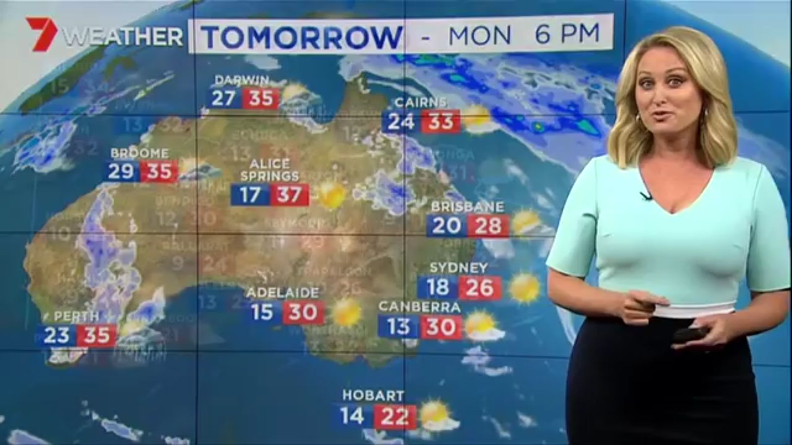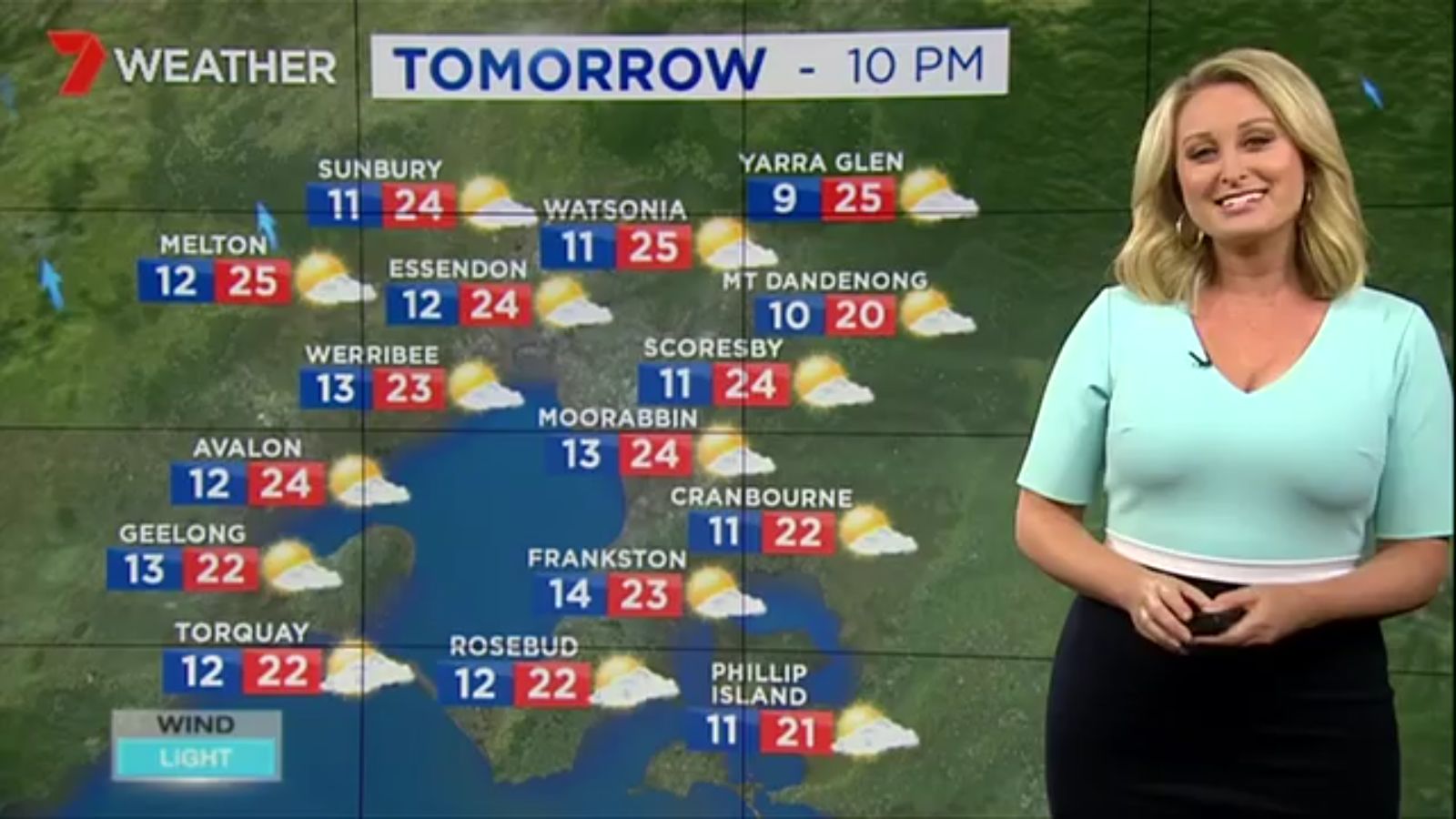 Jane has an interestingly unorthodox presentation style, always saying "we'll be warmer" "we'll be colder" and then she says, "there will be rainfall in this part of the state (points at Gippsland). If I didn't know any better I would assume she thinks the audience are a bunch of low life morons who just stare at her tits and hip wiggles. Keep up the great work boys