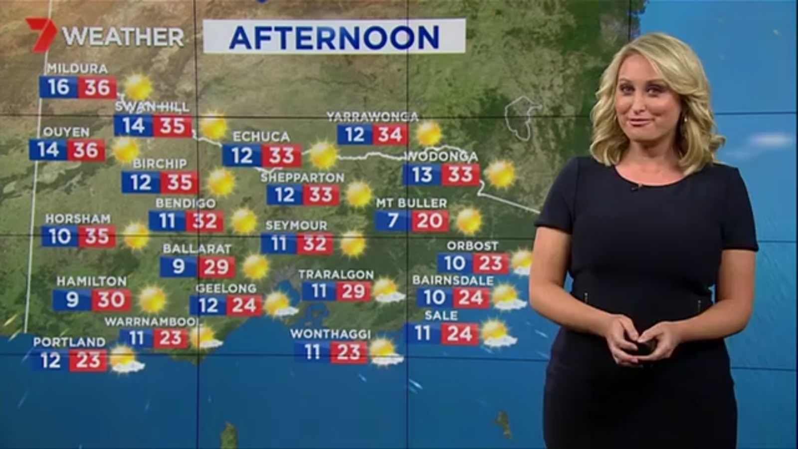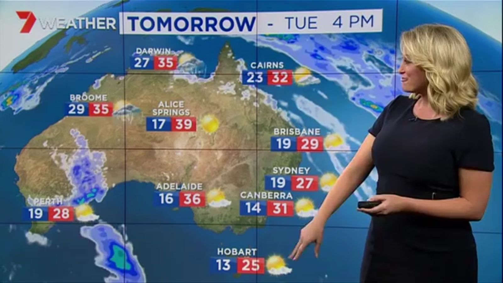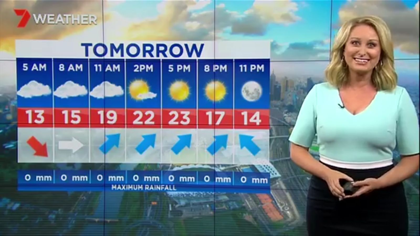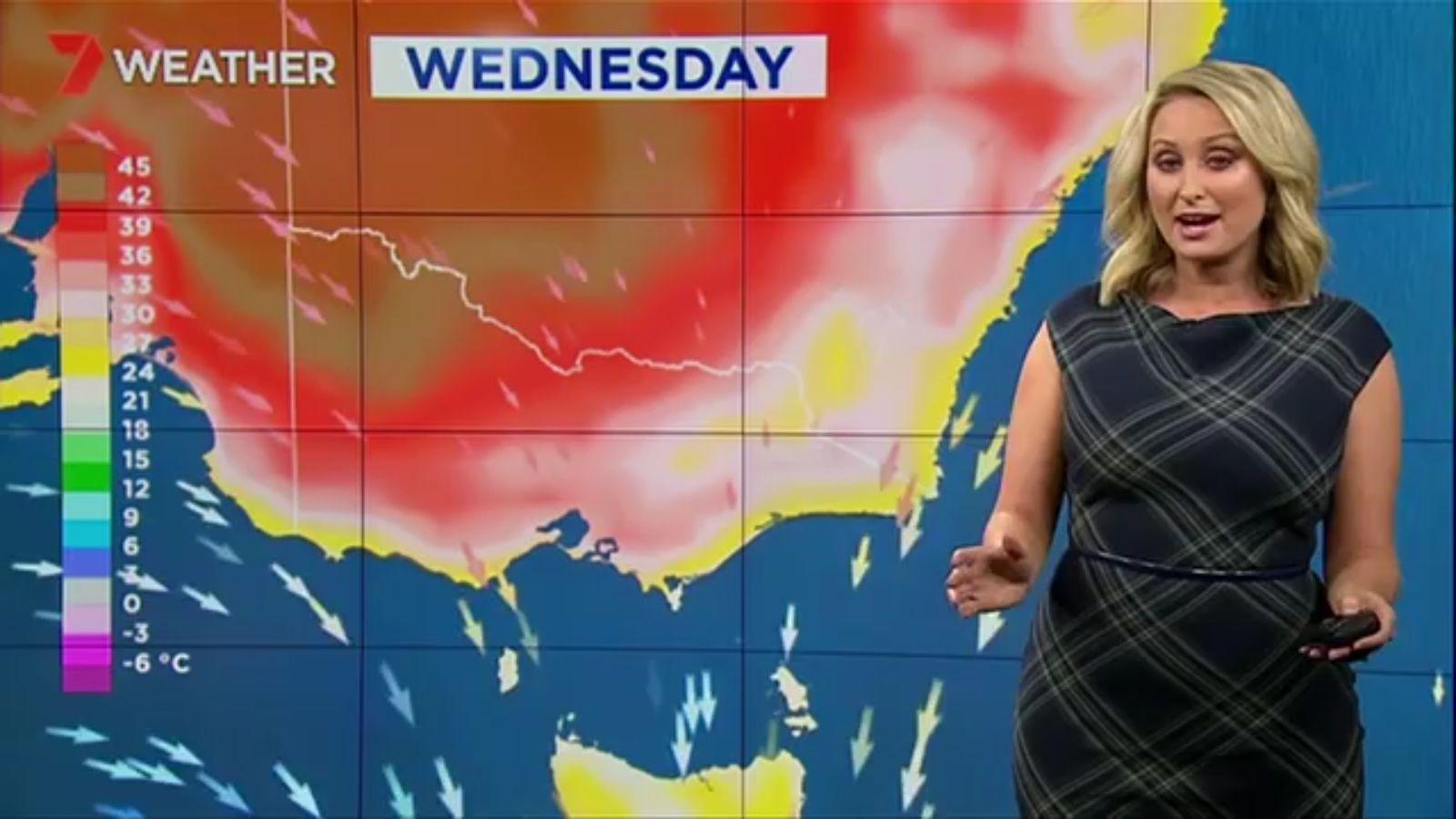 Jane has an interestingly unorthodox presentation style, always saying "we'll be warmer" "we'll be colder" and then she says, "there will be rainfall in this part of the state (points at Gippsland). If I didn't know any better I would assume she thinks the audience are a bunch of low life morons who just stare at her tits and hip wiggles. Keep up the great work boys