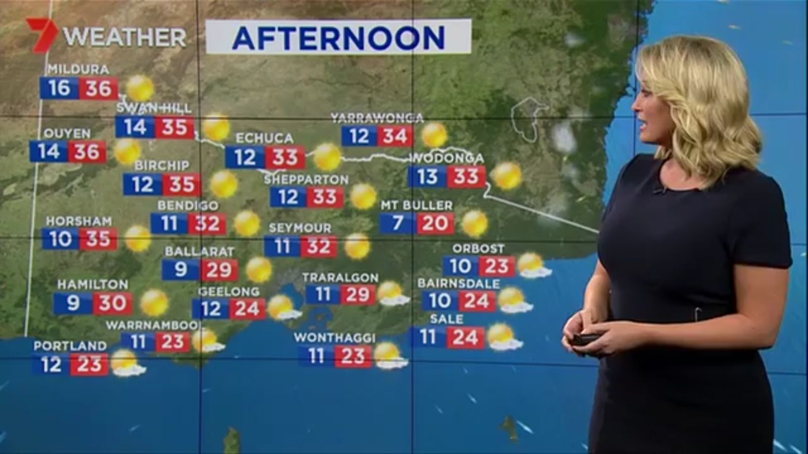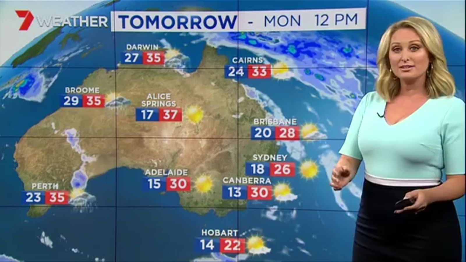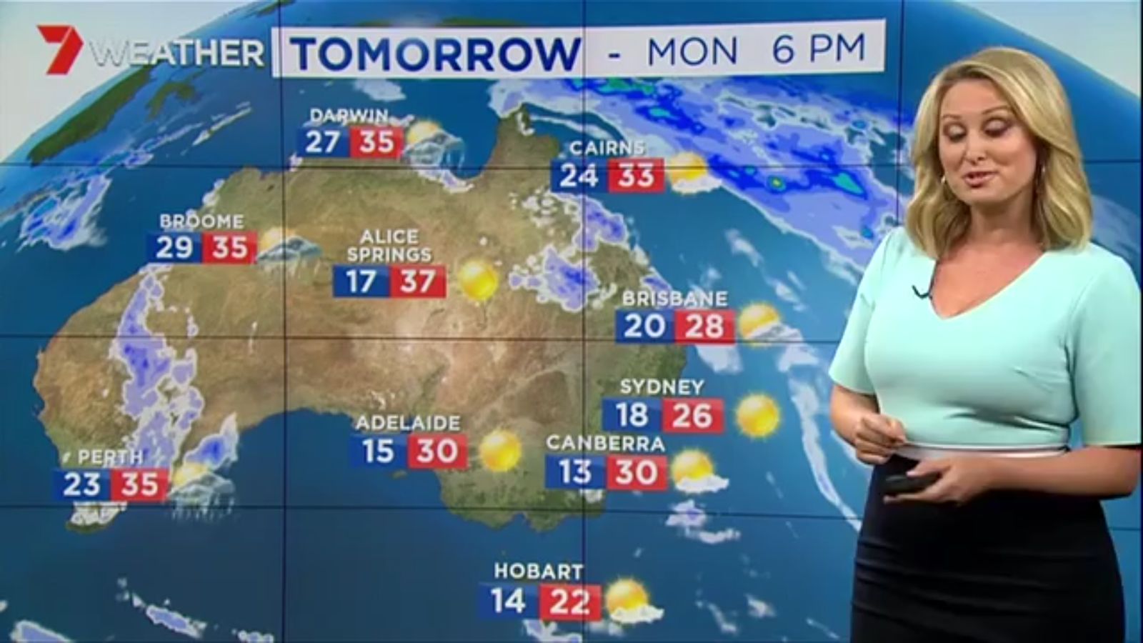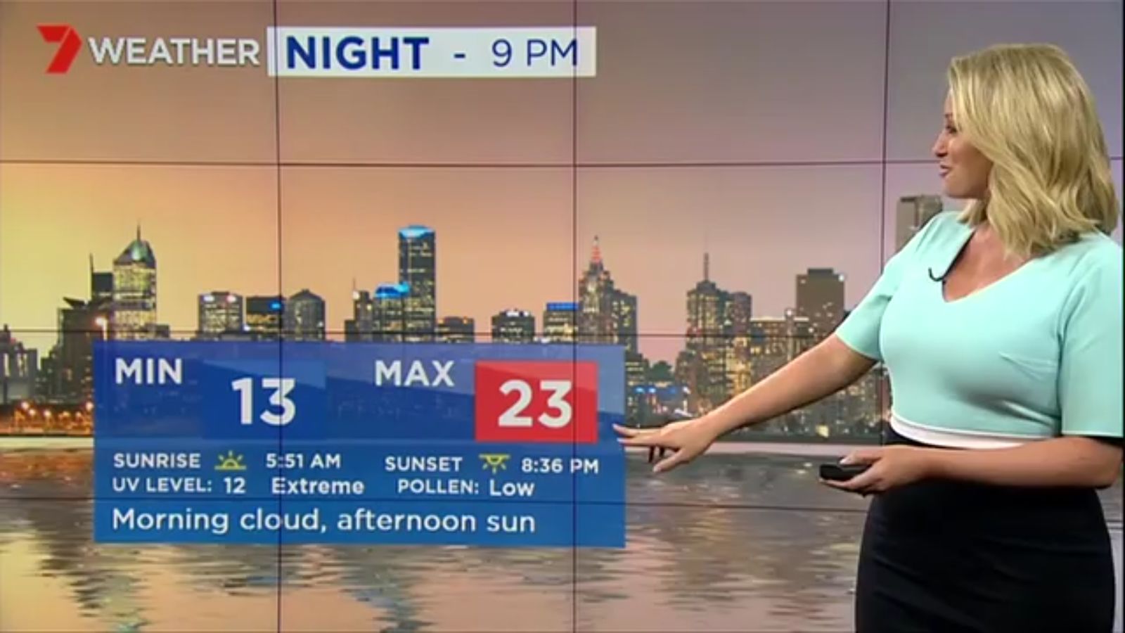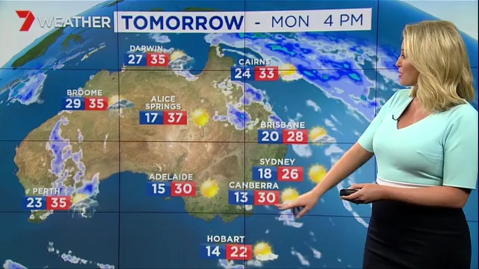 Jane has an interestingly unorthodox presentation style, always saying "we'll be warmer" "we'll be colder" and then she says, "there will be rainfall in this part of the state (points at Gippsland). If I didn't know any better I would assume she thinks the audience are a bunch of low life morons who just stare at her tits and hip wiggles. Keep up the great work boys