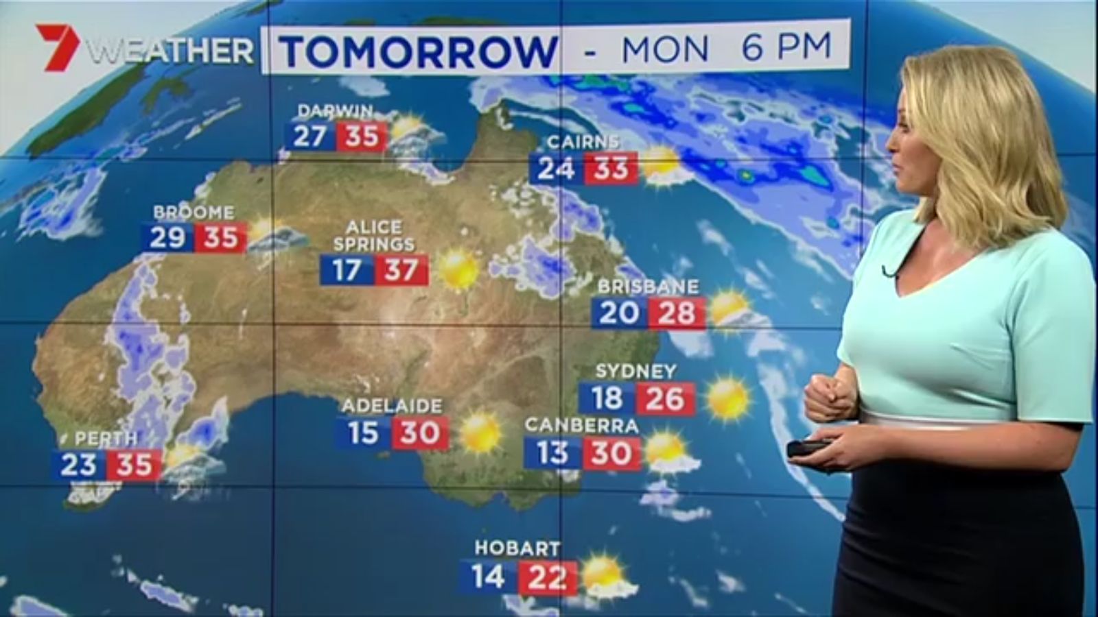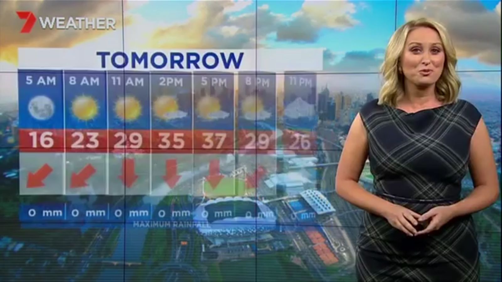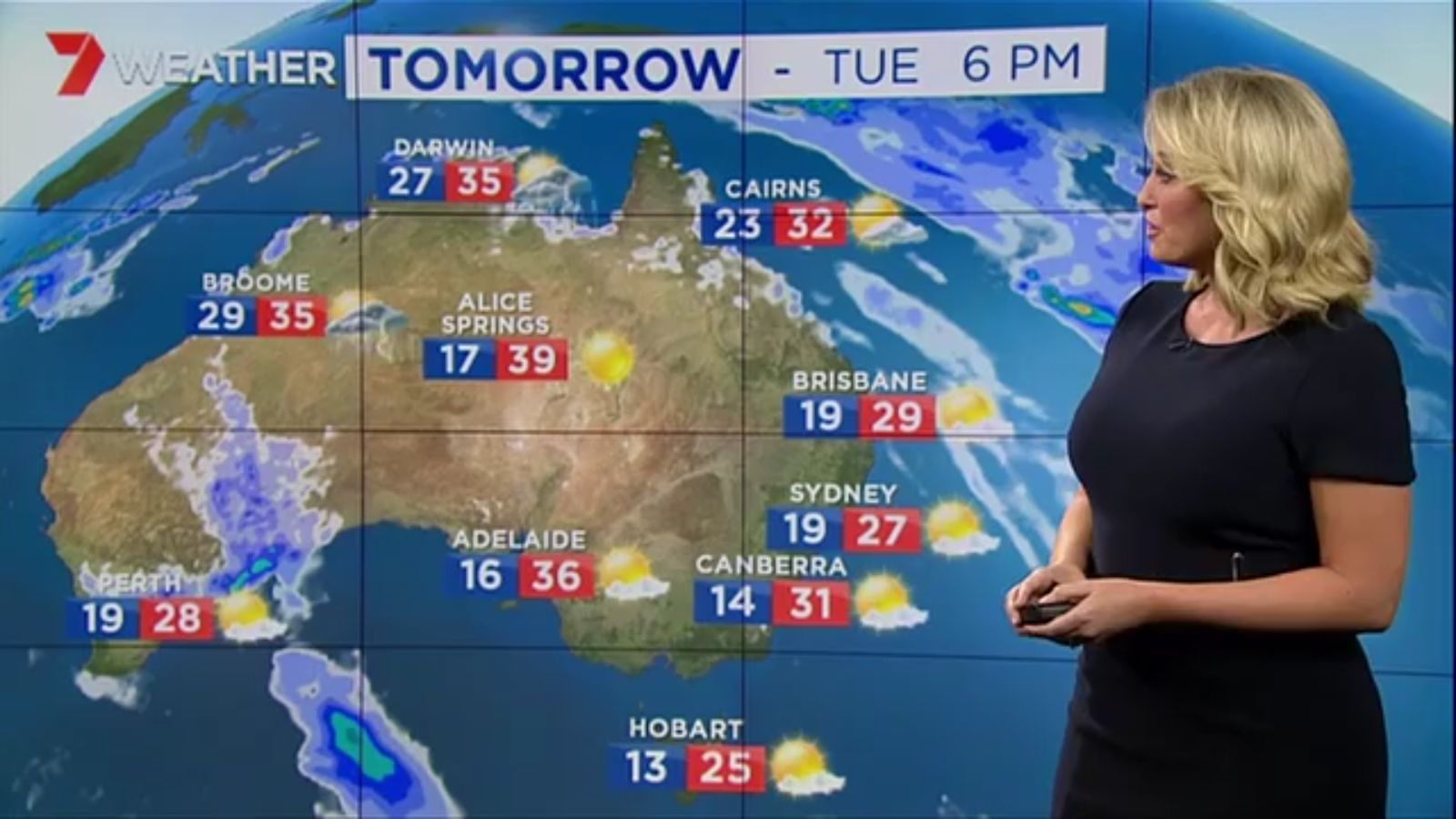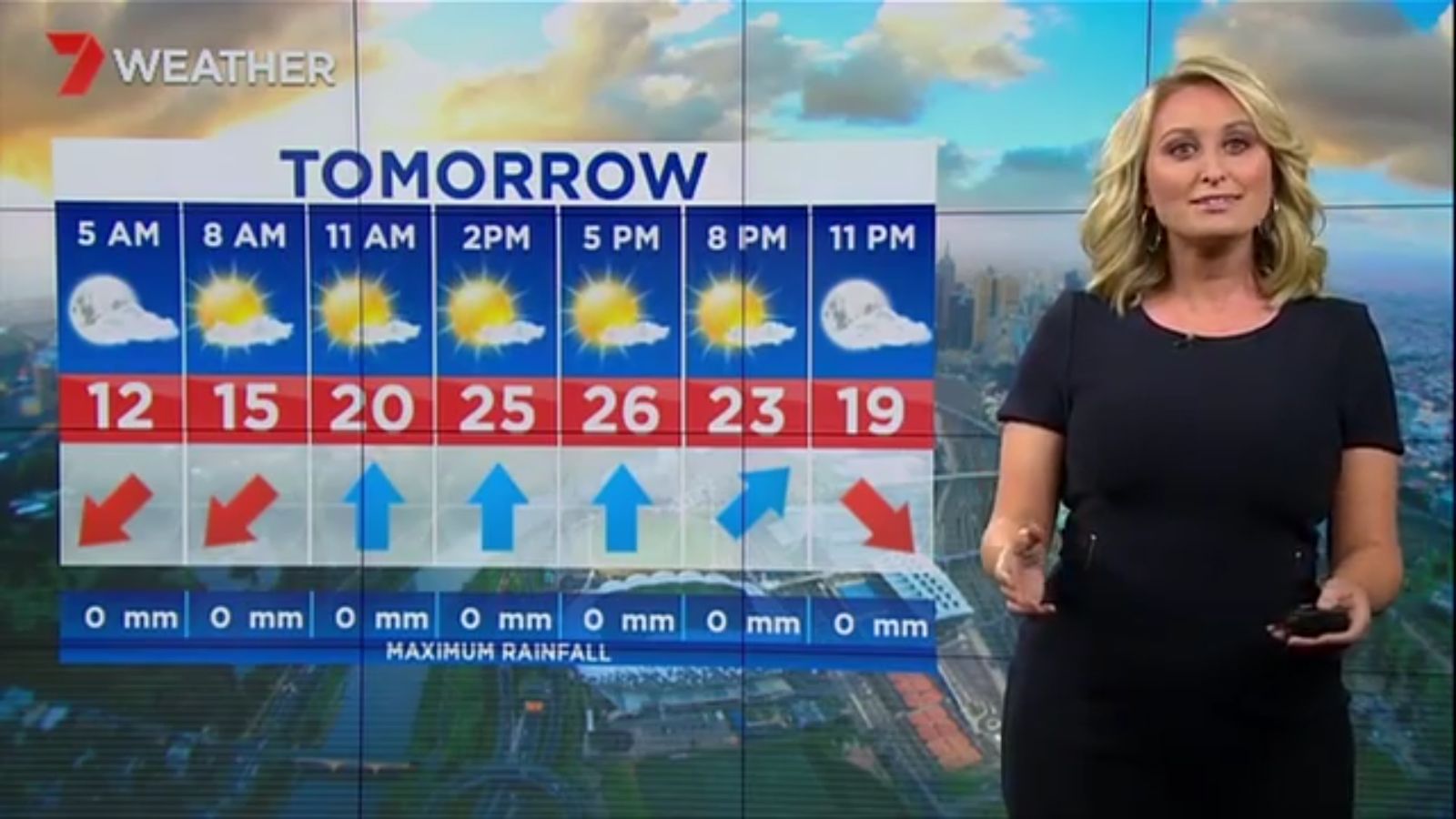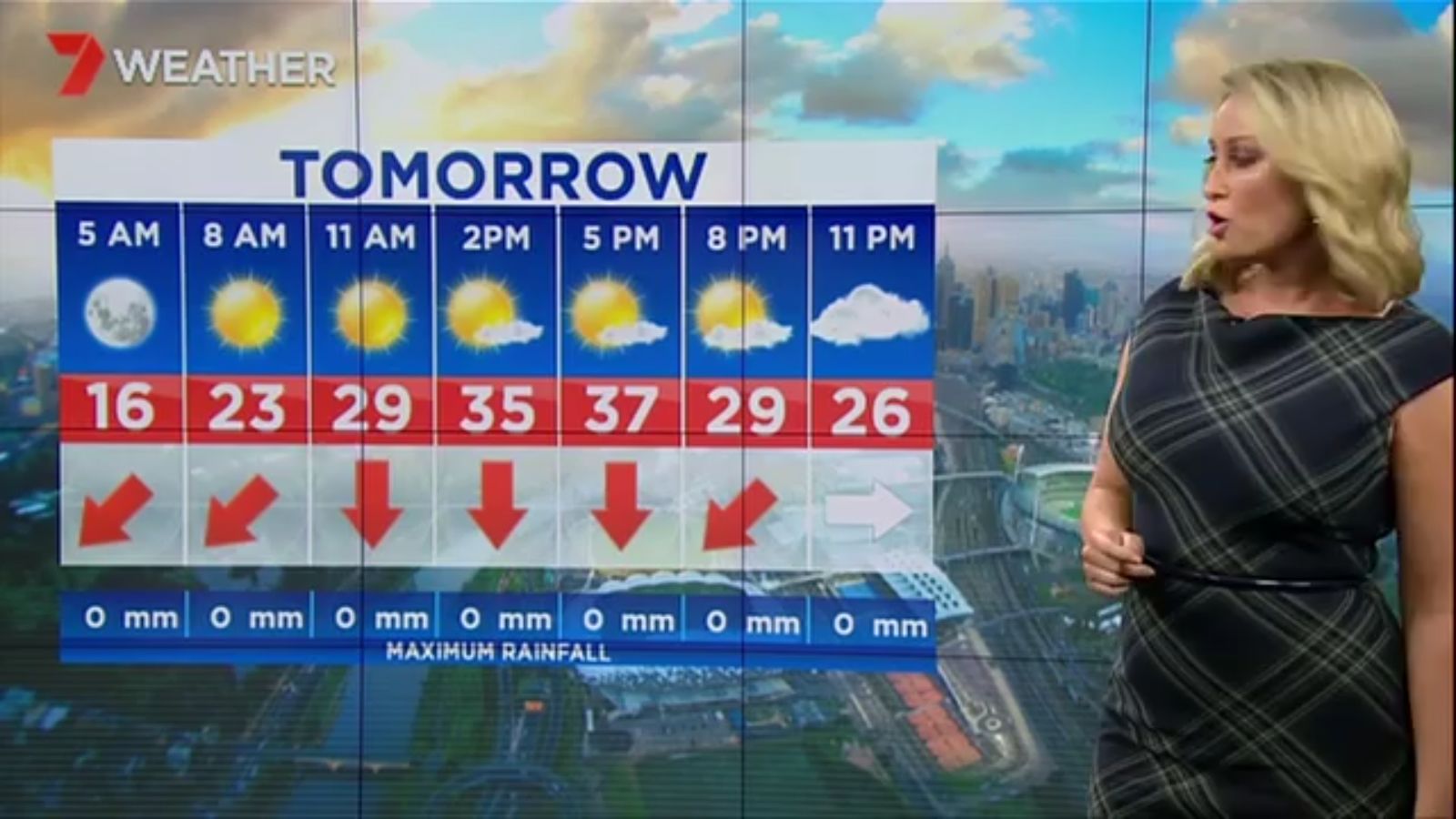 Jane has an interestingly unorthodox presentation style, always saying "we'll be warmer" "we'll be colder" and then she says, "there will be rainfall in this part of the state (points at Gippsland). If I didn't know any better I would assume she thinks the audience are a bunch of low life morons who just stare at her tits and hip wiggles. Keep up the great work boys