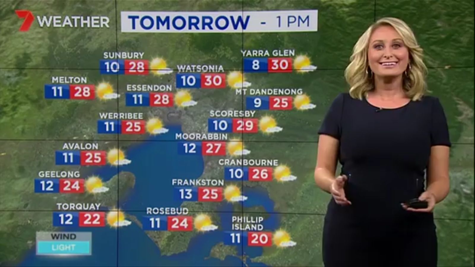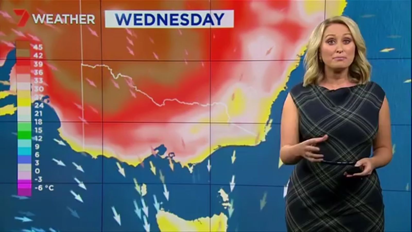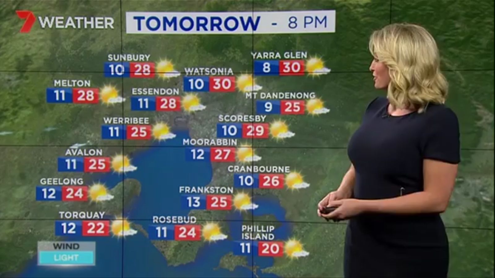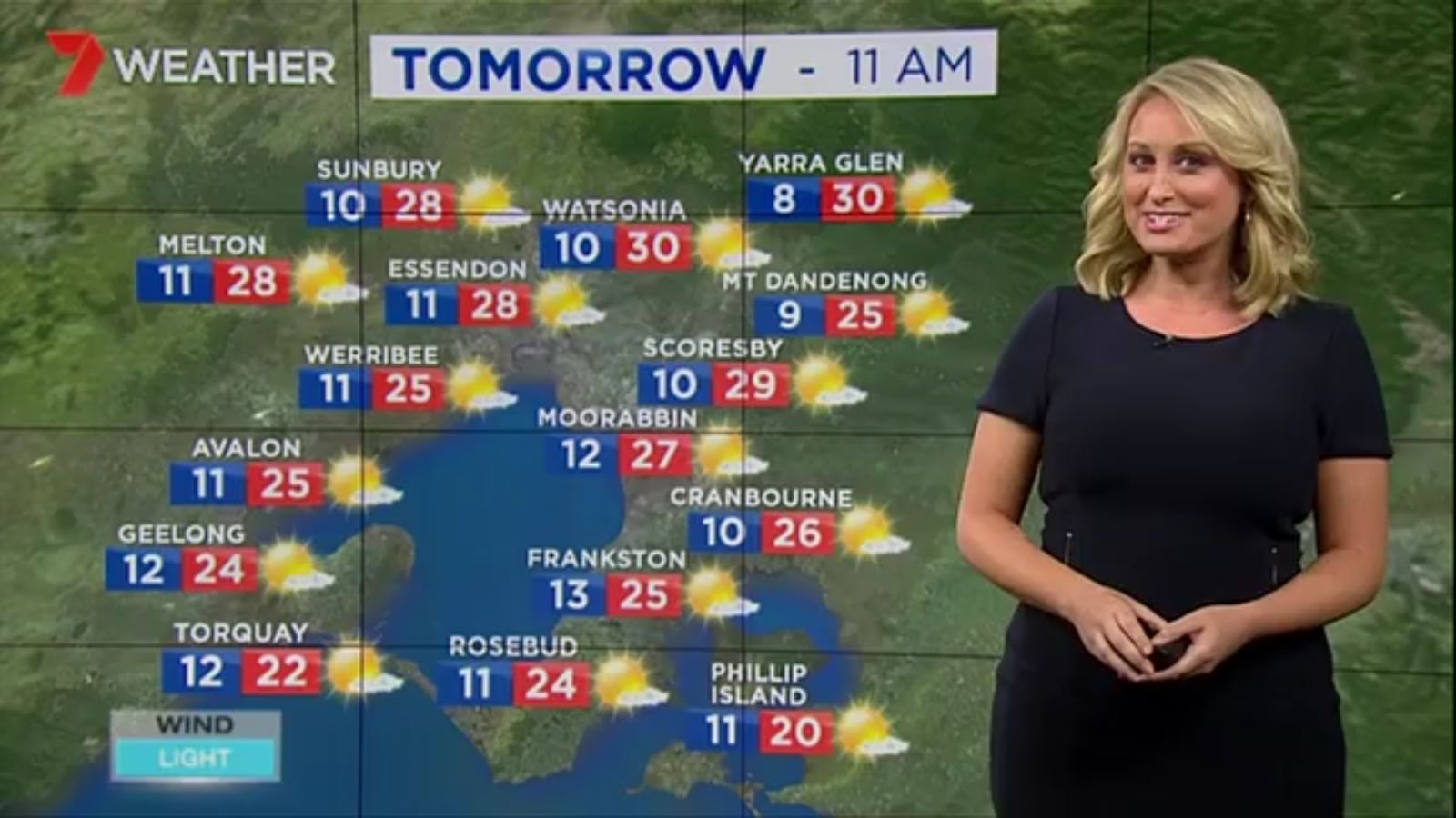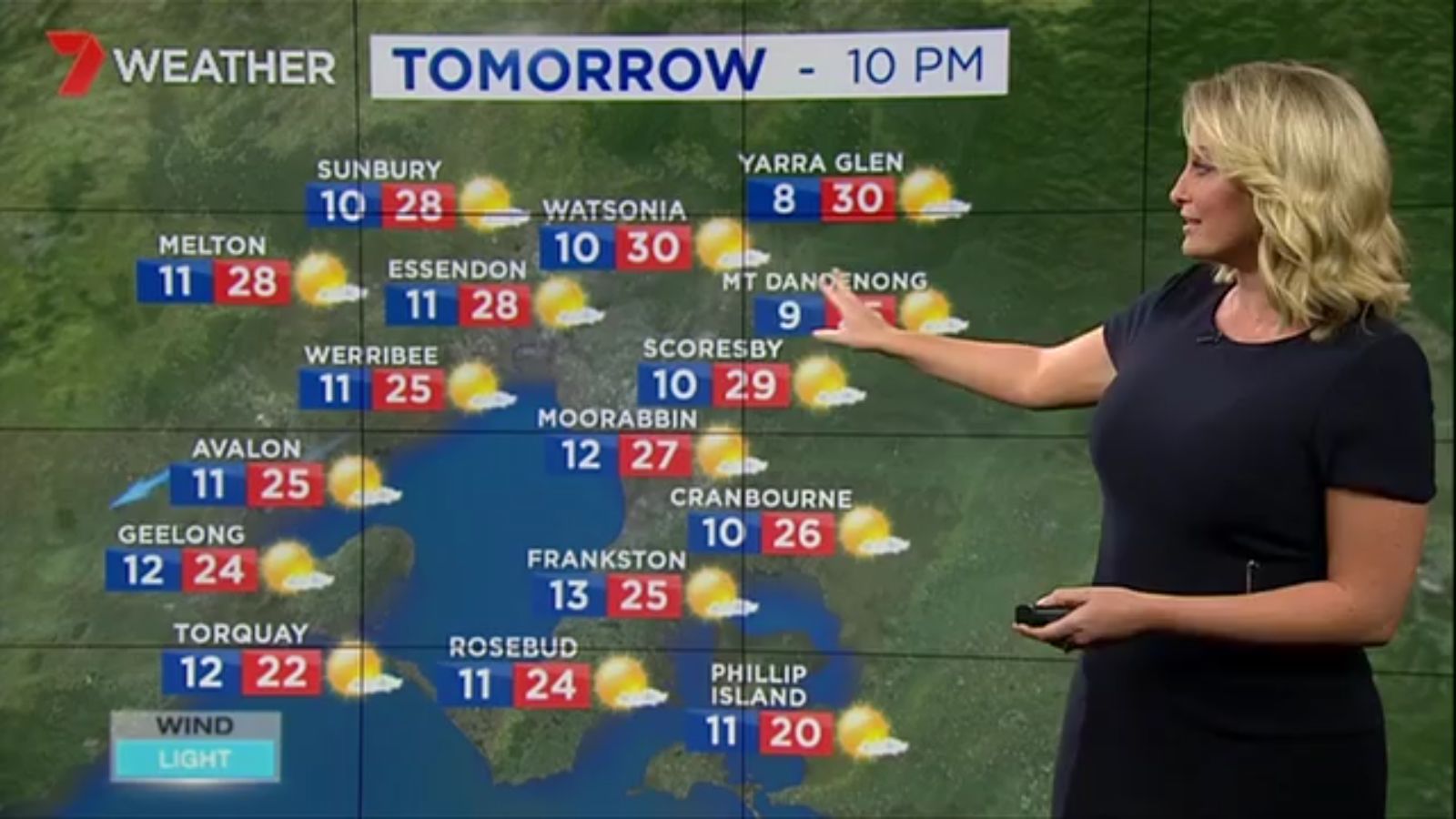 Jane has an interestingly unorthodox presentation style, always saying "we'll be warmer" "we'll be colder" and then she says, "there will be rainfall in this part of the state (points at Gippsland). If I didn't know any better I would assume she thinks the audience are a bunch of low life morons who just stare at her tits and hip wiggles. Keep up the great work boys