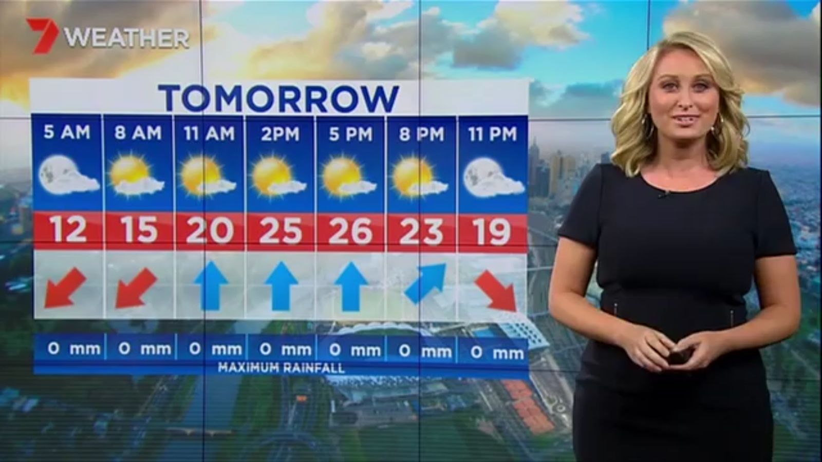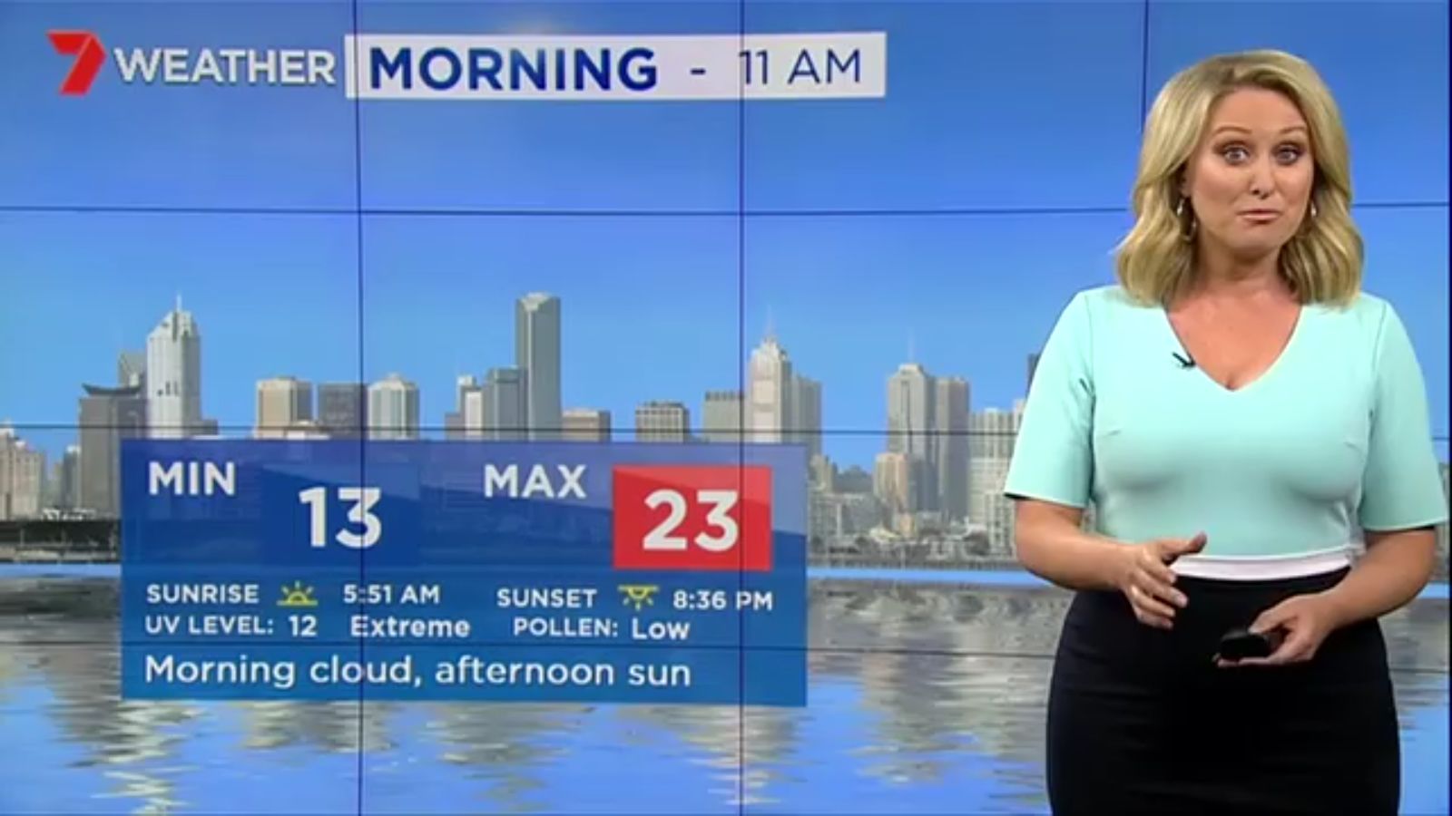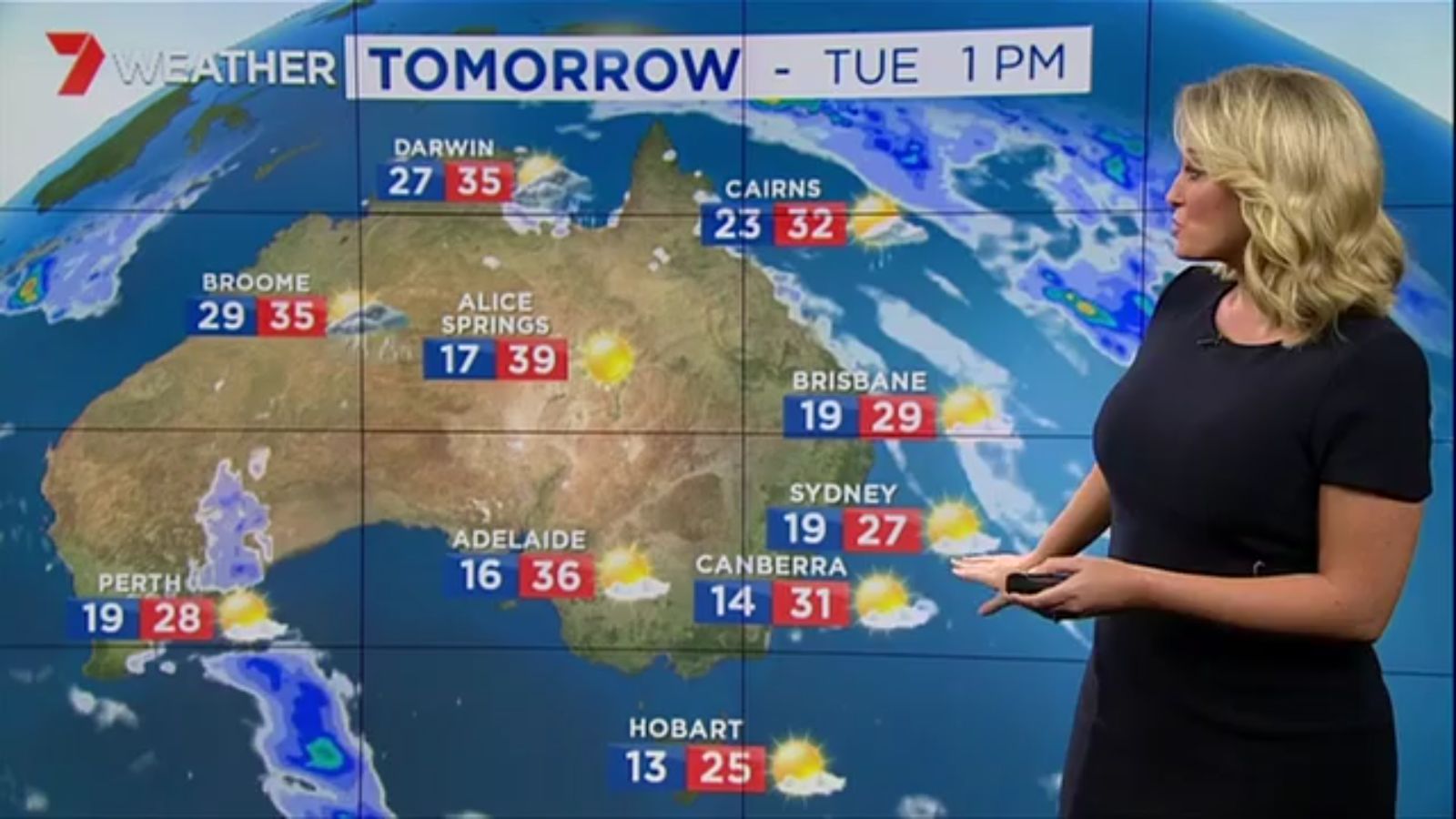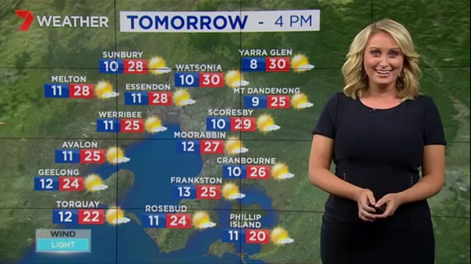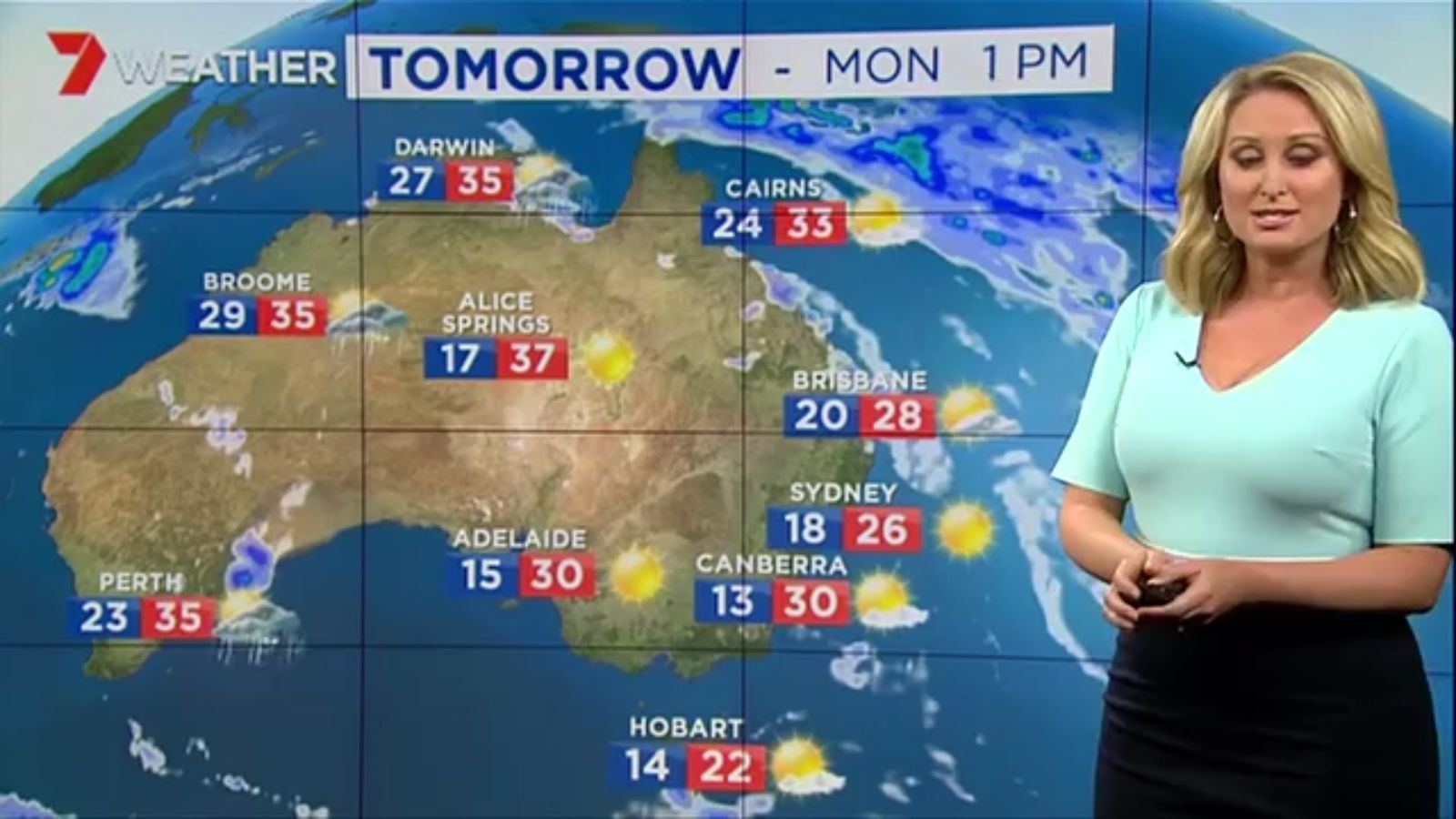 Jane has an interestingly unorthodox presentation style, always saying "we'll be warmer" "we'll be colder" and then she says, "there will be rainfall in this part of the state (points at Gippsland). If I didn't know any better I would assume she thinks the audience are a bunch of low life morons who just stare at her tits and hip wiggles. Keep up the great work boys