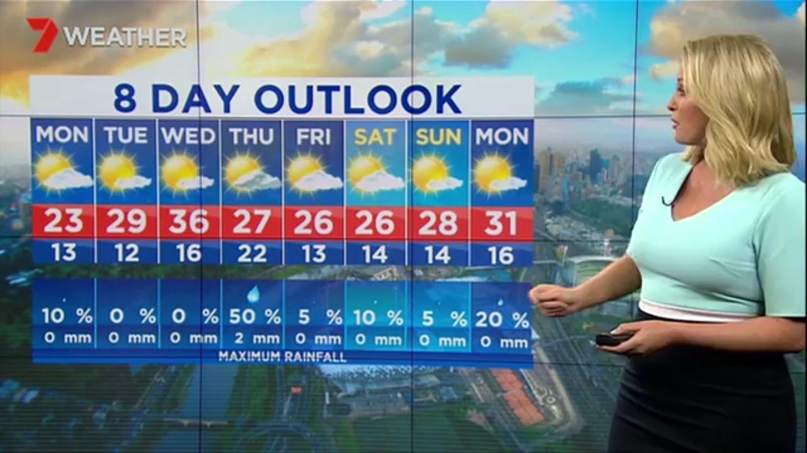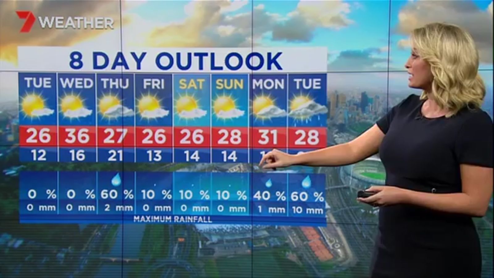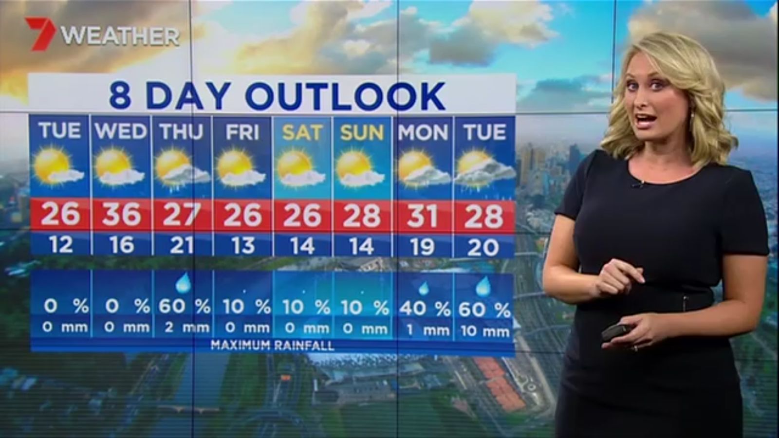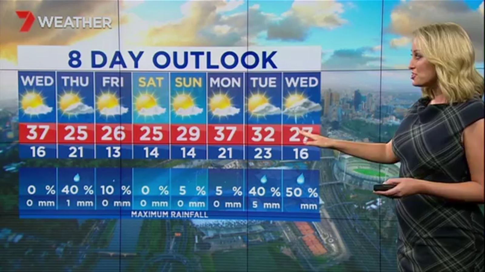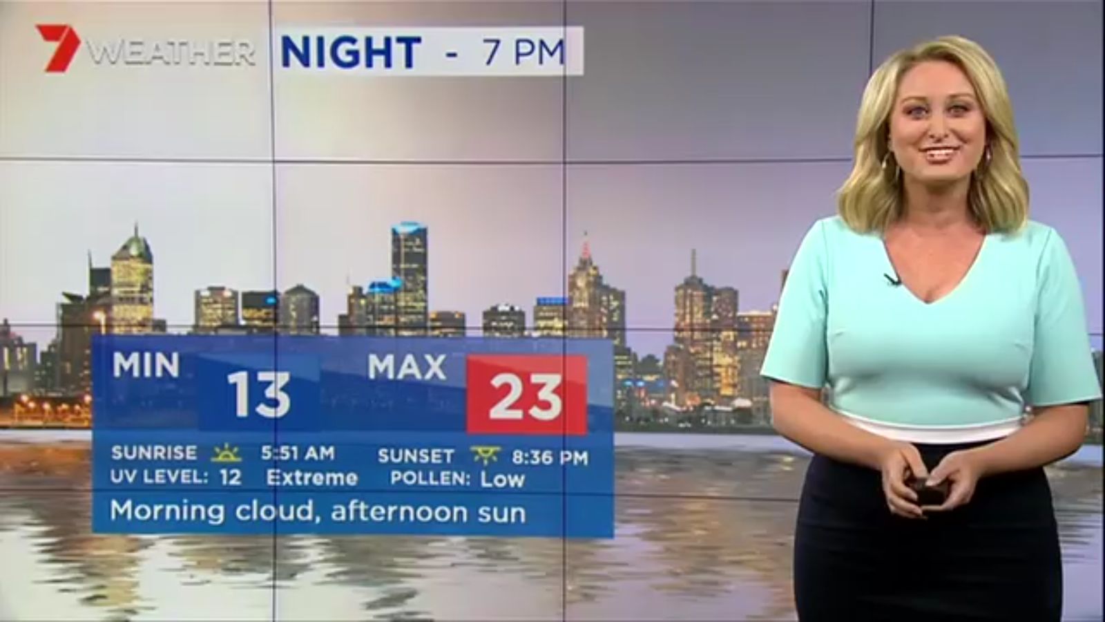 Jane has an interestingly unorthodox presentation style, always saying "we'll be warmer" "we'll be colder" and then she says, "there will be rainfall in this part of the state (points at Gippsland). If I didn't know any better I would assume she thinks the audience are a bunch of low life morons who just stare at her tits and hip wiggles. Keep up the great work boys
