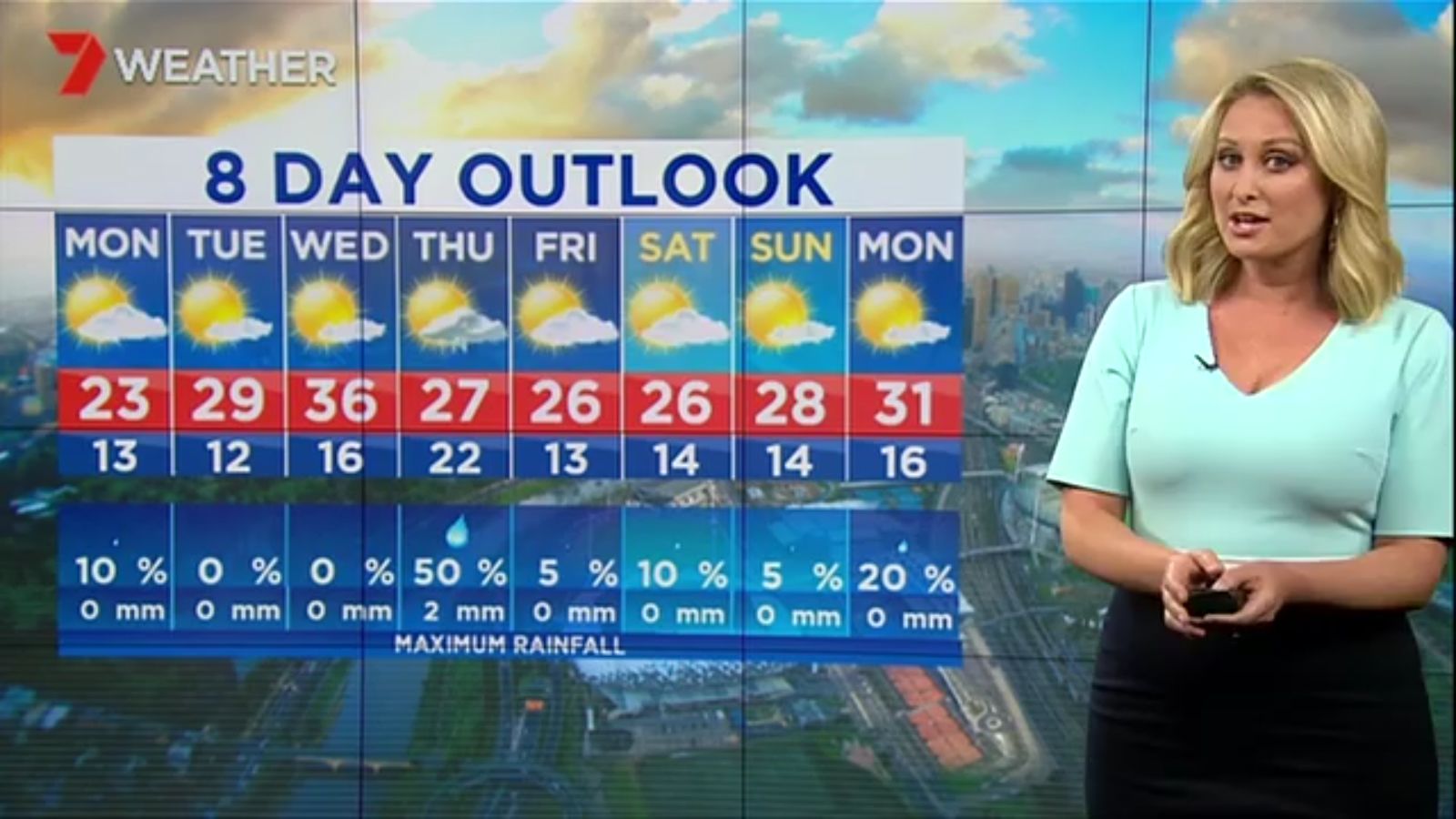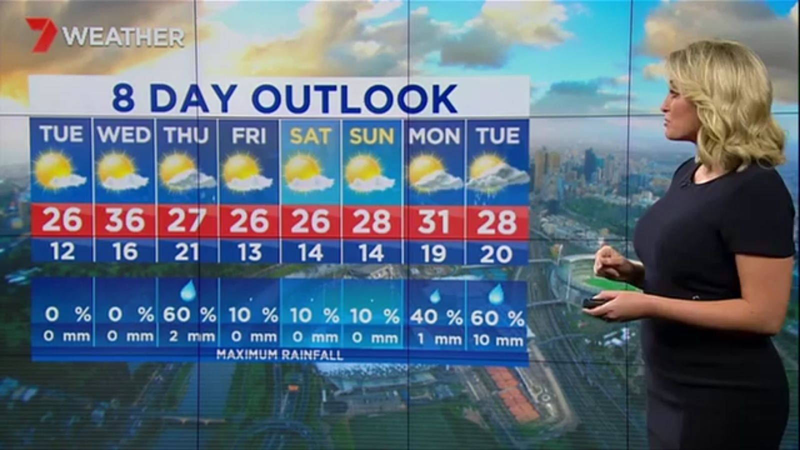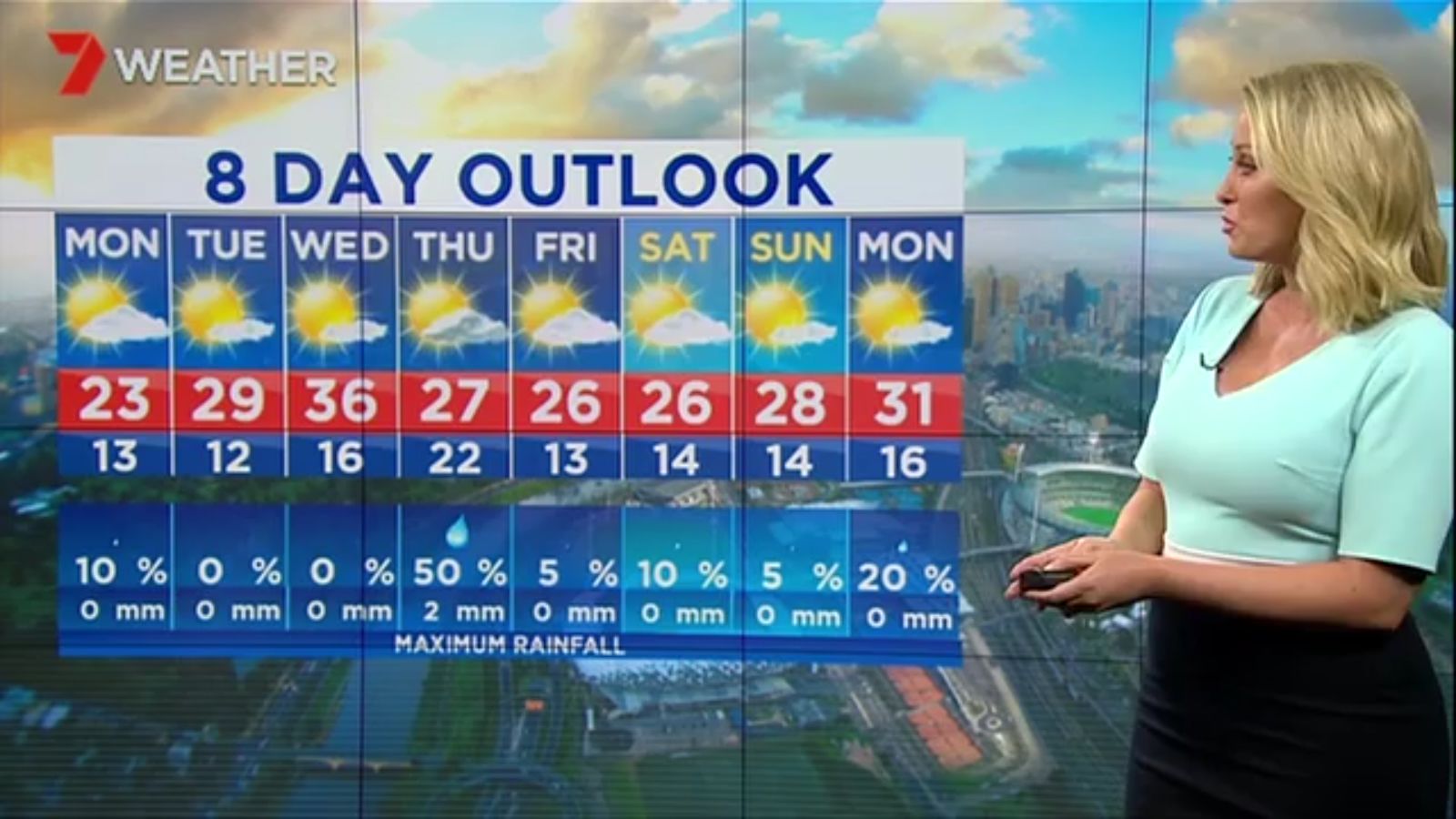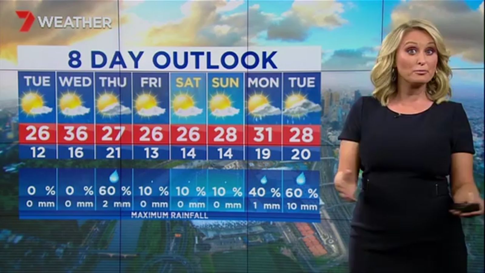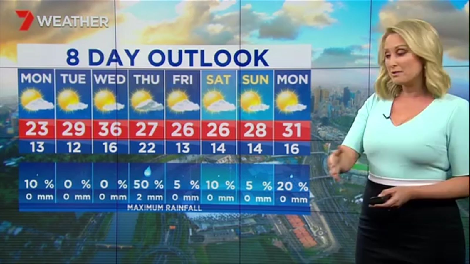 Jane has an interestingly unorthodox presentation style, always saying "we'll be warmer" "we'll be colder" and then she says, "there will be rainfall in this part of the state (points at Gippsland). If I didn't know any better I would assume she thinks the audience are a bunch of low life morons who just stare at her tits and hip wiggles. Keep up the great work boys